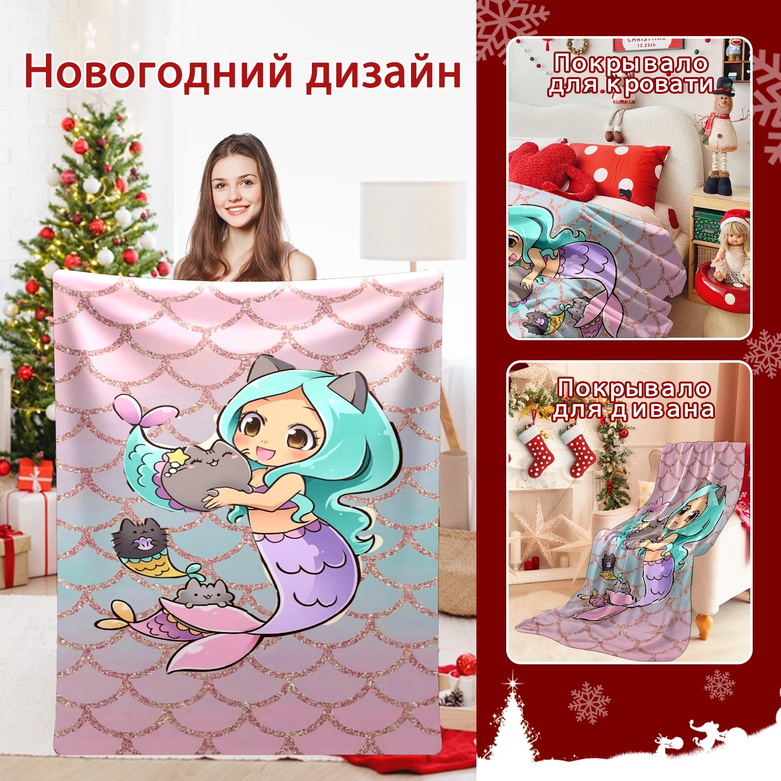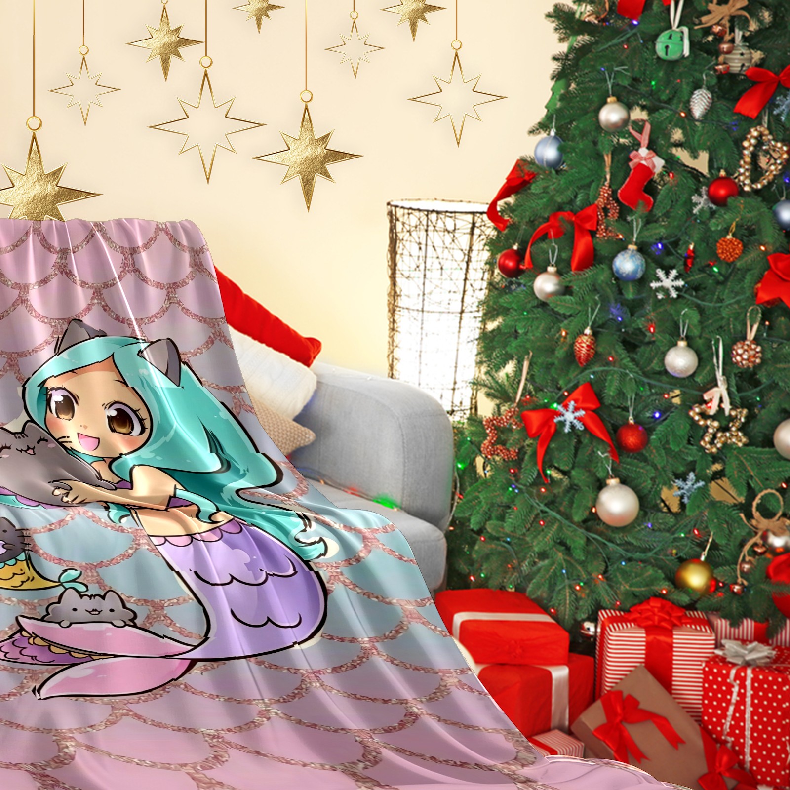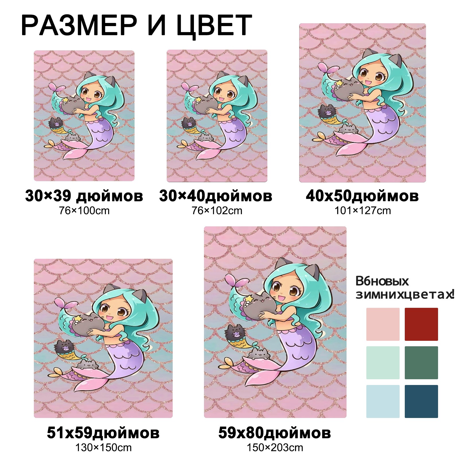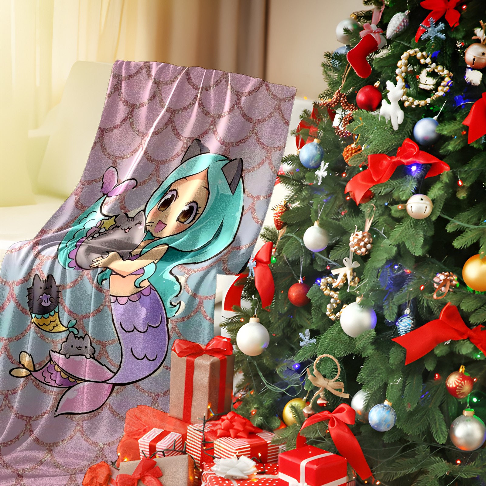 Flannel Blanket, Ultra-Soft Comfortable Home Decor Rug, The Perfect Comfort Gift for Both Men Women, Suitable for Beds, Sofas, Loungewear, and Travel 30x39in(Cute Mermaid)