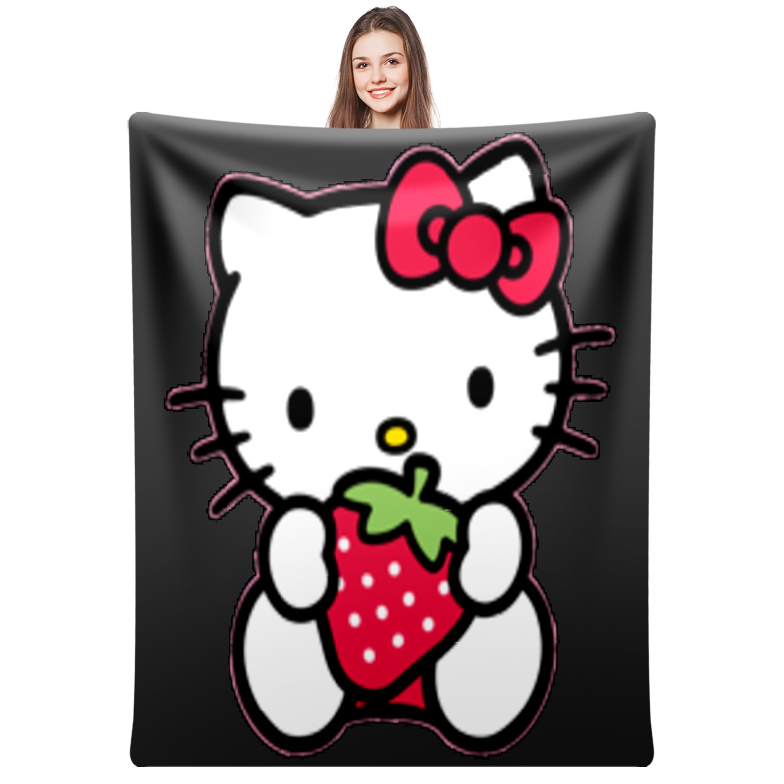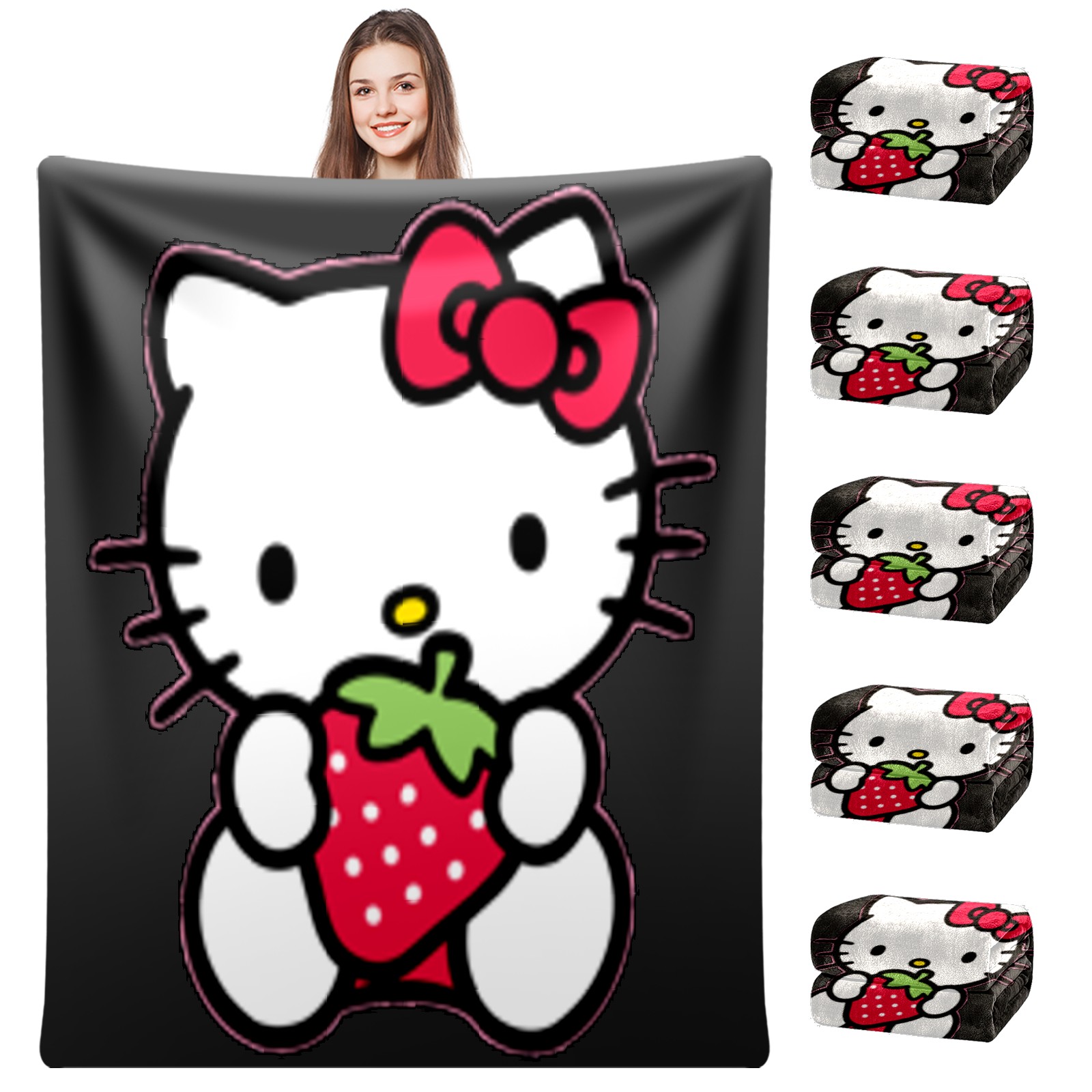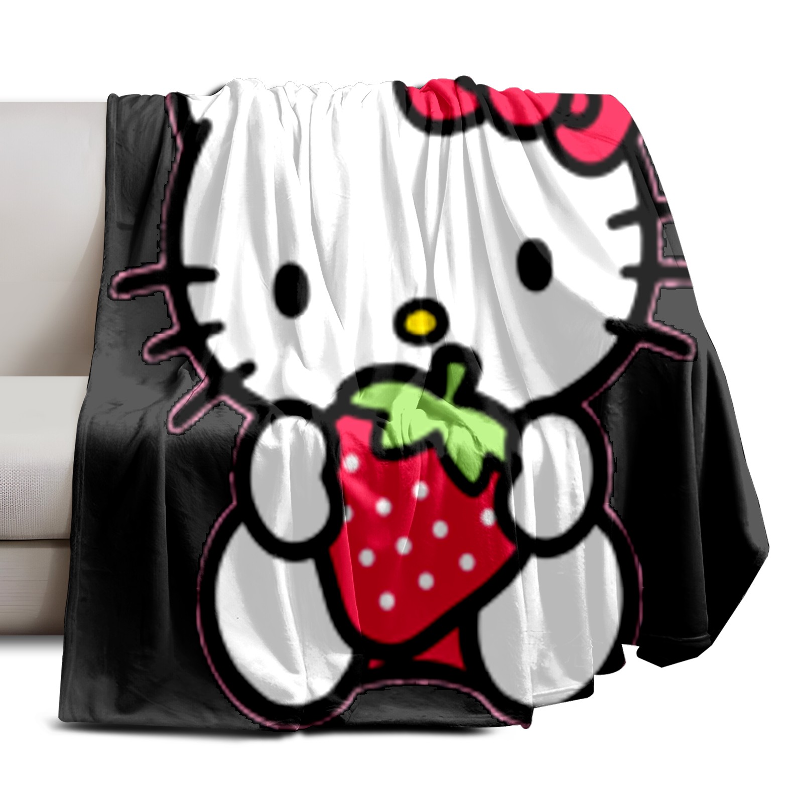 Flannel Blanket, Ultra-Soft Comfortable Home Decor Rug, The Perfect Comfort Gift for Both Men Women, Suitable for Beds, Sofas, Loungewear, and Travel 30x39in(Hello Kitty Strawberry Cat)