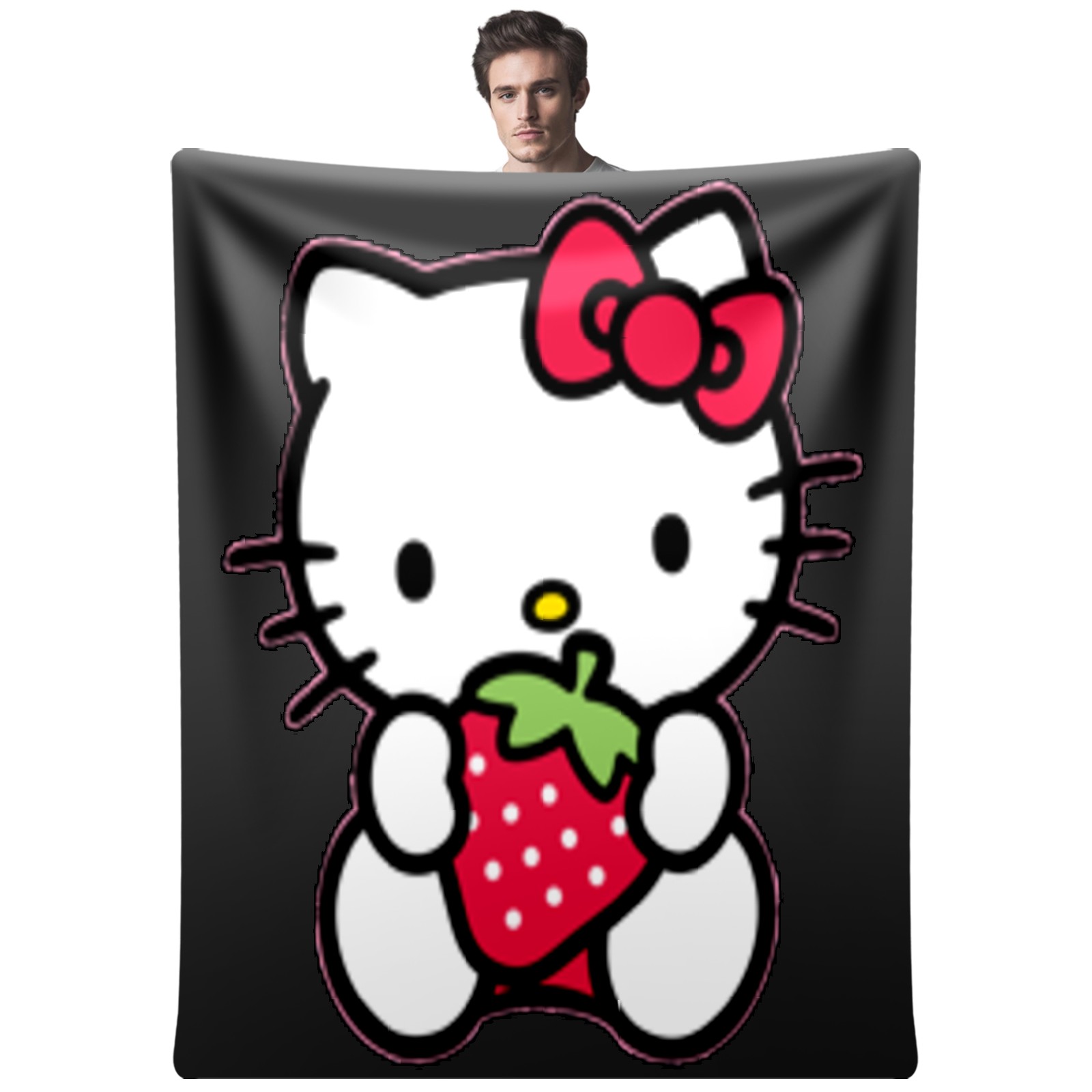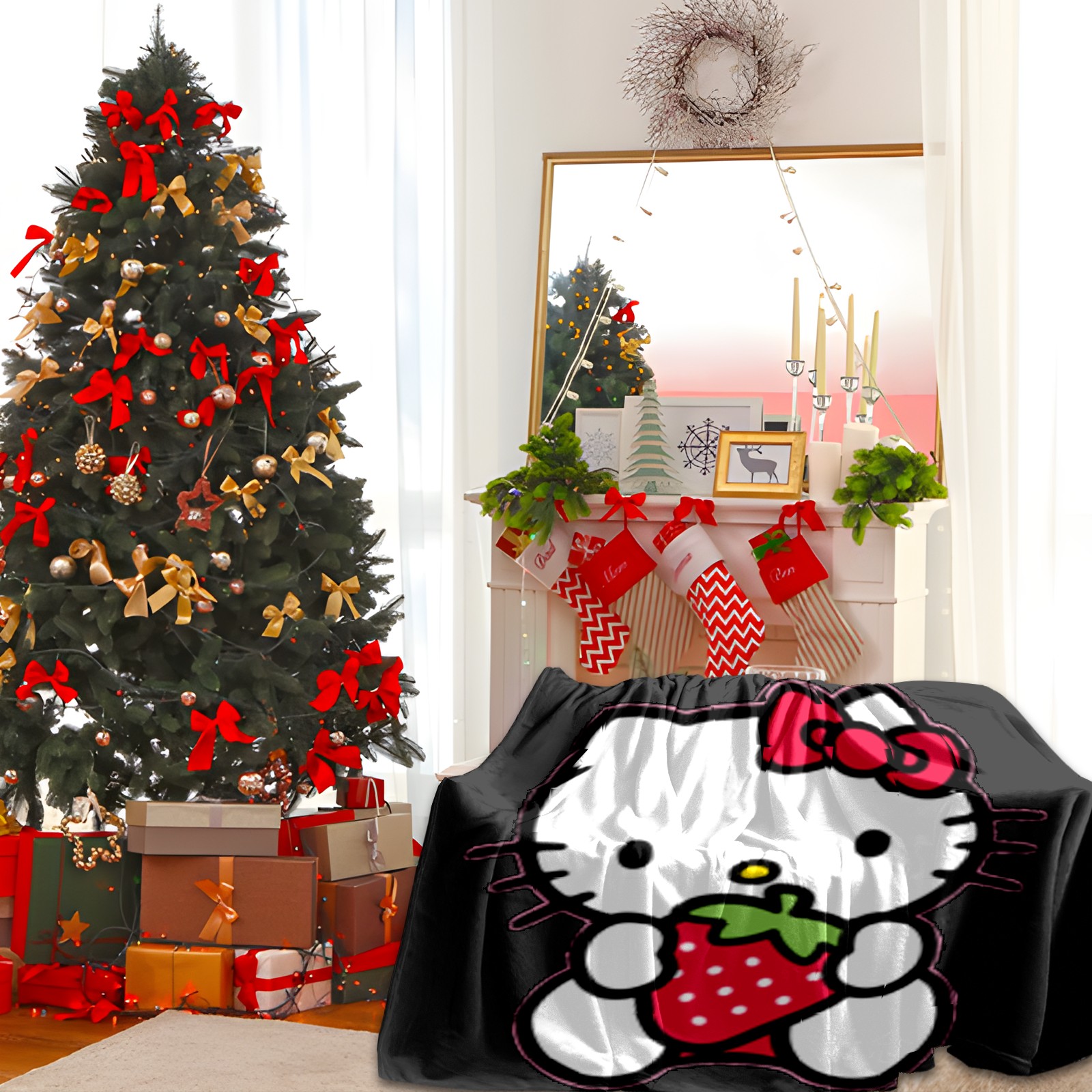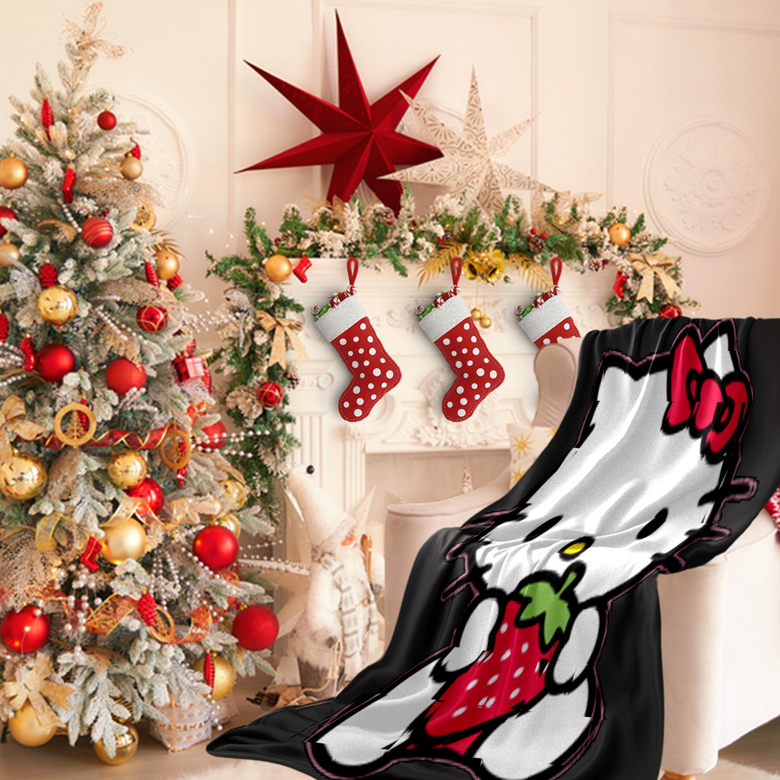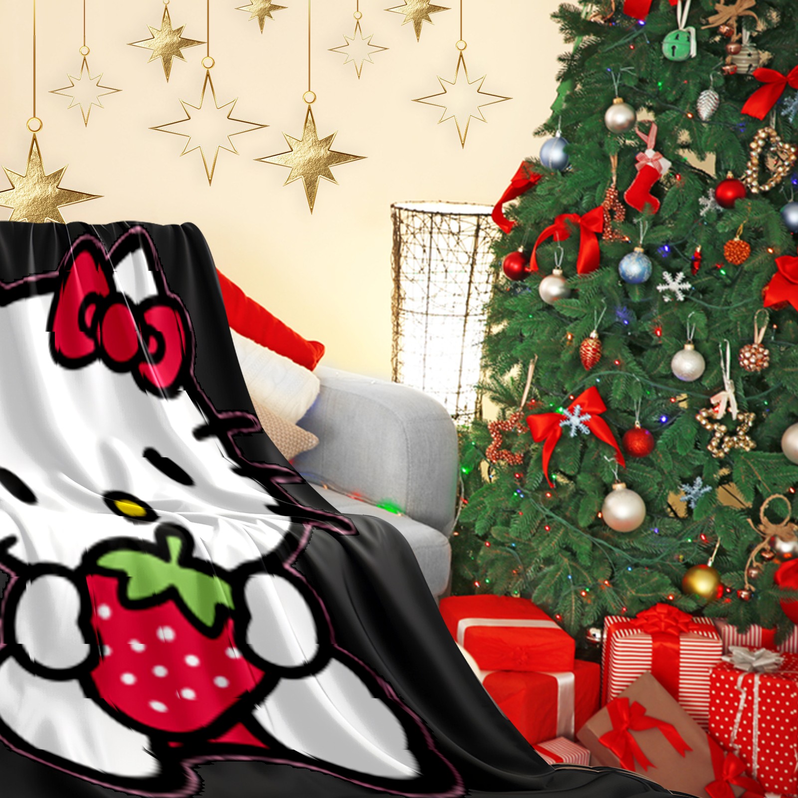 Flannel Blanket, Ultra-Soft Comfortable Home Decor Rug, The Perfect Comfort Gift for Both Men Women, Suitable for Beds, Sofas, Loungewear, and Travel 30x39in(Hello Kitty Strawberry Cat)