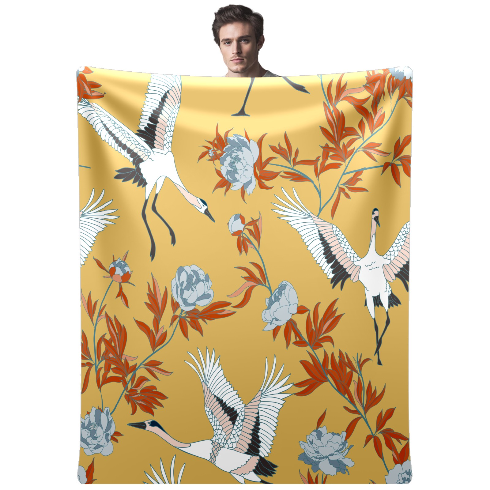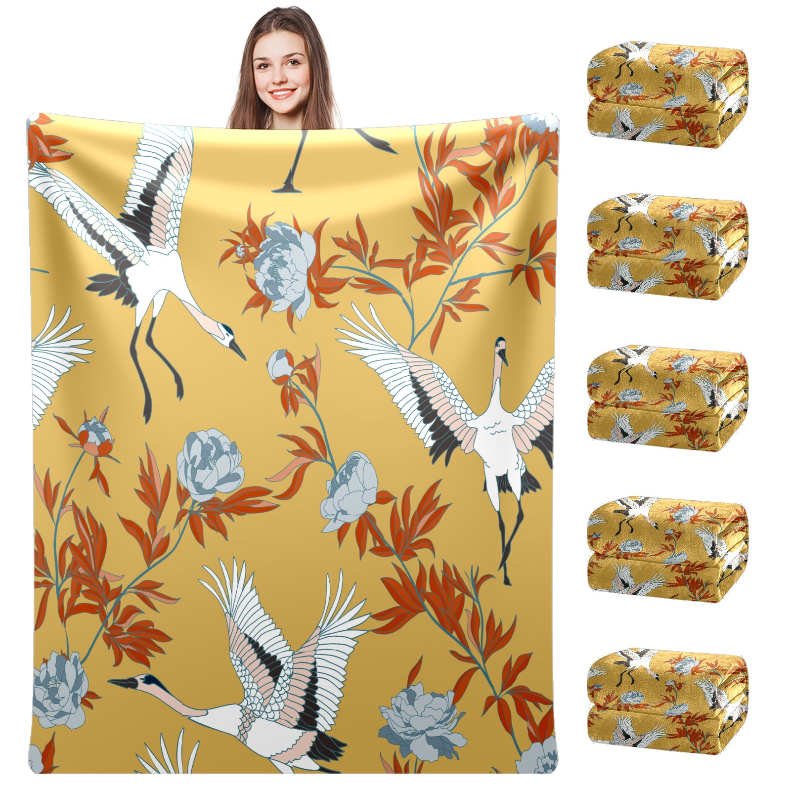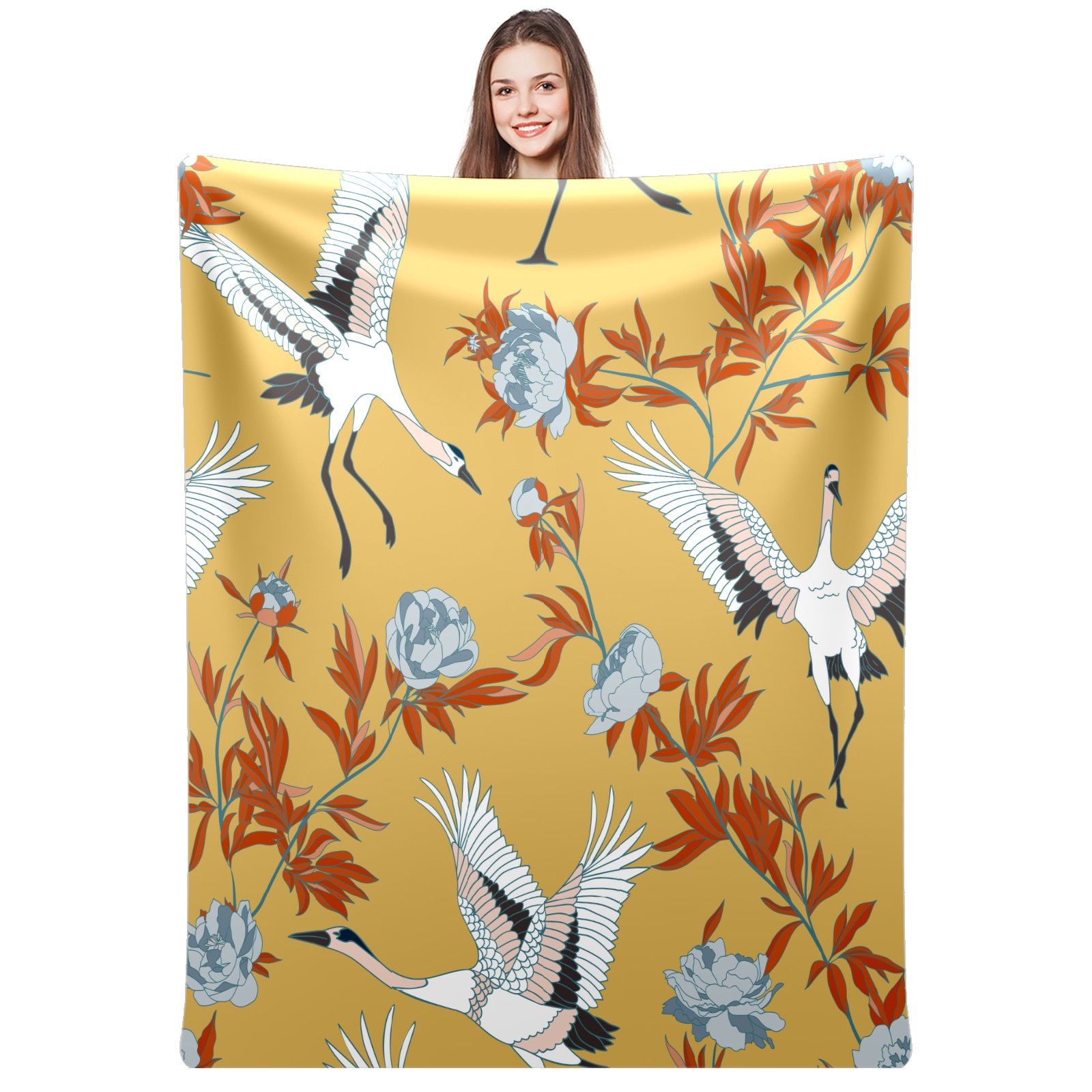 Flannel Blanket, Ultra-Soft Comfortable Home Decor Rug, The Perfect Comfort Gift for Both Men Women, Suitable for Beds, Sofas, Loungewear, and Travel 30x39in(White Crane)