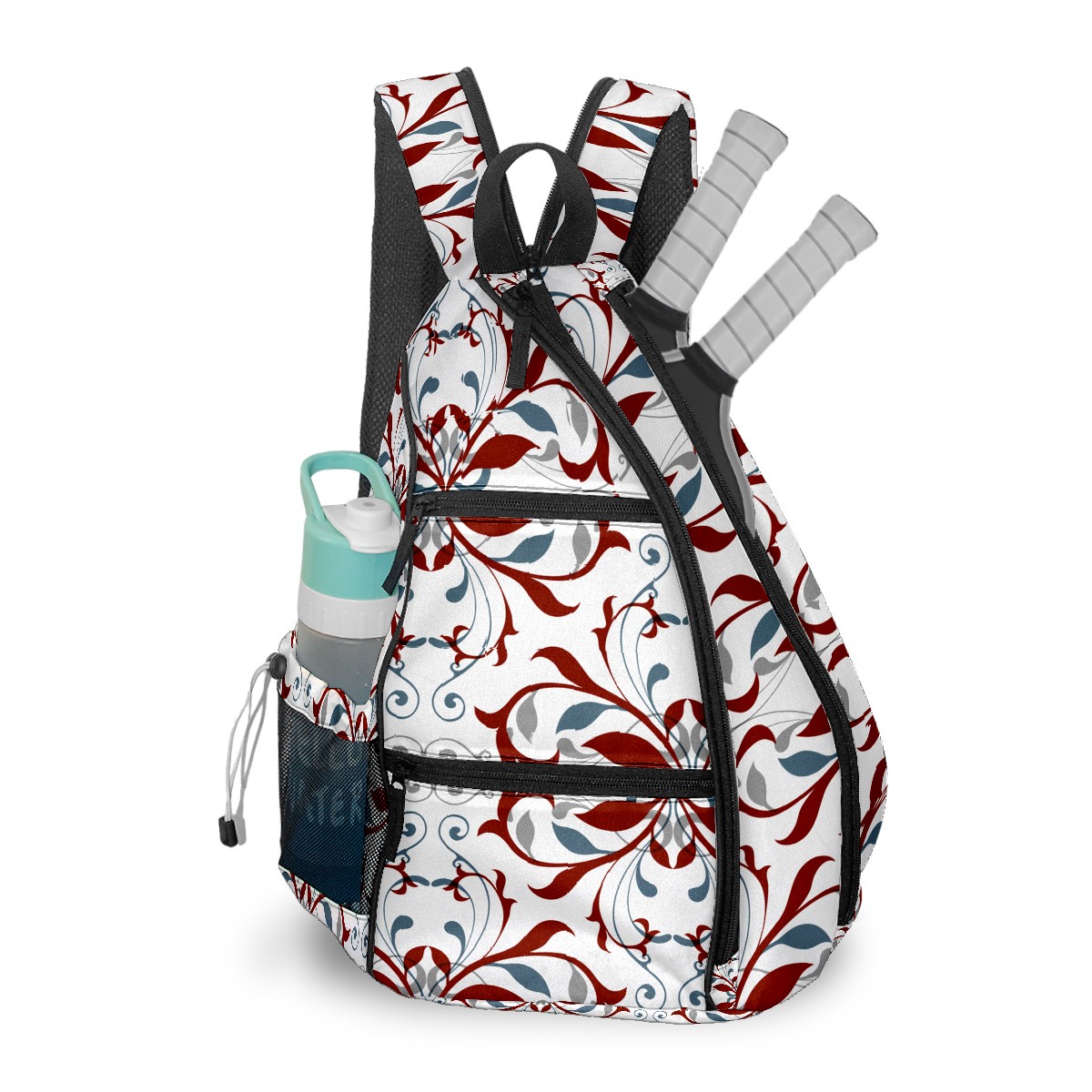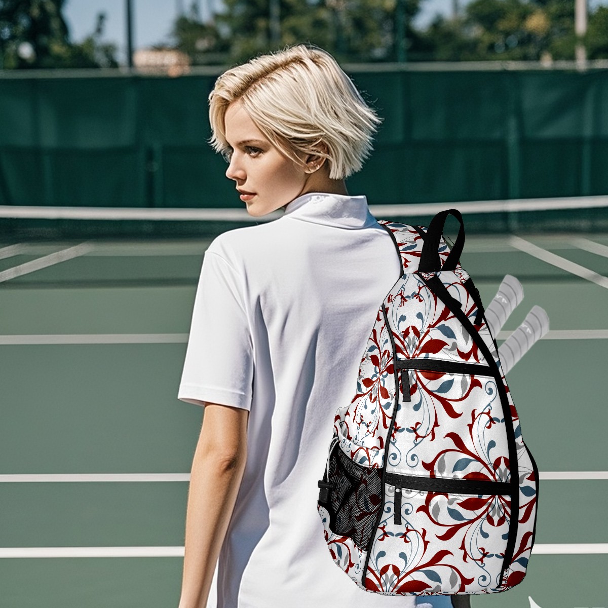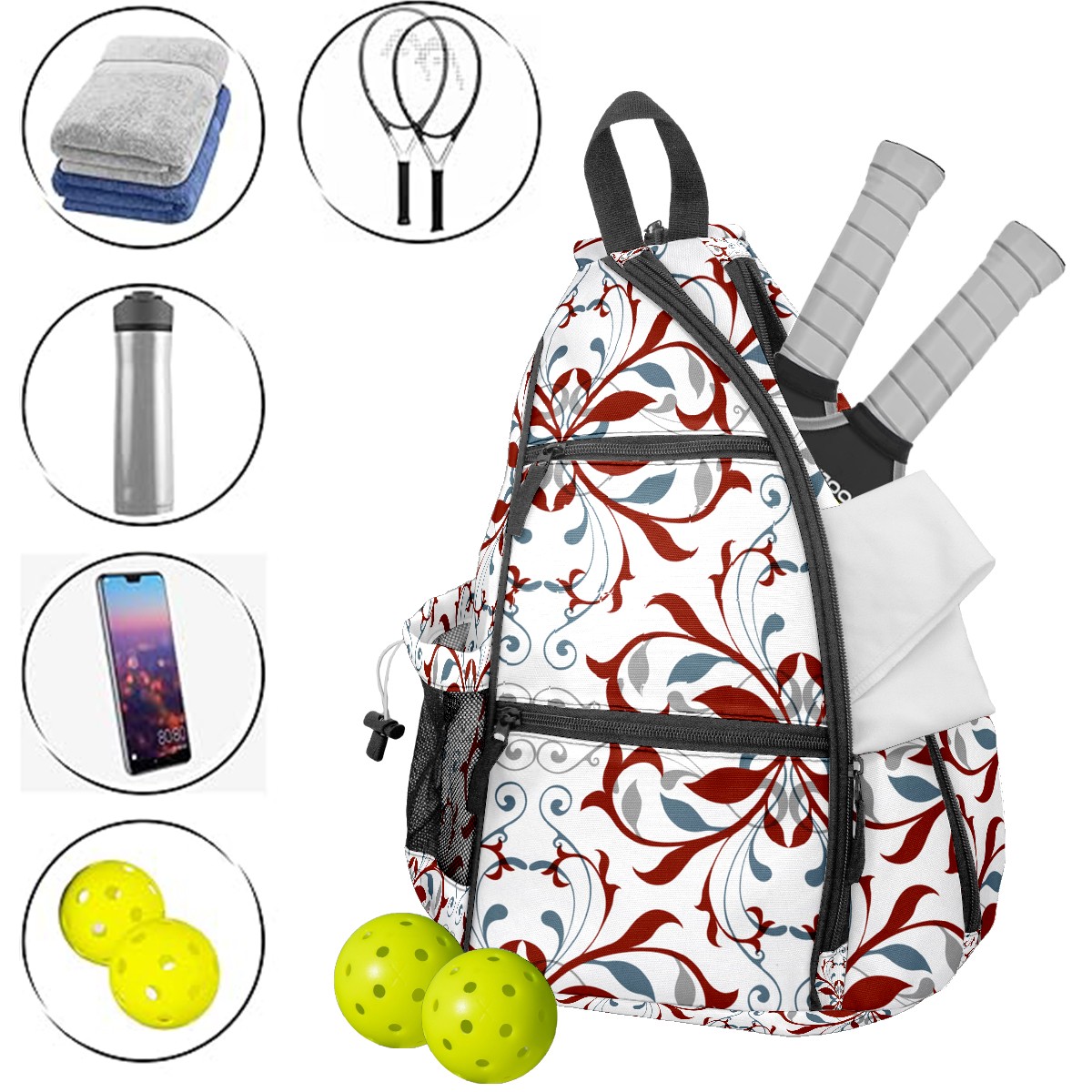 Multifunctional Pickleball Bag,Large Capacity Sports Pickleball Racket Bag, Water Bottle Holder and Fence Hook,Suitable for Both Men Women -Abstract Floral Background