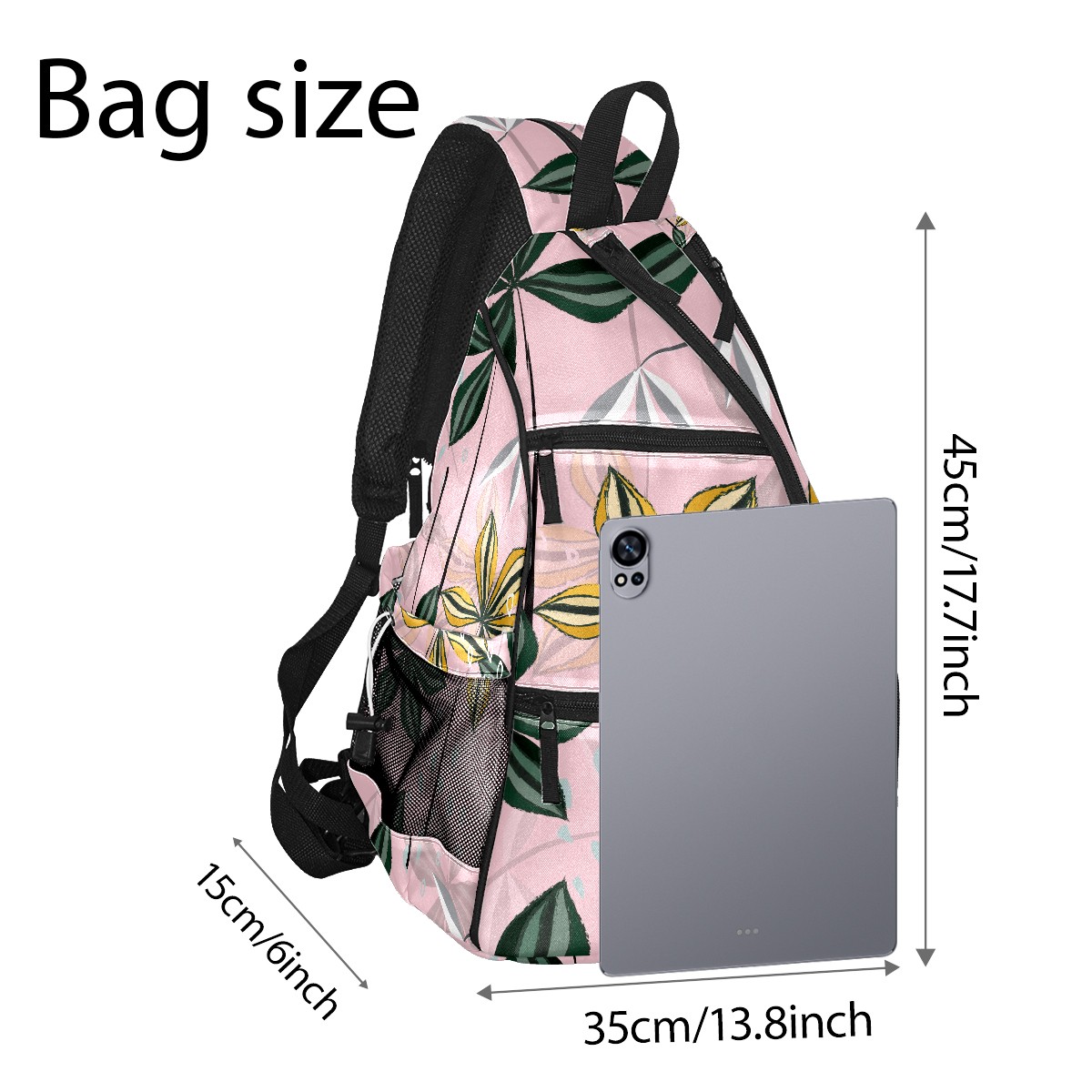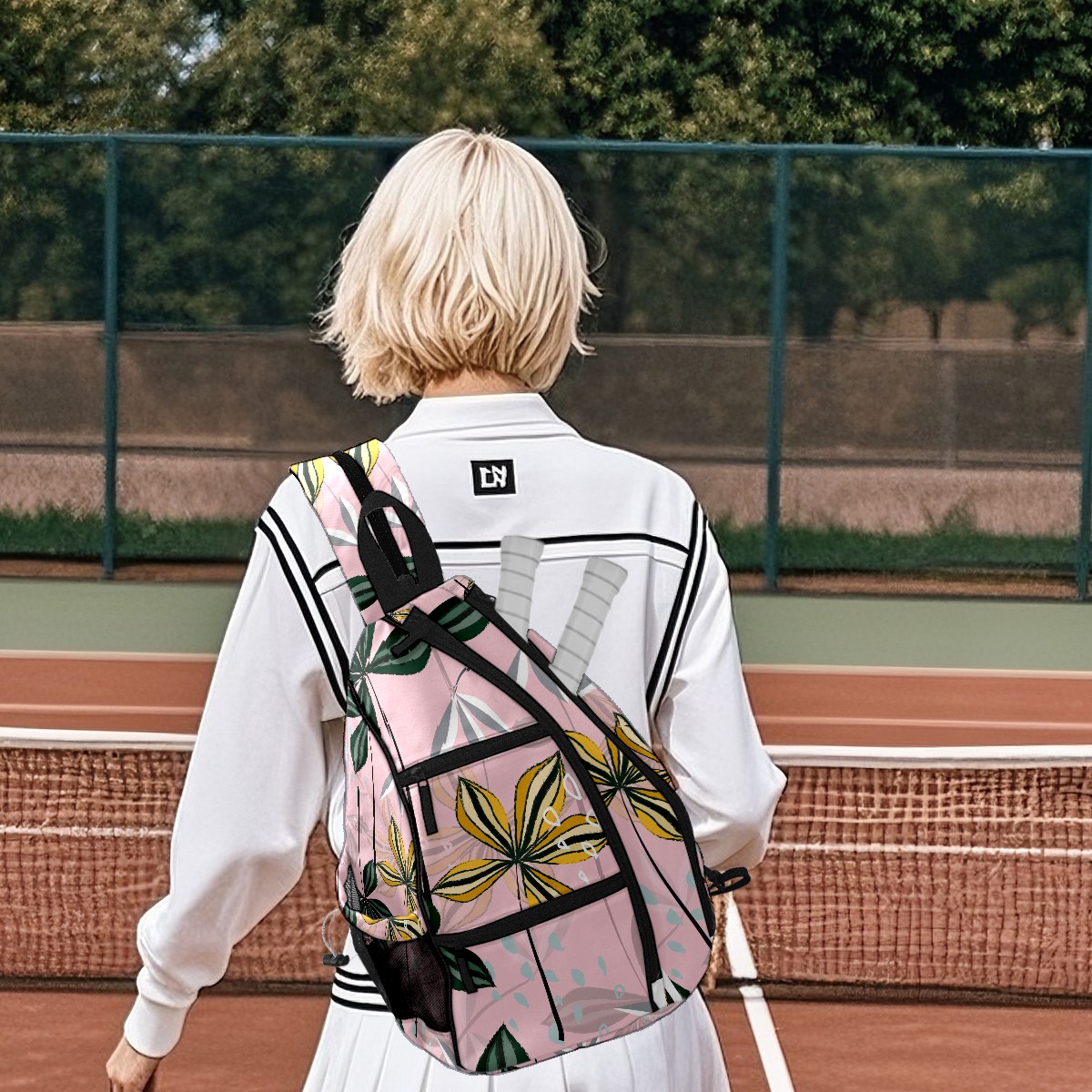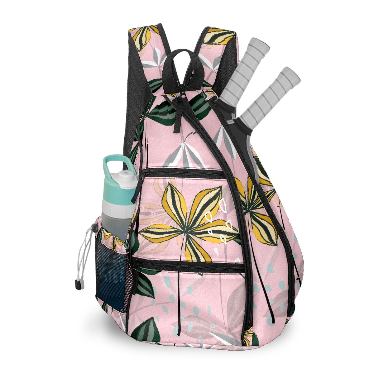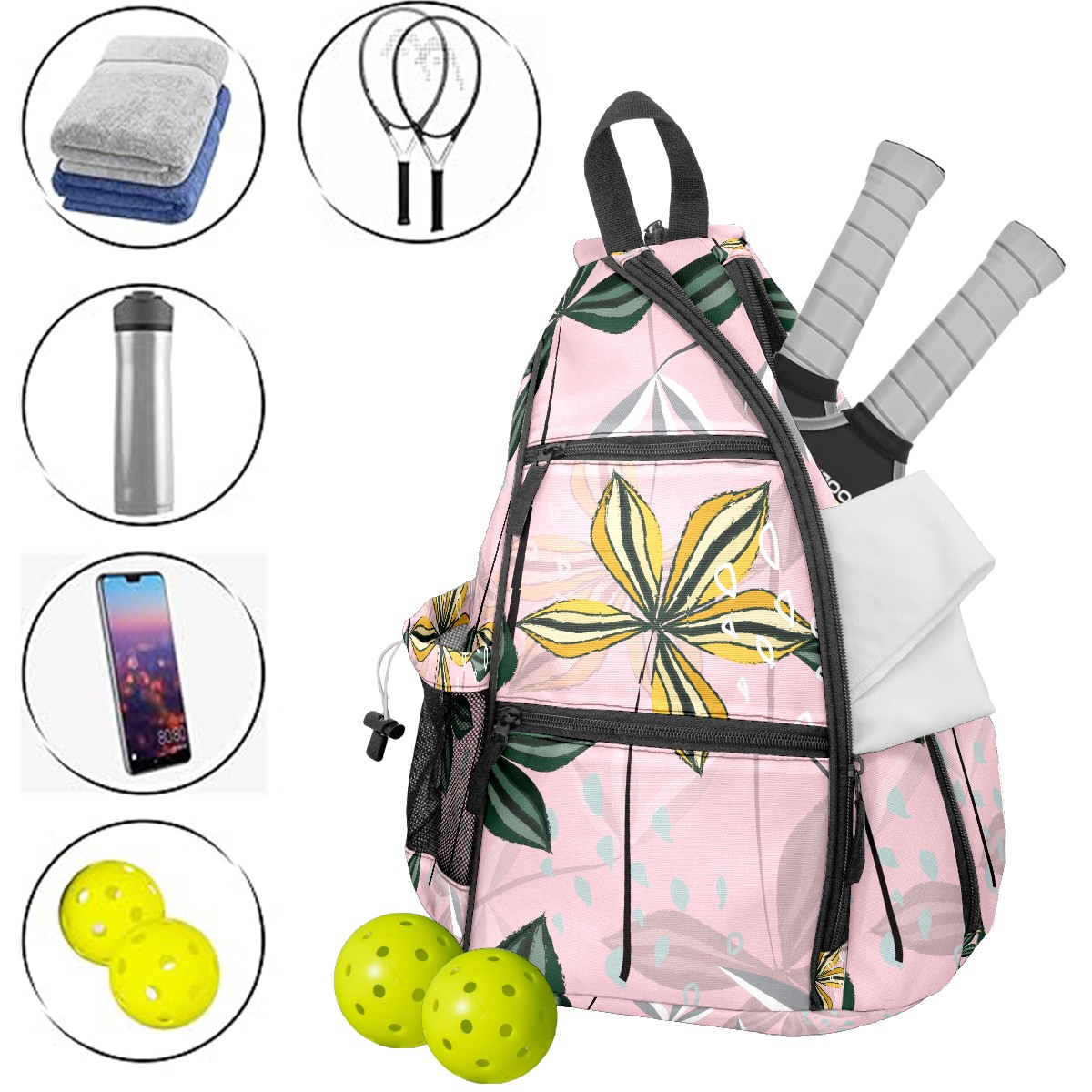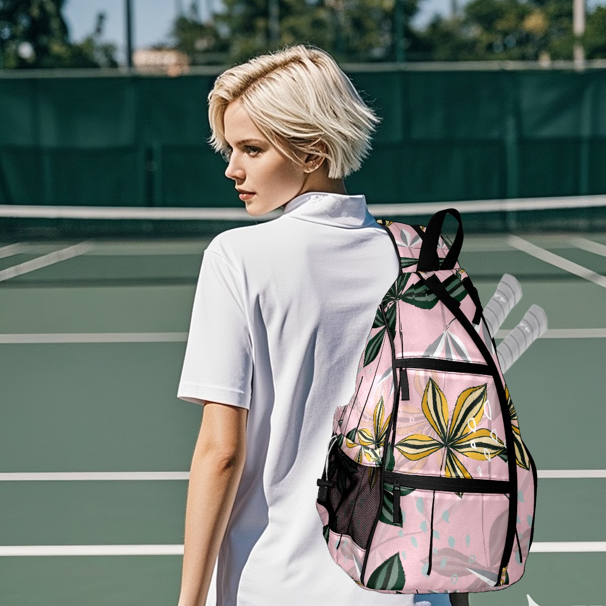 Multifunctional Pickleball Bag,Large Capacity Sports Pickleball Racket Bag, Water Bottle Holder and Fence Hook,Suitable for Both Men Women -Abstract Floral Pattern On Pink