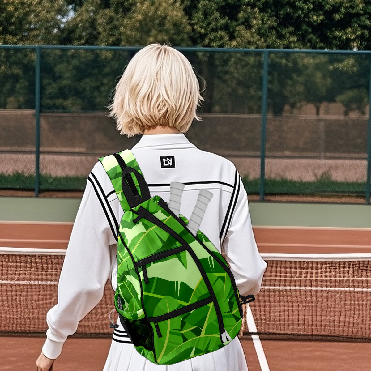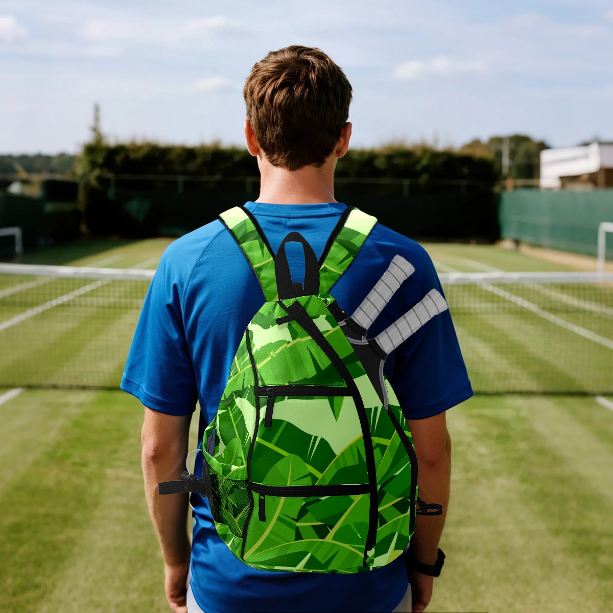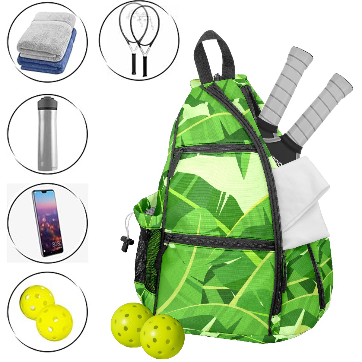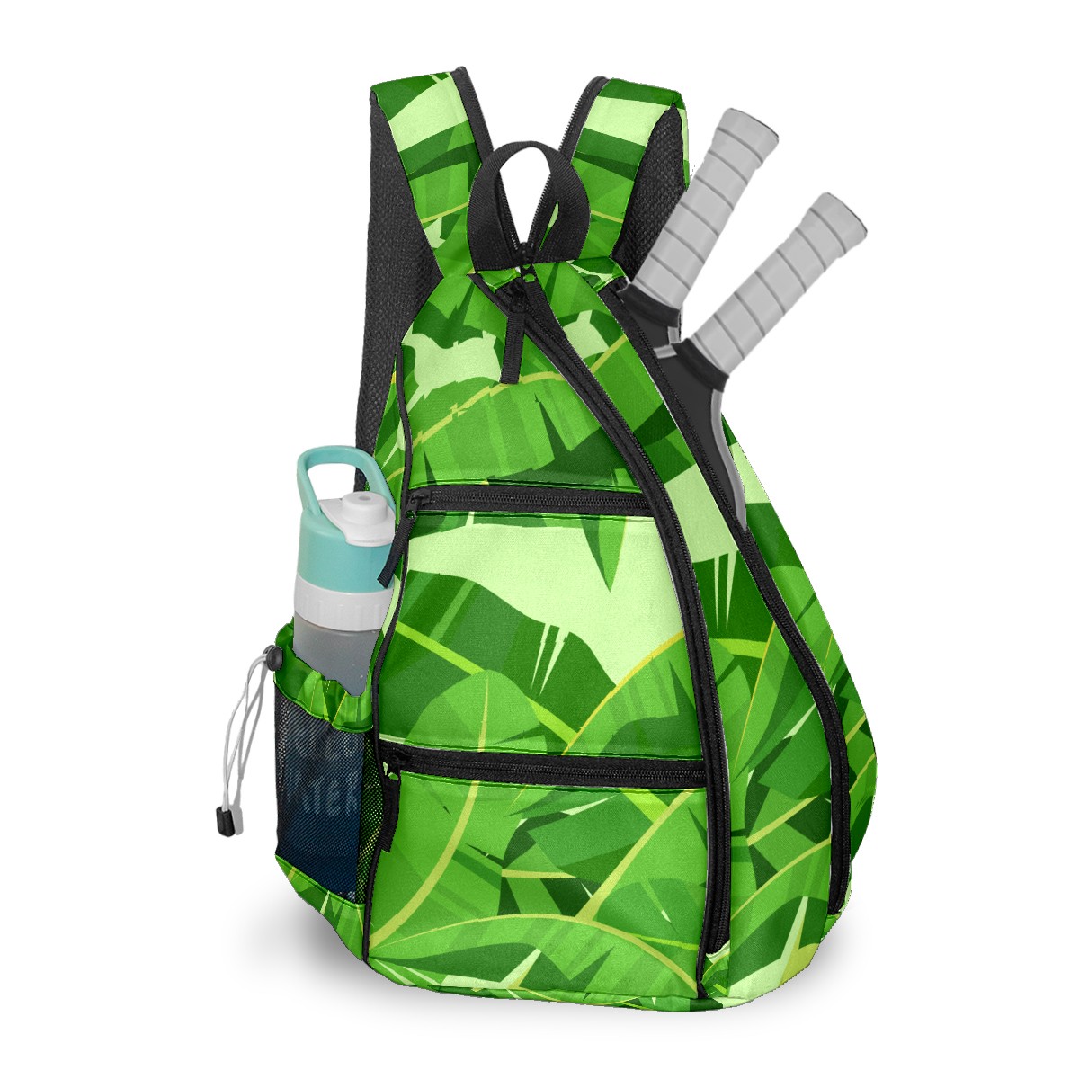 Multifunctional Pickleball Bag,Large Capacity Sports Pickleball Racket Bag, Water Bottle Holder and Fence Hook,Suitable for Both Men Women -Banana Leaf