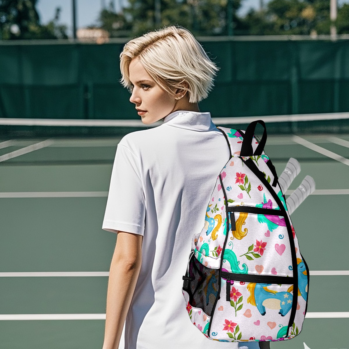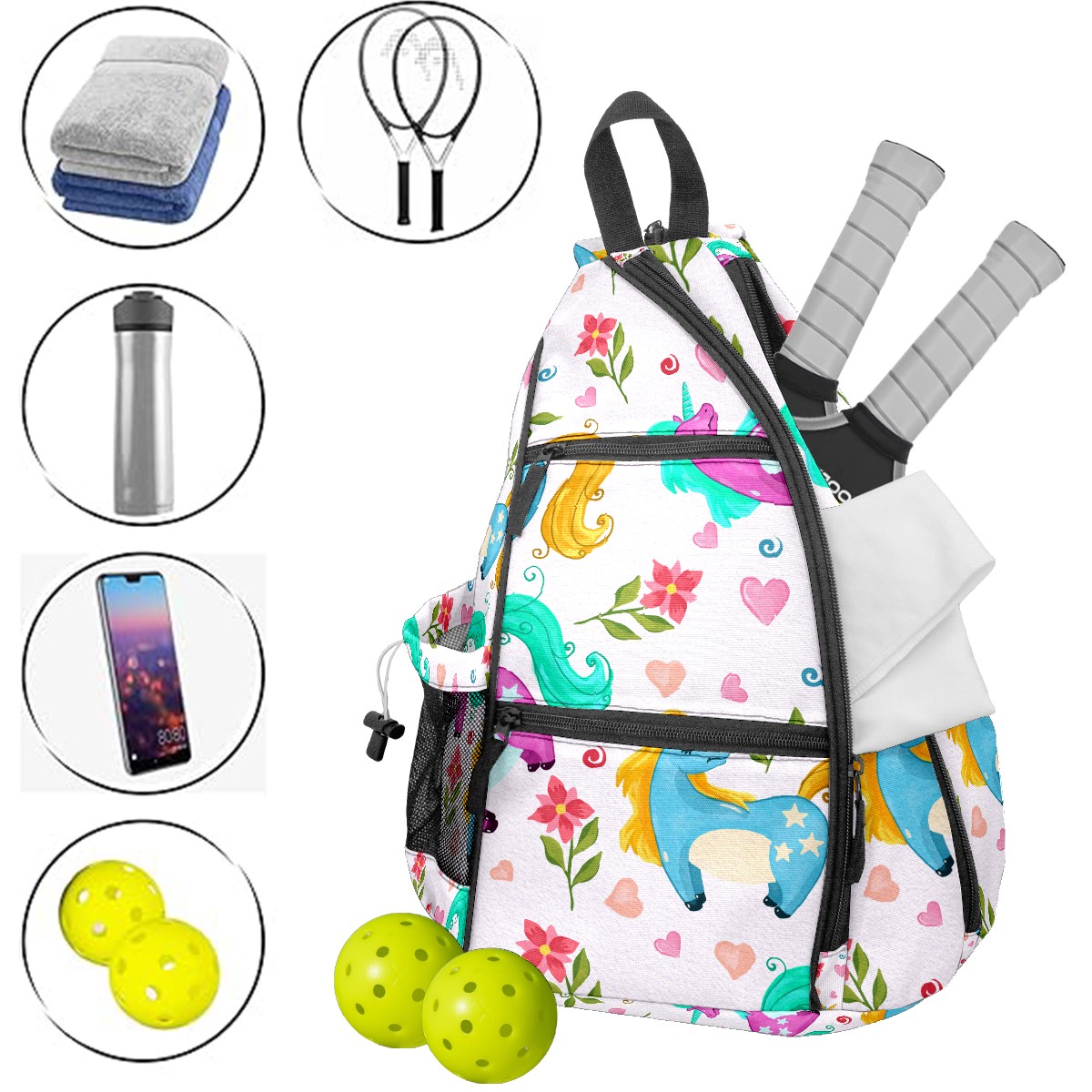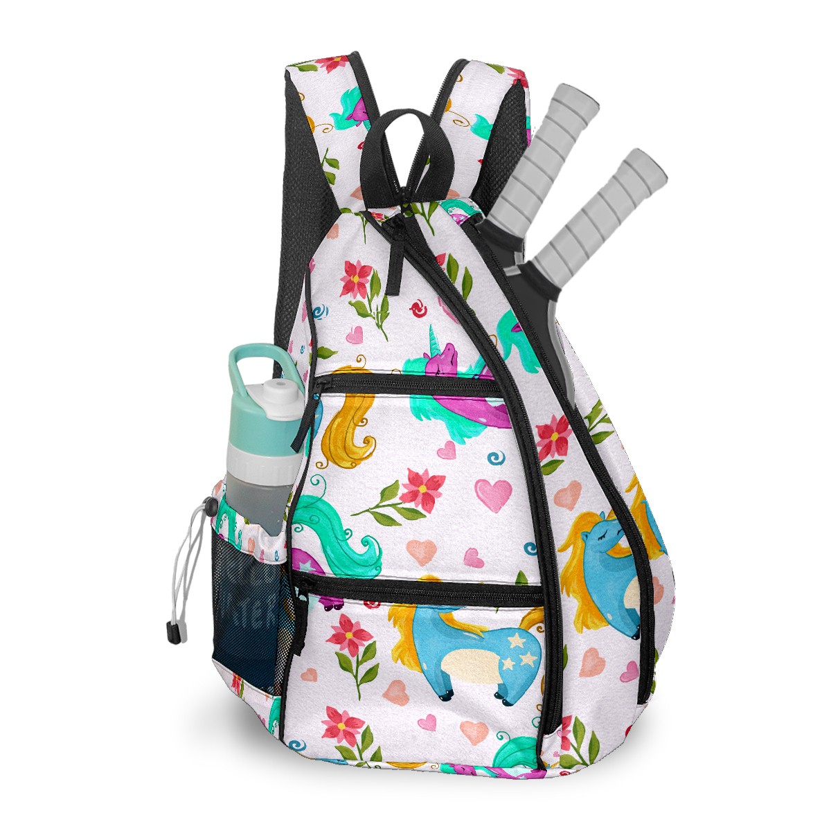 Multifunctional Pickleball Bag,Large Capacity Sports Pickleball Racket Bag, Water Bottle Holder and Fence Hook,Suitable for Both Men Women -Watercolor Unicorn Pattern