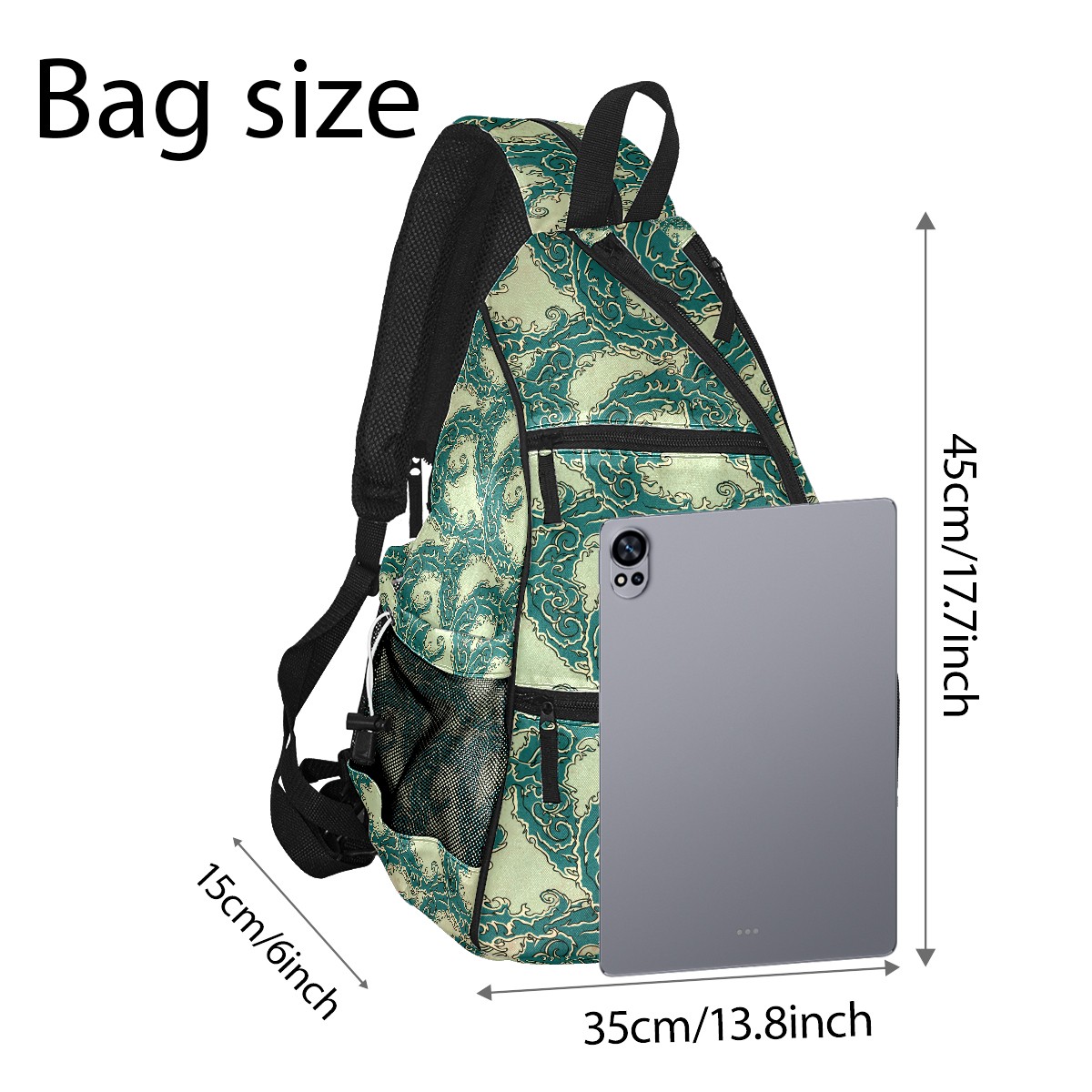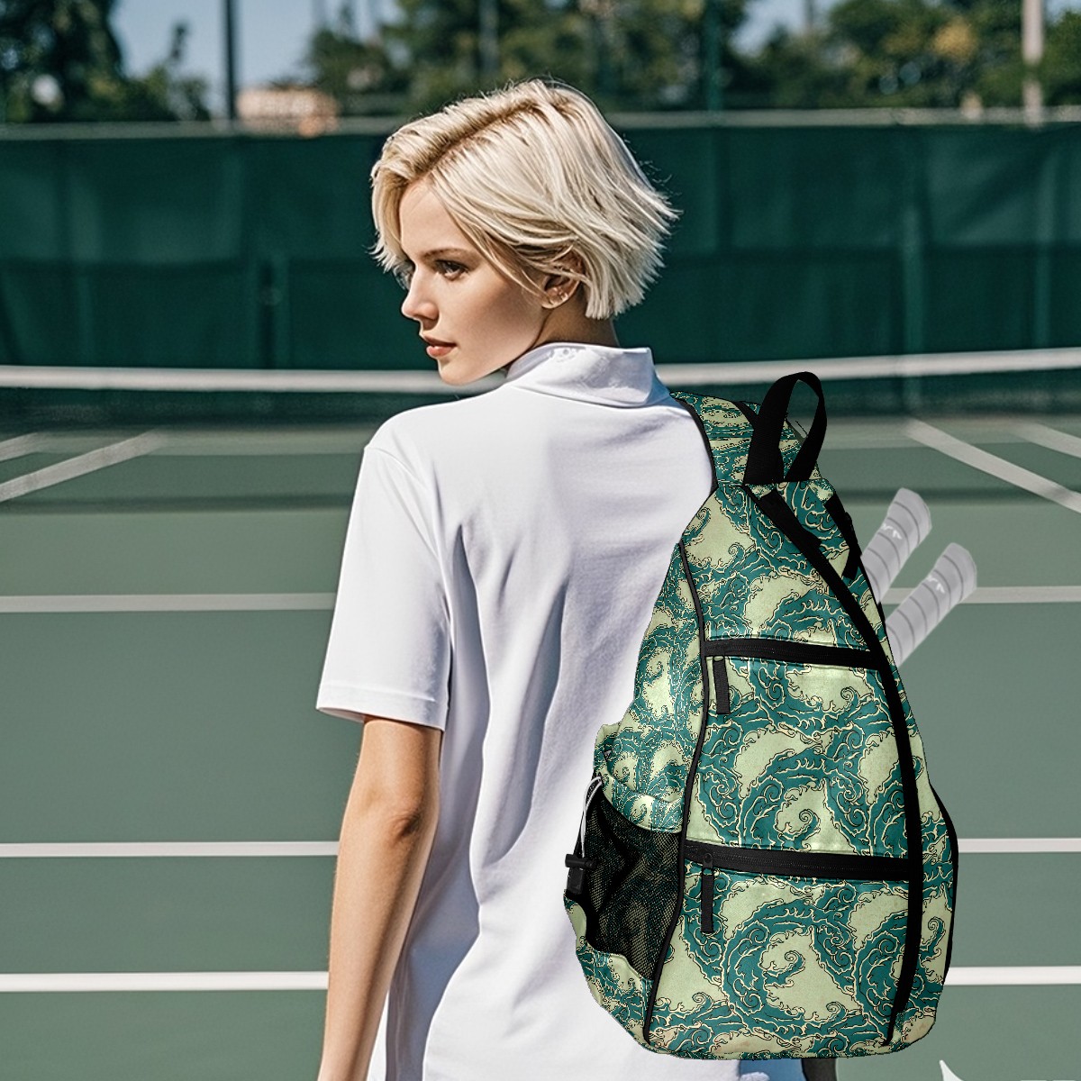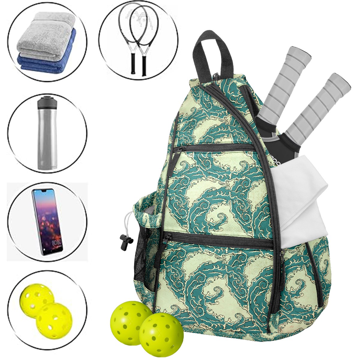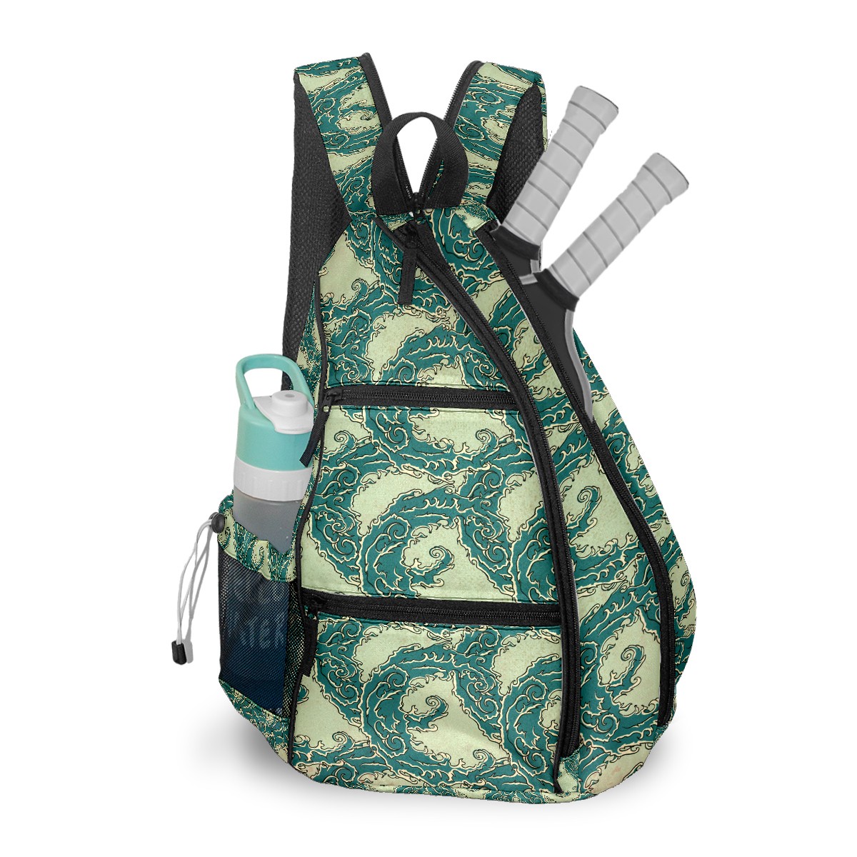 Multifunctional Pickleball Bag,Large Capacity Sports Pickleball Racket Bag, Water Bottle Holder and Fence Hook,Suitable for Both Men Women -Vintage Waves Pattern
