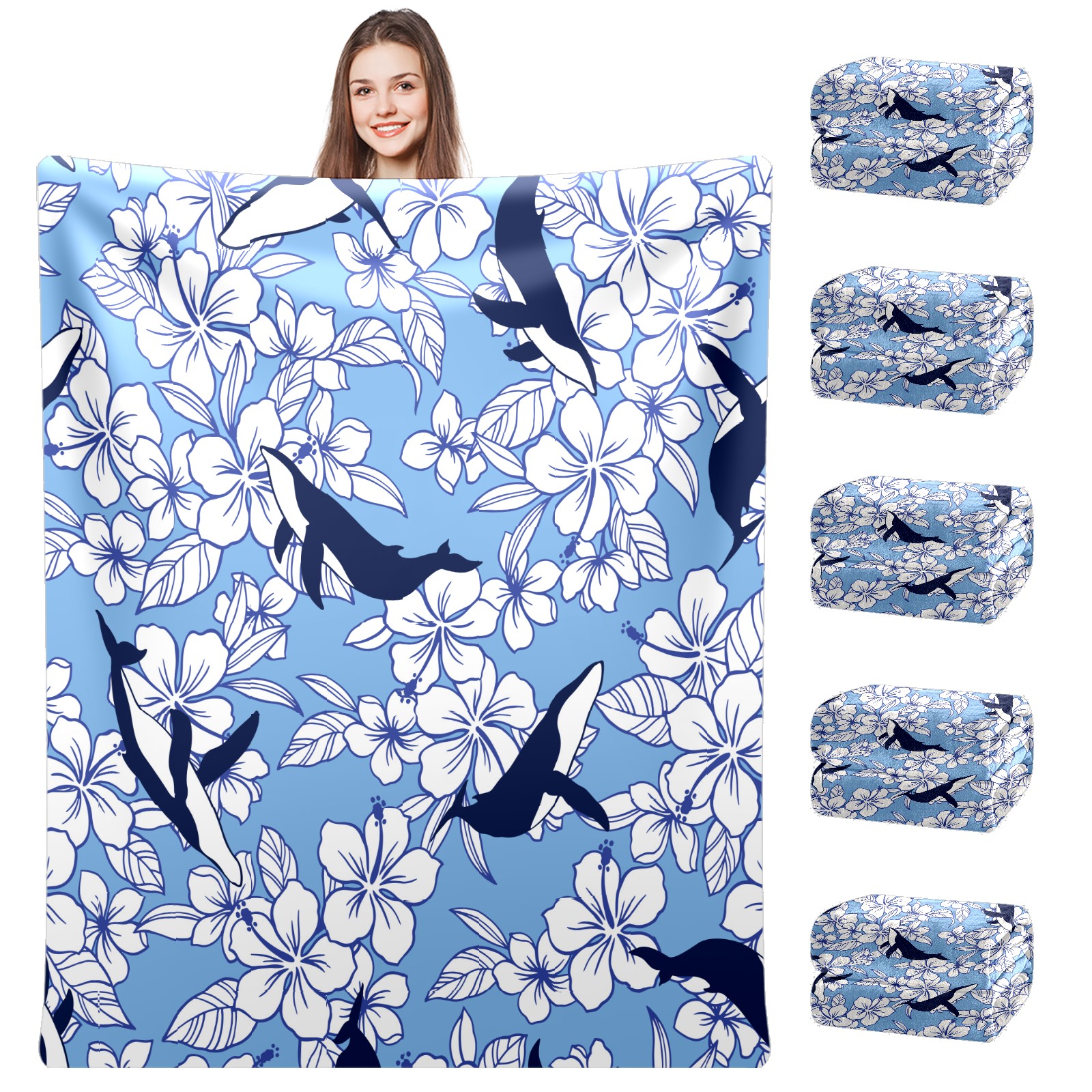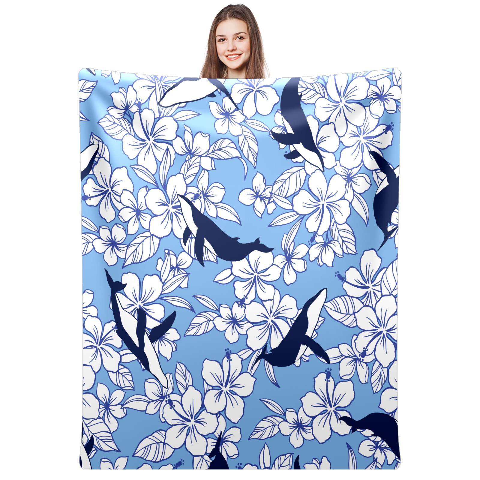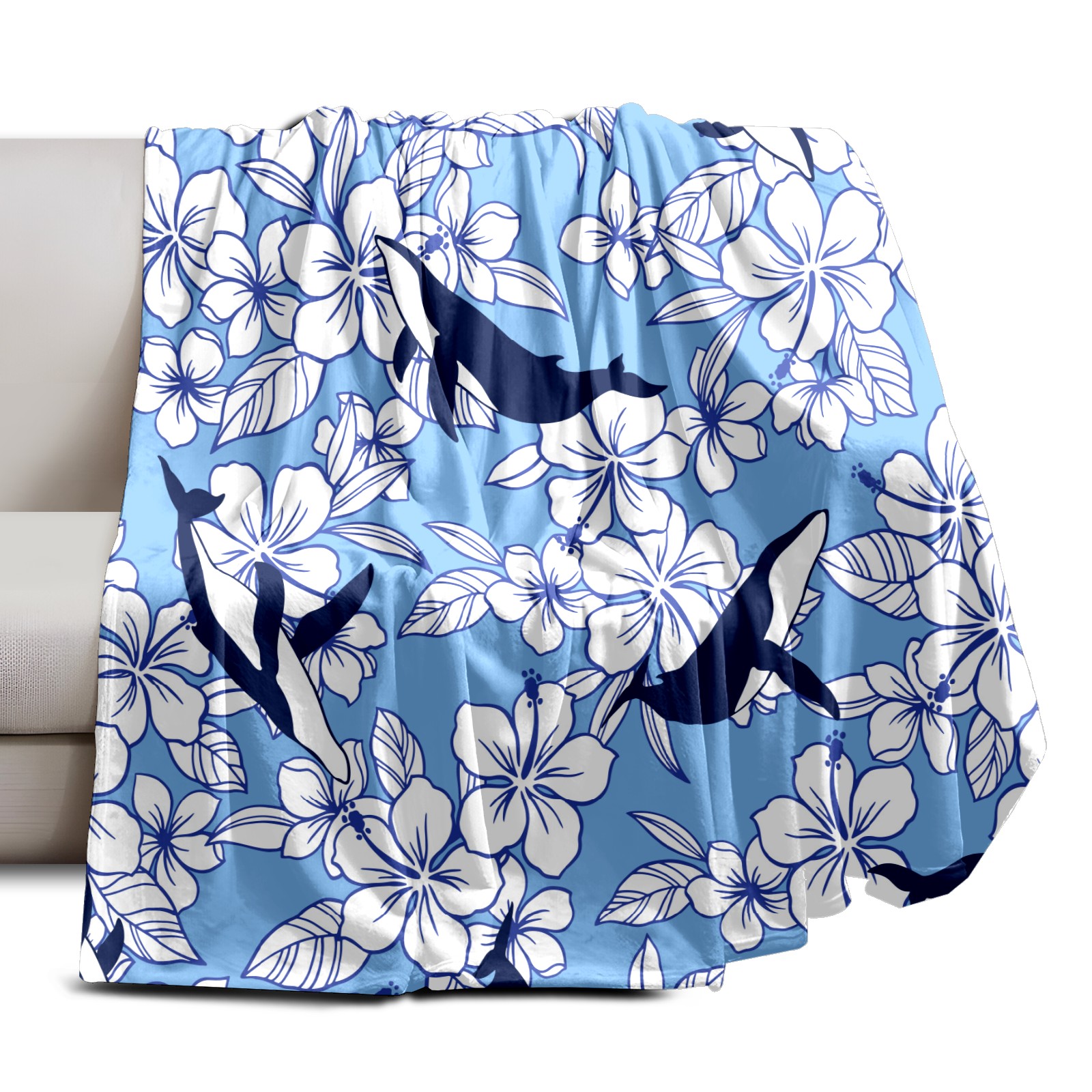 Flannel Blanket, Ultra-Soft Comfortable Home Decor Rug, The Perfect Comfort Gift for Both Men Women, Suitable for Beds, Sofas, Loungewear, and Travel 30x39in(Whale Flowers)