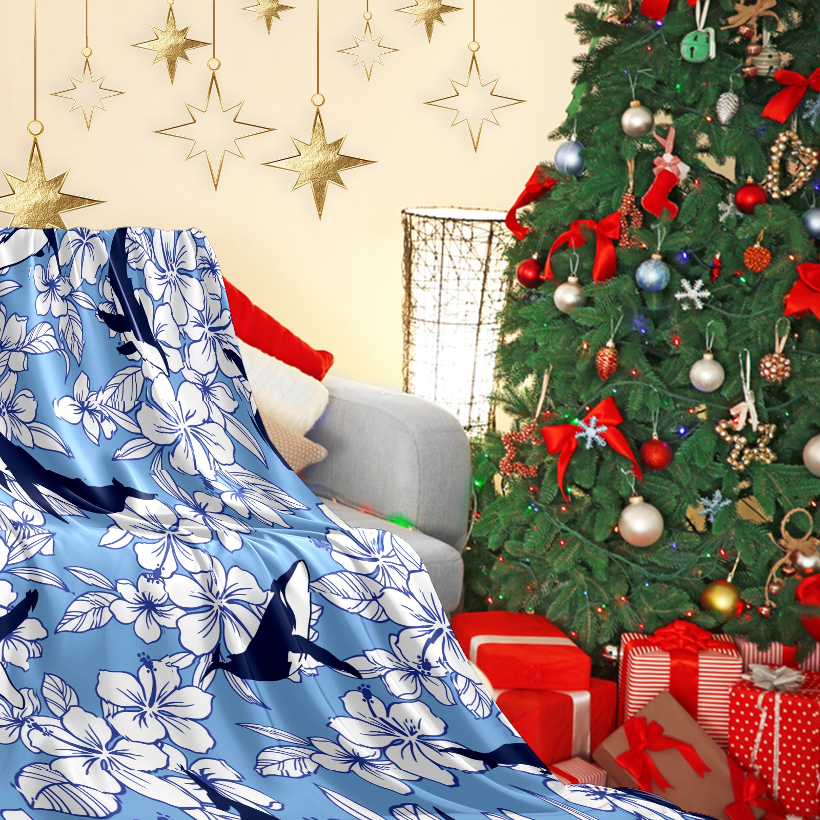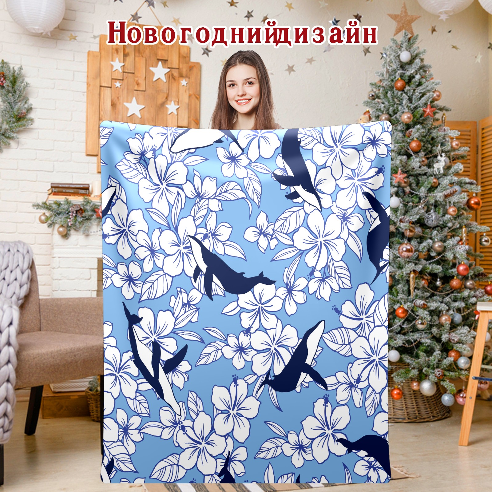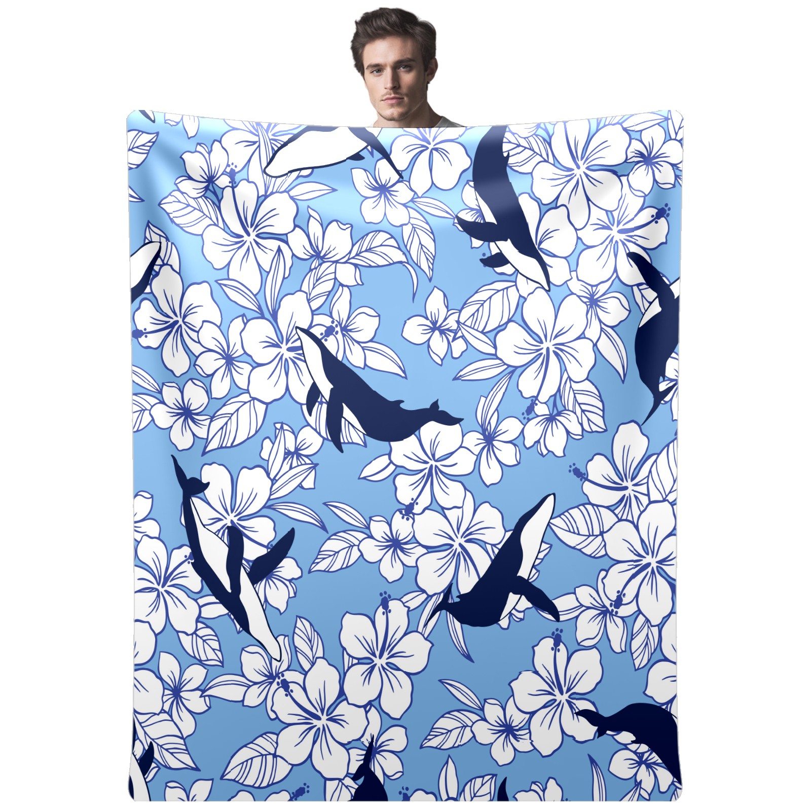 Flannel Blanket, Ultra-Soft Comfortable Home Decor Rug, The Perfect Comfort Gift for Both Men Women, Suitable for Beds, Sofas, Loungewear, and Travel 30x39in(Whale Flowers)