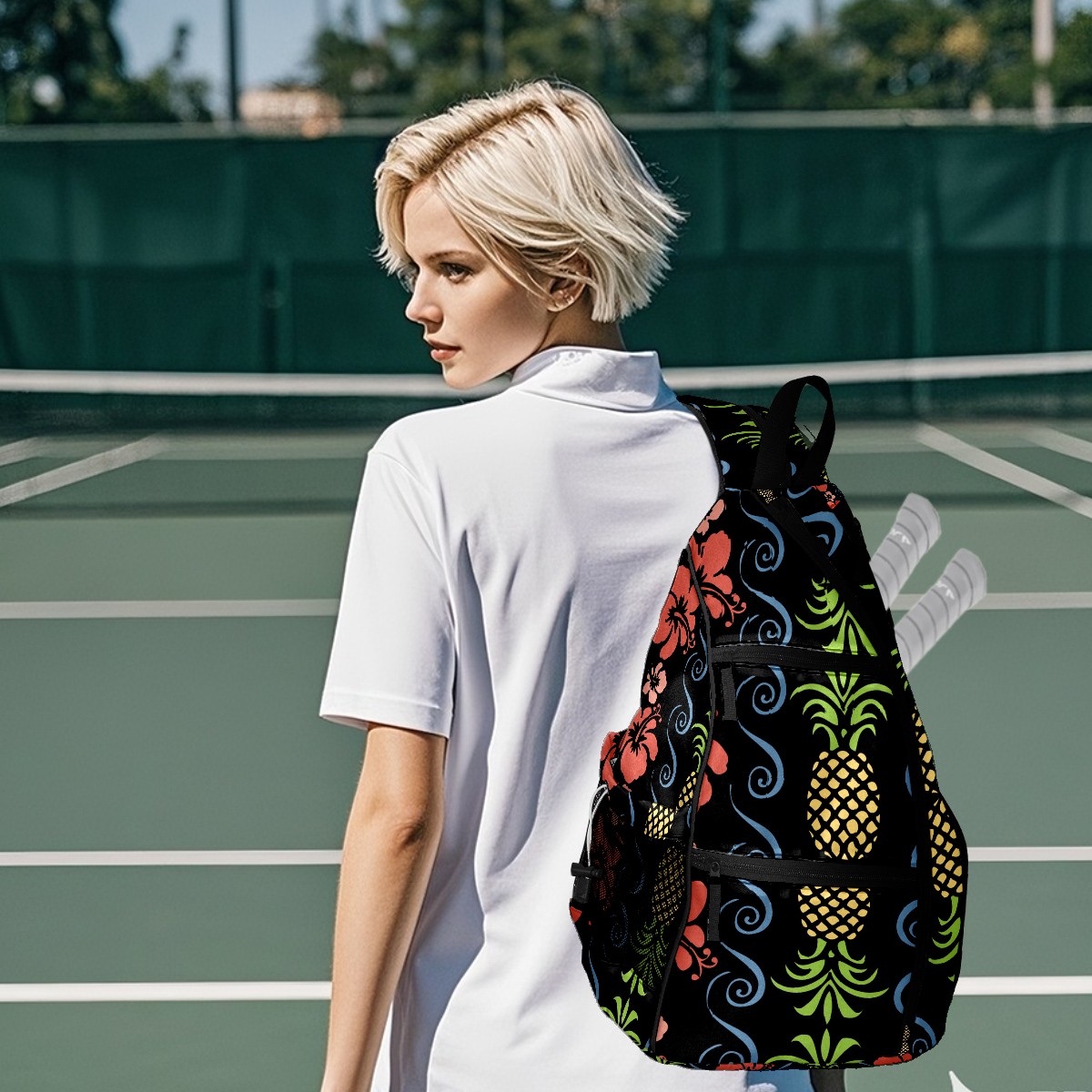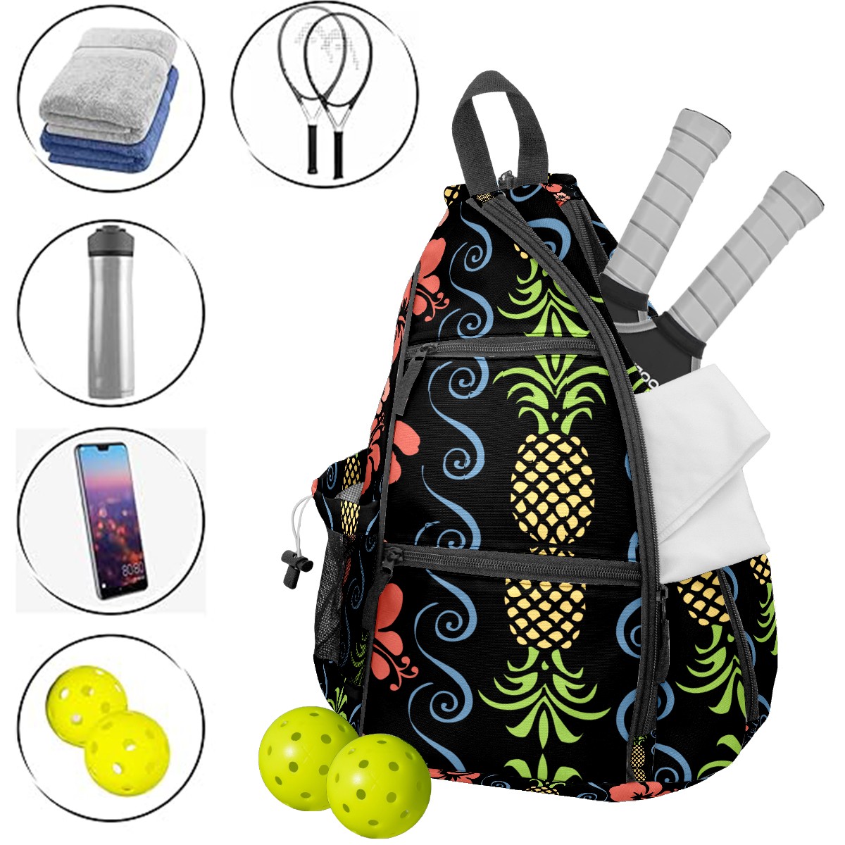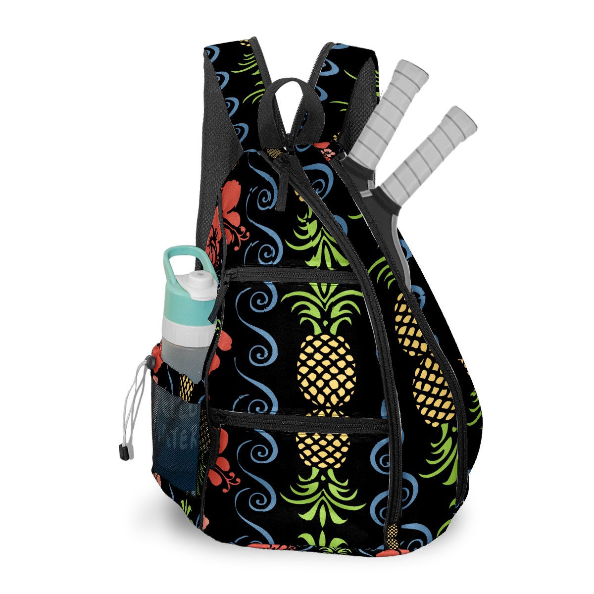 Multifunctional Pickleball Bag,Large Capacity Sports Pickleball Racket Bag, Water Bottle Holder and Fence Hook,Suitable for Both Men Women -Tropical Pattern