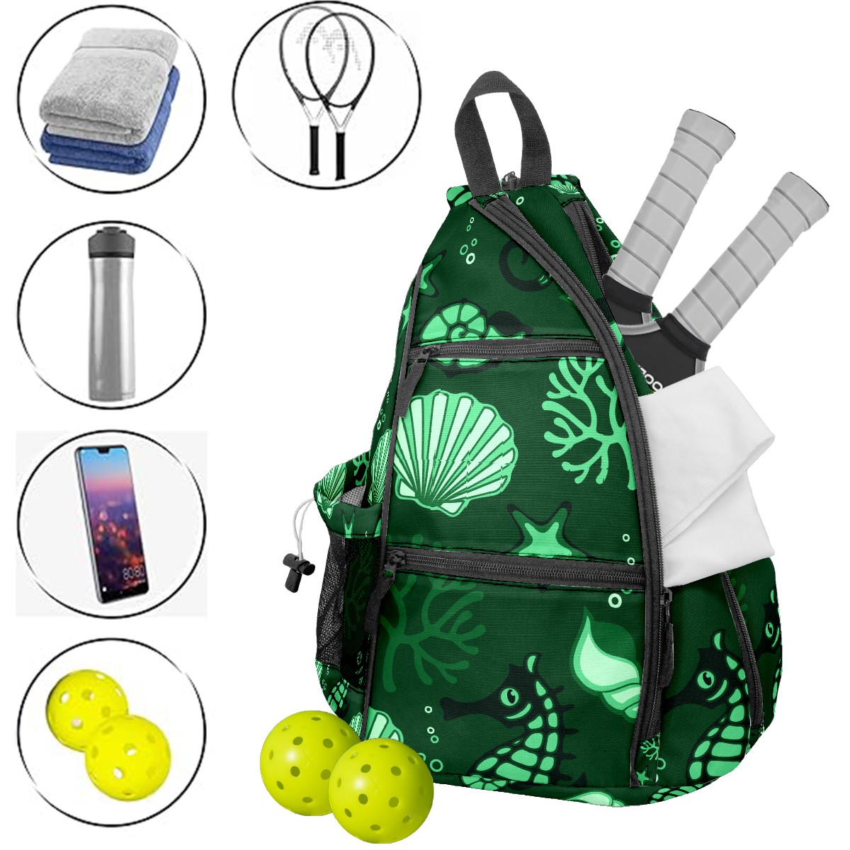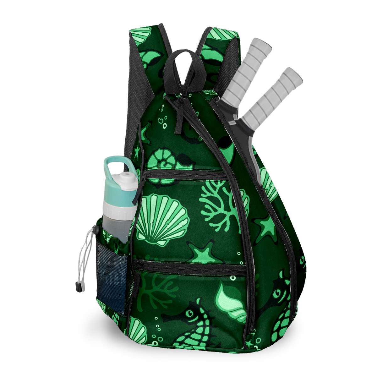 Multifunctional Pickleball Bag,Large Capacity Sports Pickleball Racket Bag, Water Bottle Holder and Fence Hook,Suitable for Both Men Women -Sea Fauna