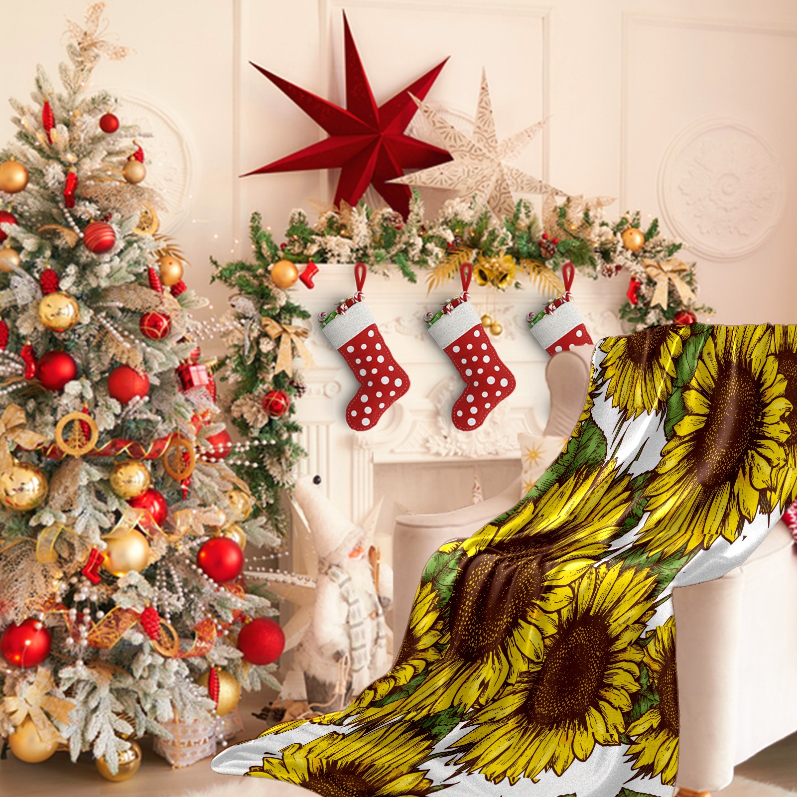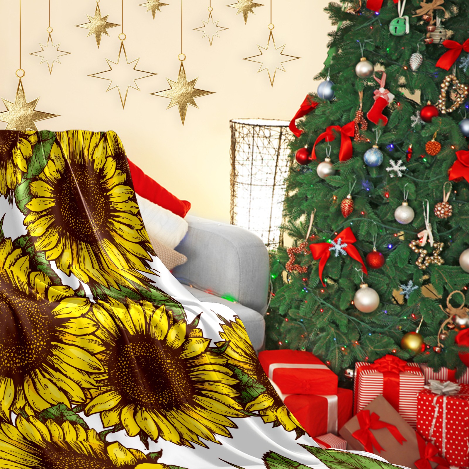 Flannel Blanket, Ultra-Soft Comfortable Home Decor Rug, The Perfect Comfort Gift for Both Men Women, Suitable for Beds, Sofas, Loungewear, and Travel 30x39in(Sunflower Pattern)