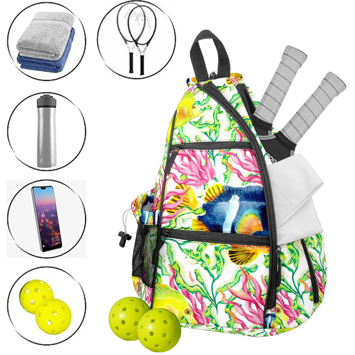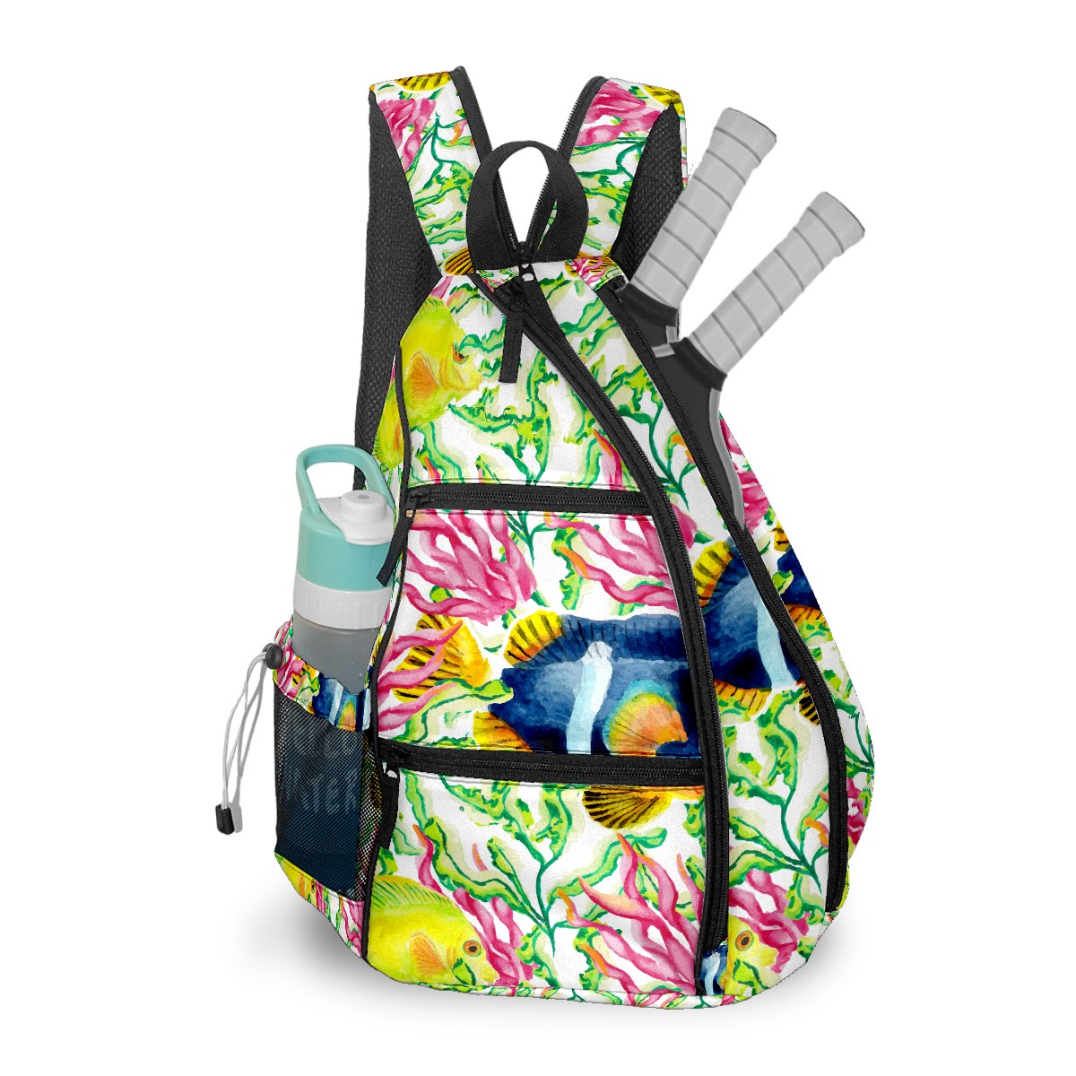Multifunctional Pickleball Bag,Large Capacity Sports Pickleball Racket Bag, Water Bottle Holder and Fence Hook,Suitable for Both Men Women -Sea Creatures