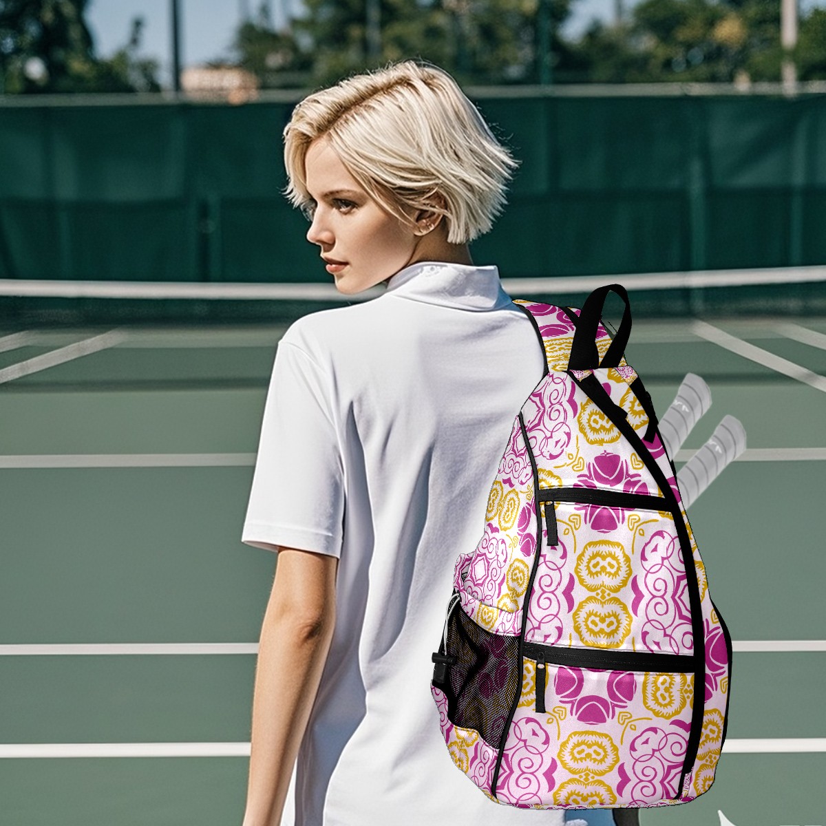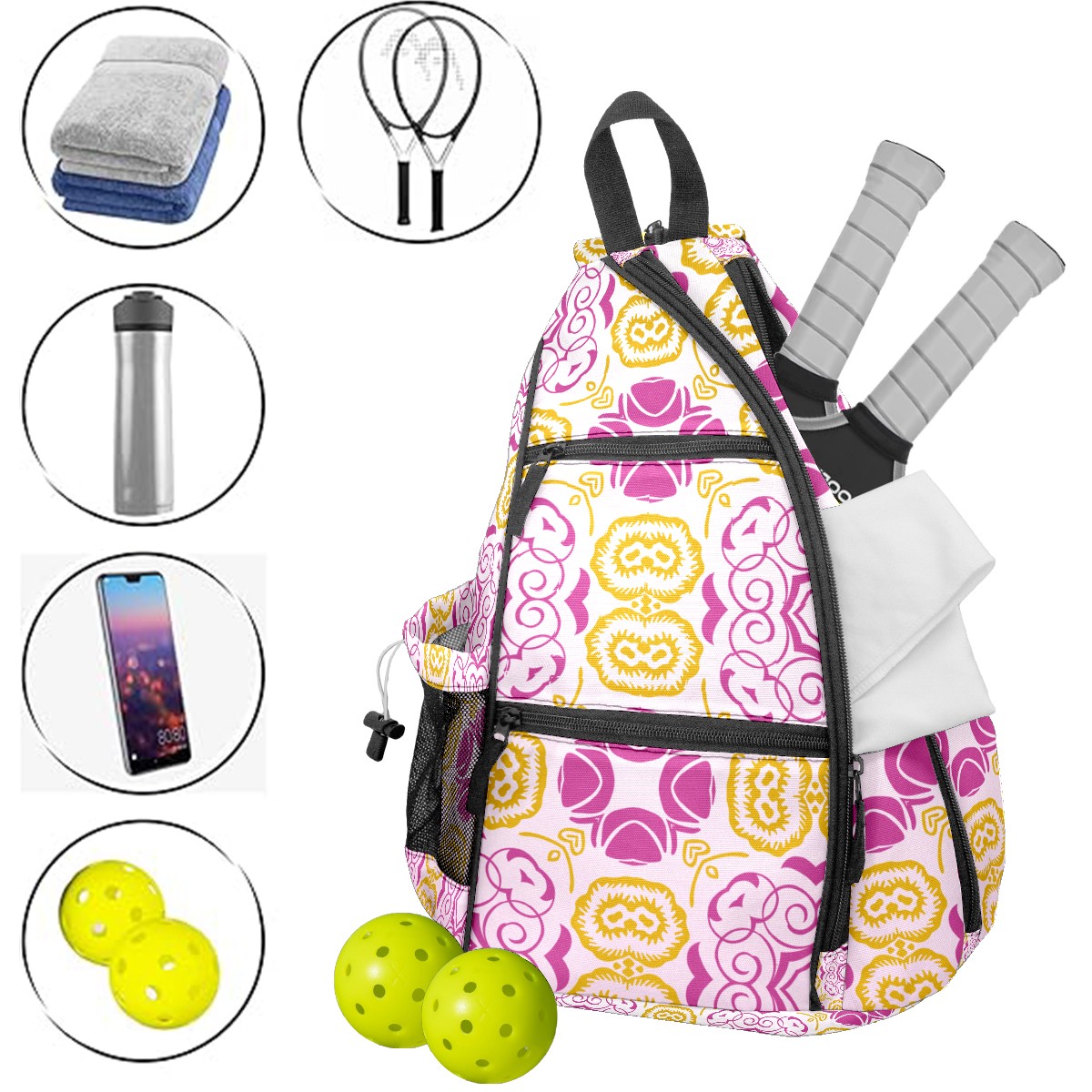 Multifunctional Pickleball Bag,Large Capacity Sports Pickleball Racket Bag, Water Bottle Holder and Fence Hook,Suitable for Both Men Women -Retro Flowers Pattern