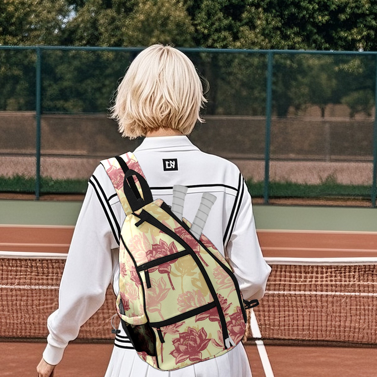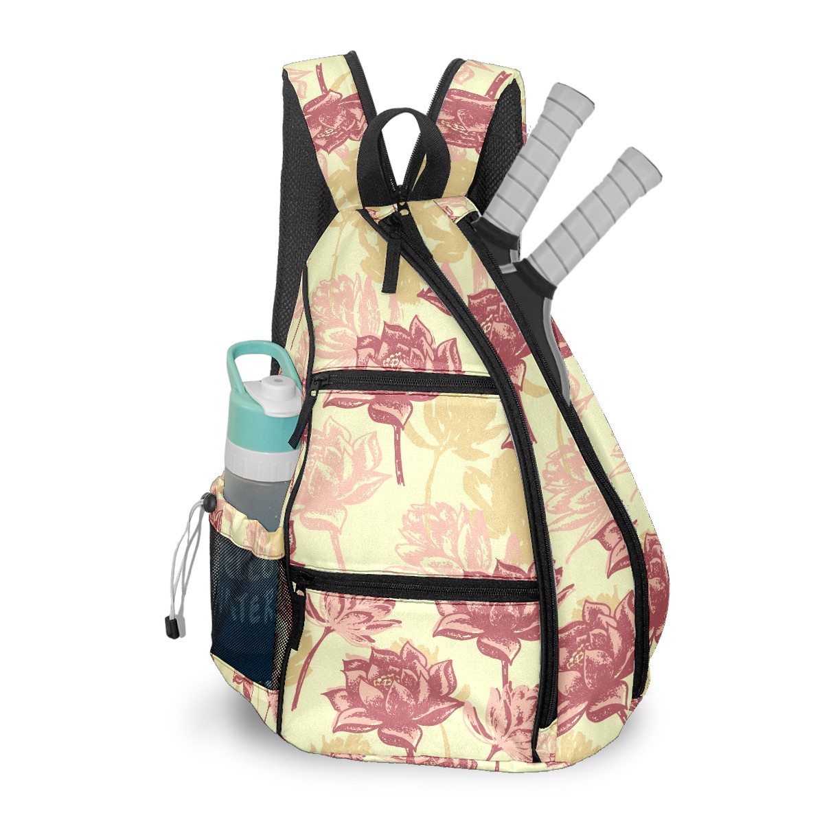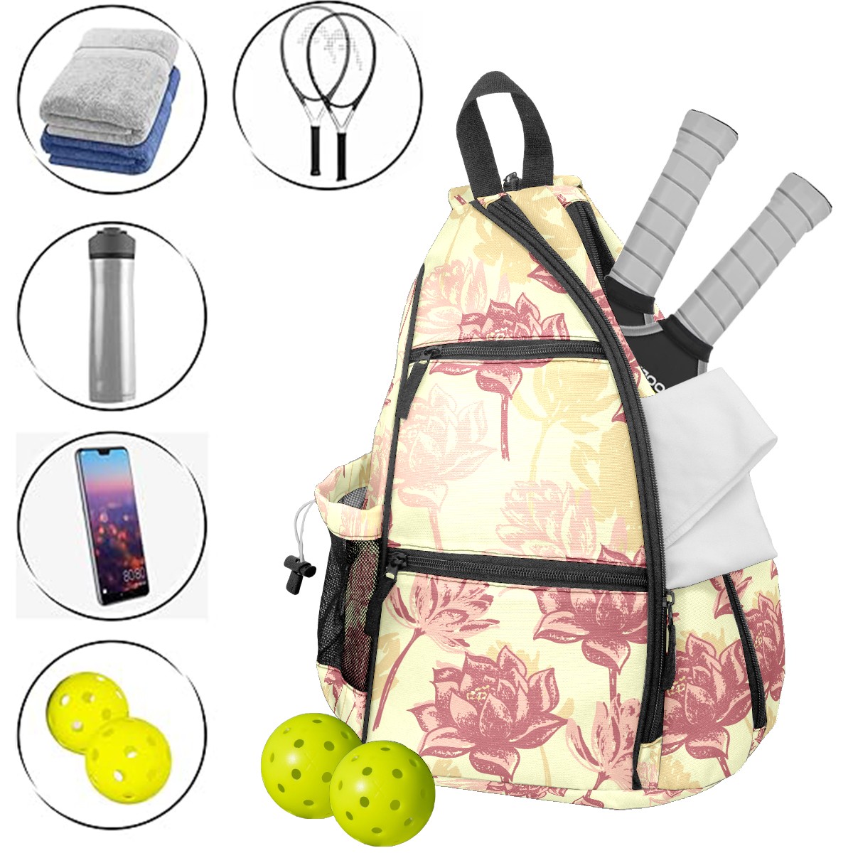 Multifunctional Pickleball Bag,Large Capacity Sports Pickleball Racket Bag, Water Bottle Holder and Fence Hook,Suitable for Both Men Women -Lotus Pattern
