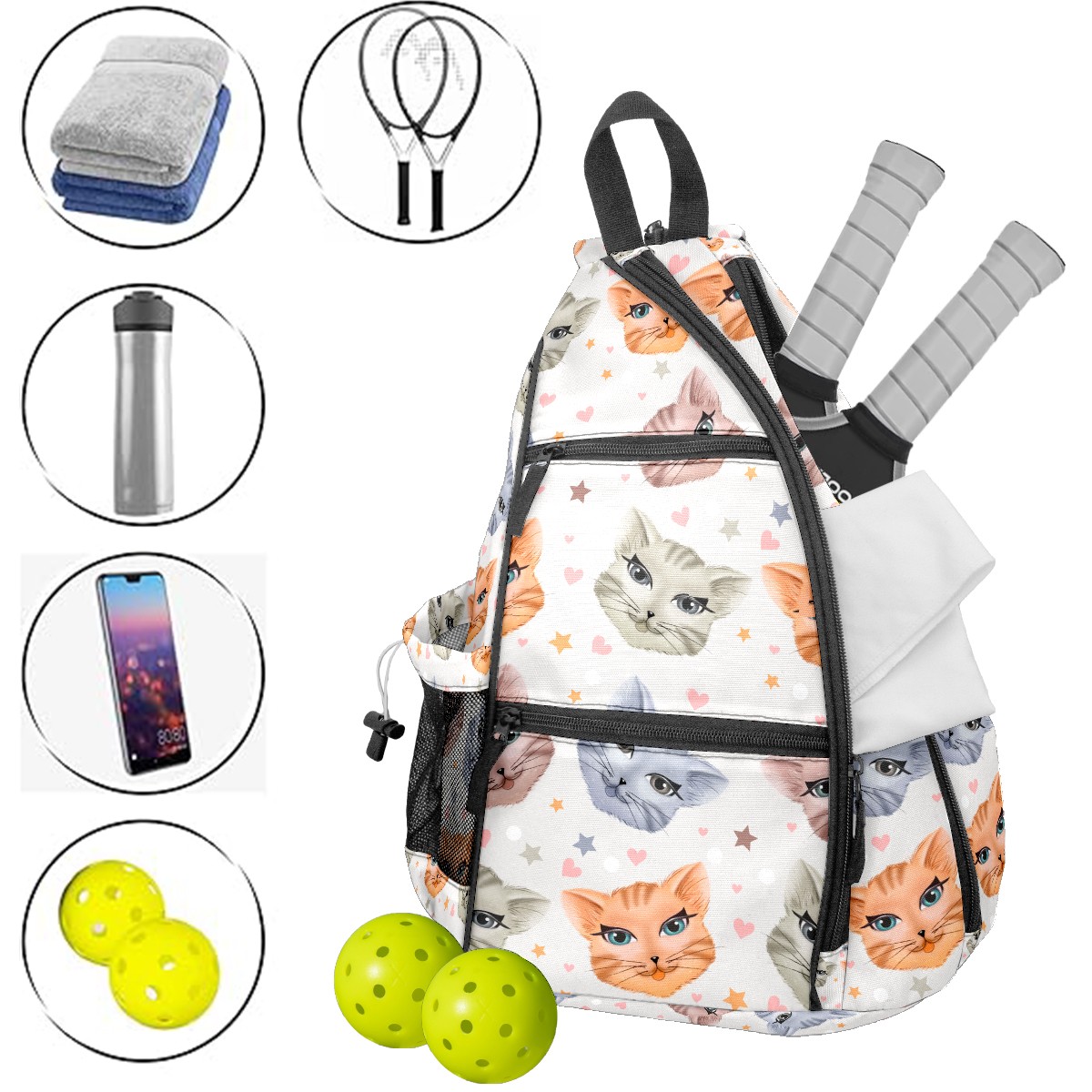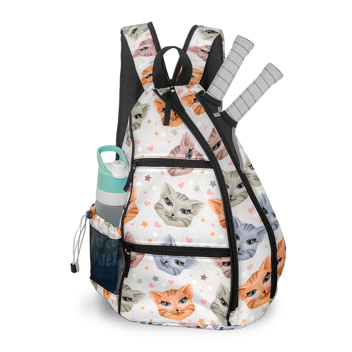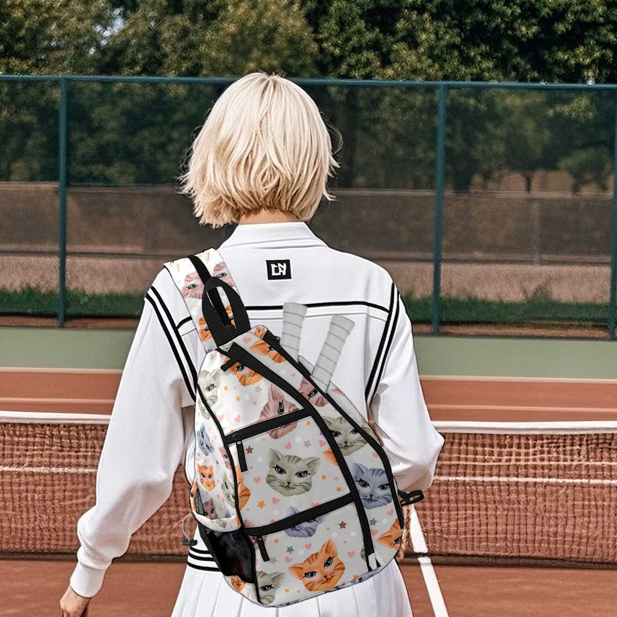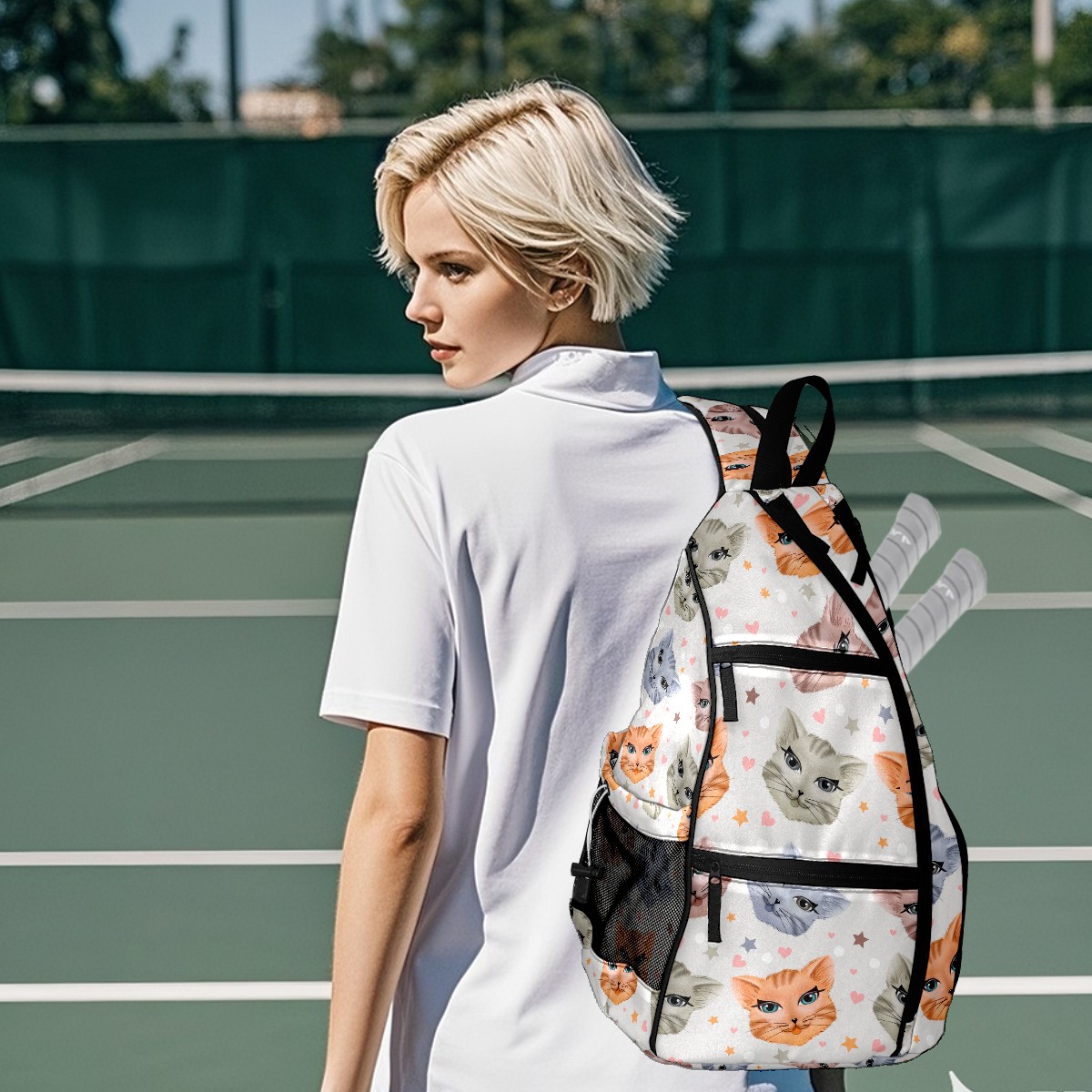 Multifunctional Pickleball Bag,Large Capacity Sports Pickleball Racket Bag, Water Bottle Holder and Fence Hook,Suitable for Both Men Women -Cute Cat Pattern