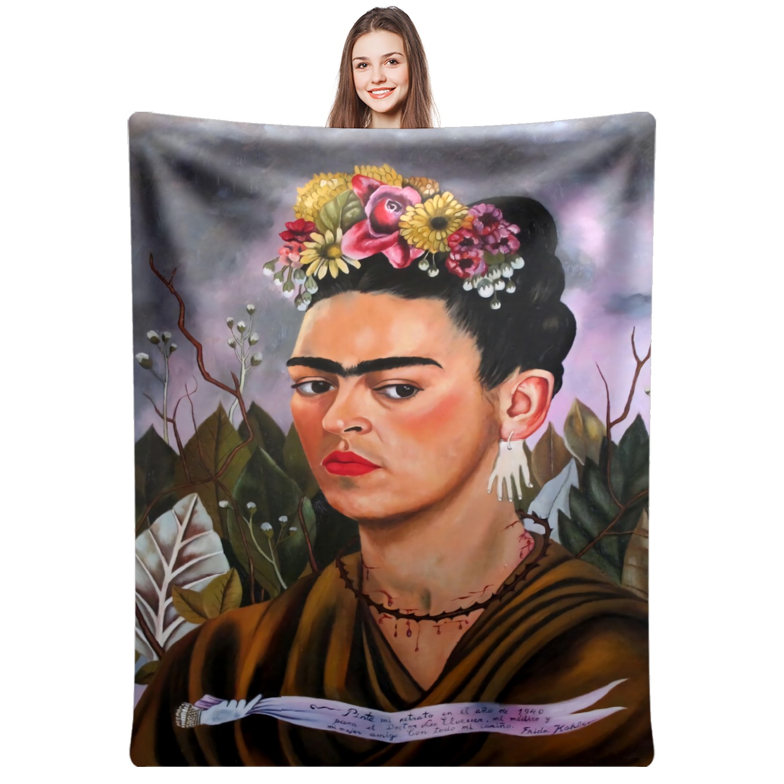 Flannel Blanket, Ultra-Soft Comfortable Home Decor Rug, The Perfect Comfort Gift for Both Men Women, Suitable for Beds, Sofas, Loungewear, and Travel 30x39in(Frida Kahlo Self-portrait)