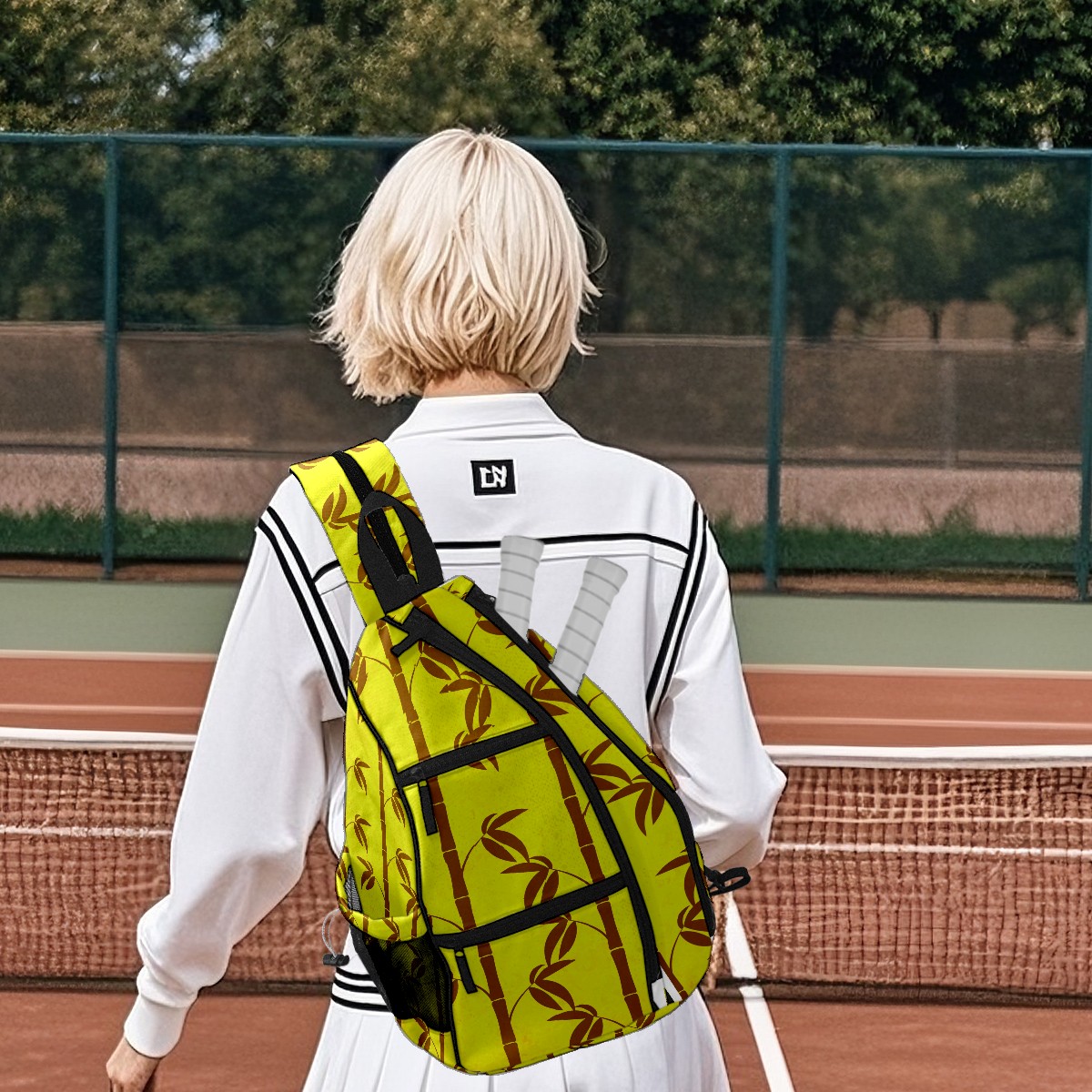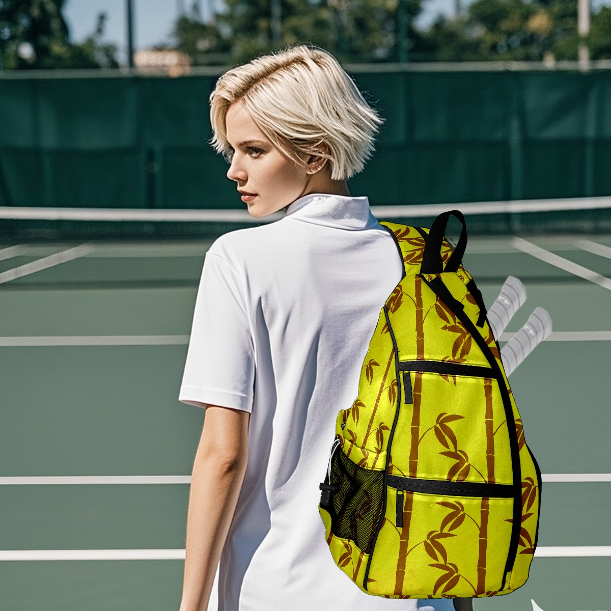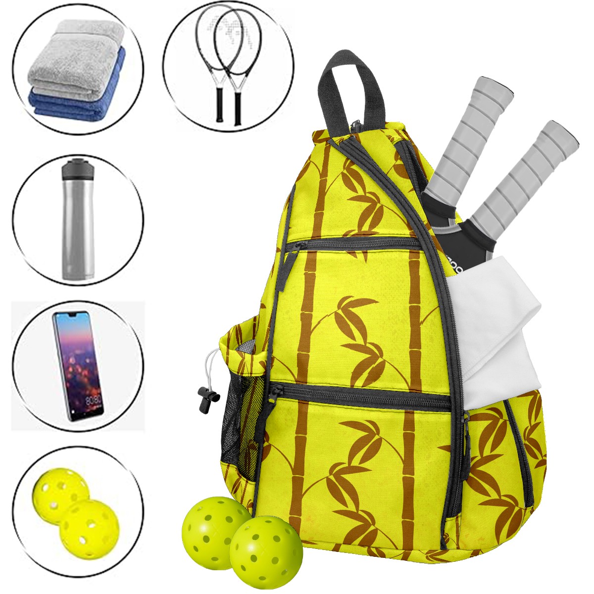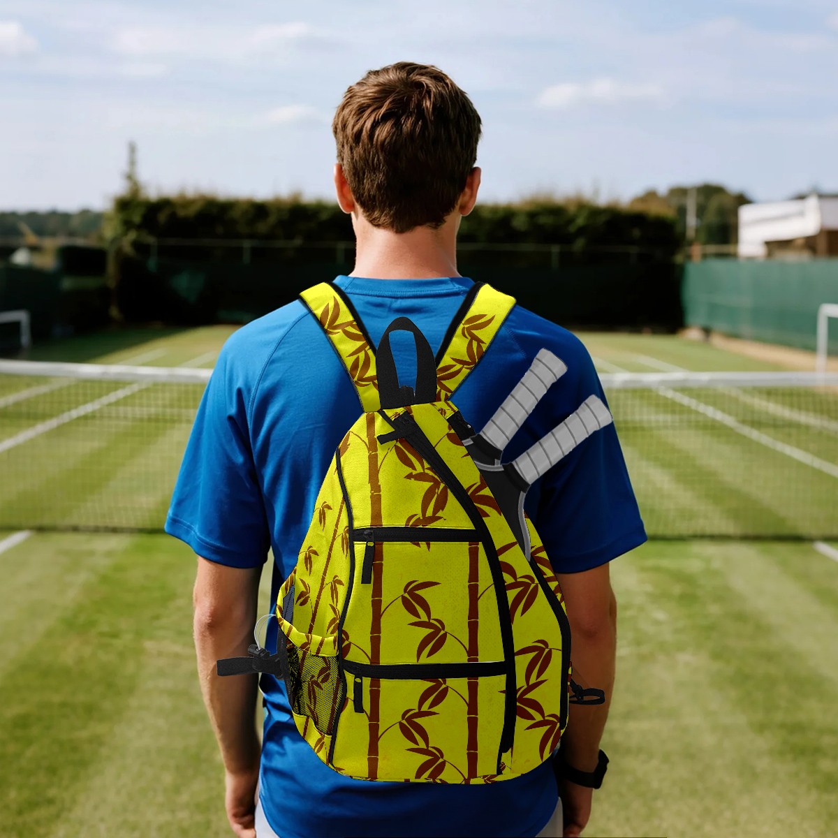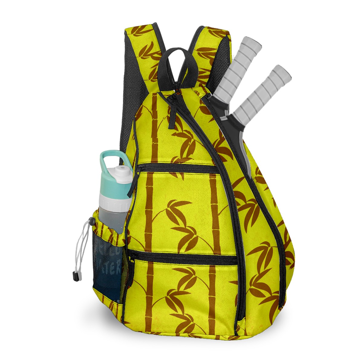 Multifunctional Pickleball Bag,Large Capacity Sports Pickleball Racket Bag, Water Bottle Holder and Fence Hook,Suitable for Both Men Women -Bamboo Patters