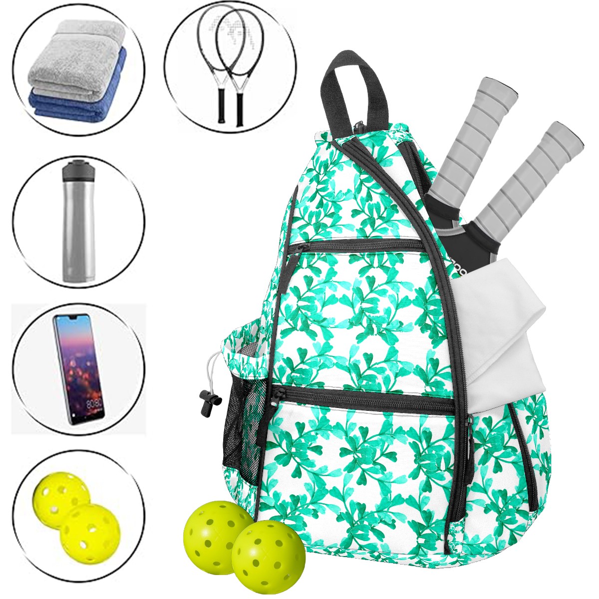 Multifunctional Pickleball Bag,Large Capacity Sports Pickleball Racket Bag, Water Bottle Holder and Fence Hook,Suitable for Both Men Women -Watercolor Floral Pattern