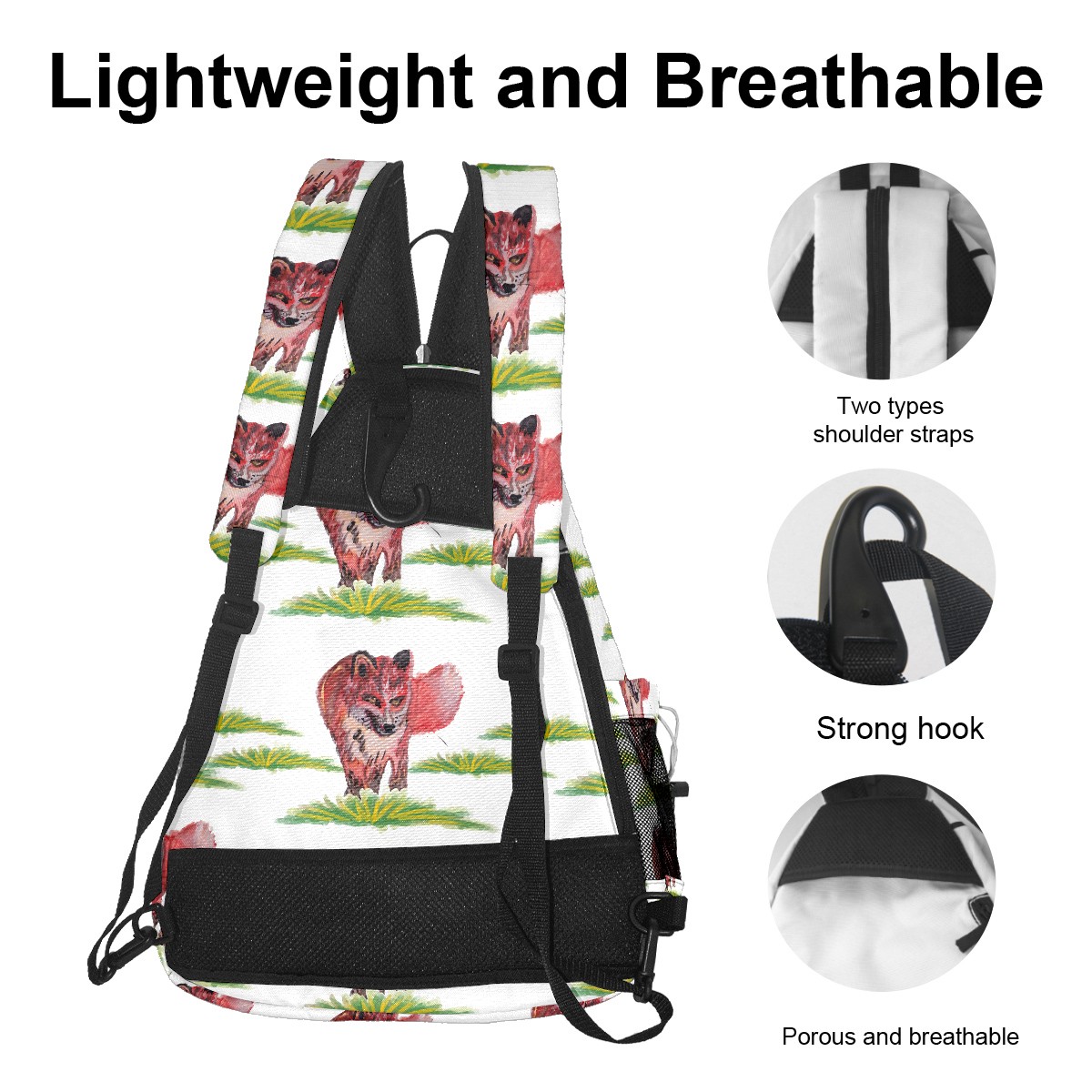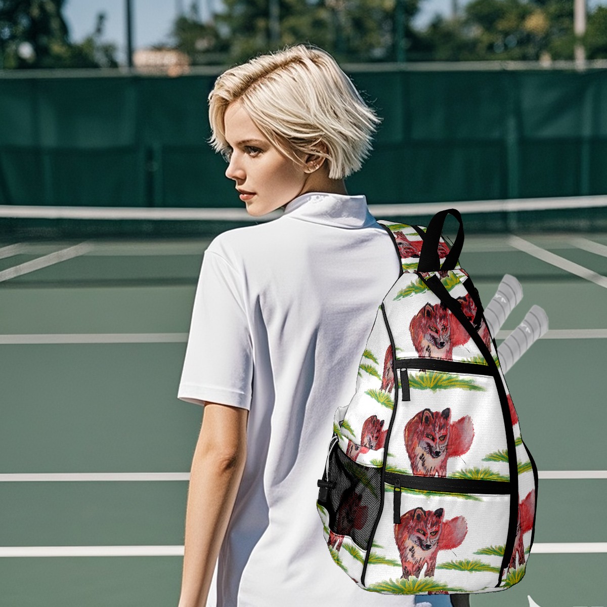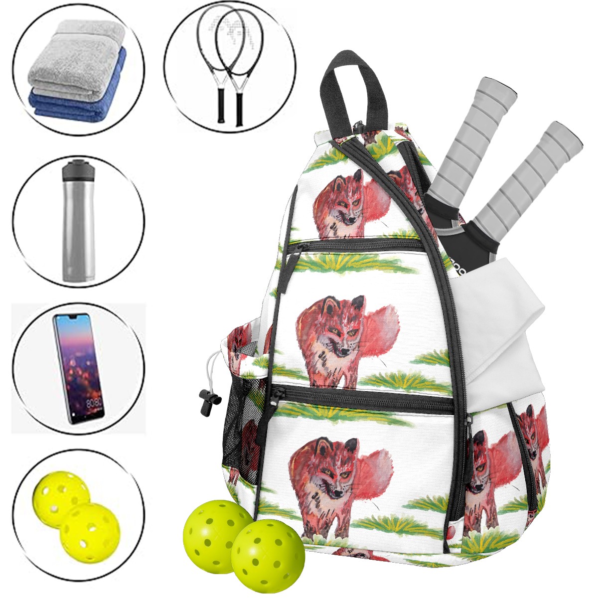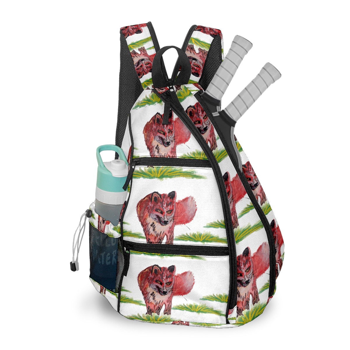 Multifunctional Pickleball Bag,Large Capacity Sports Pickleball Racket Bag, Water Bottle Holder and Fence Hook,Suitable for Both Men Women -Watercolor Fox