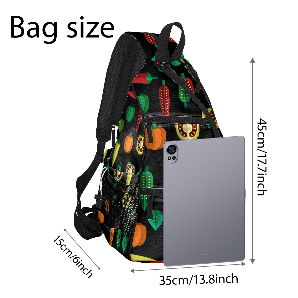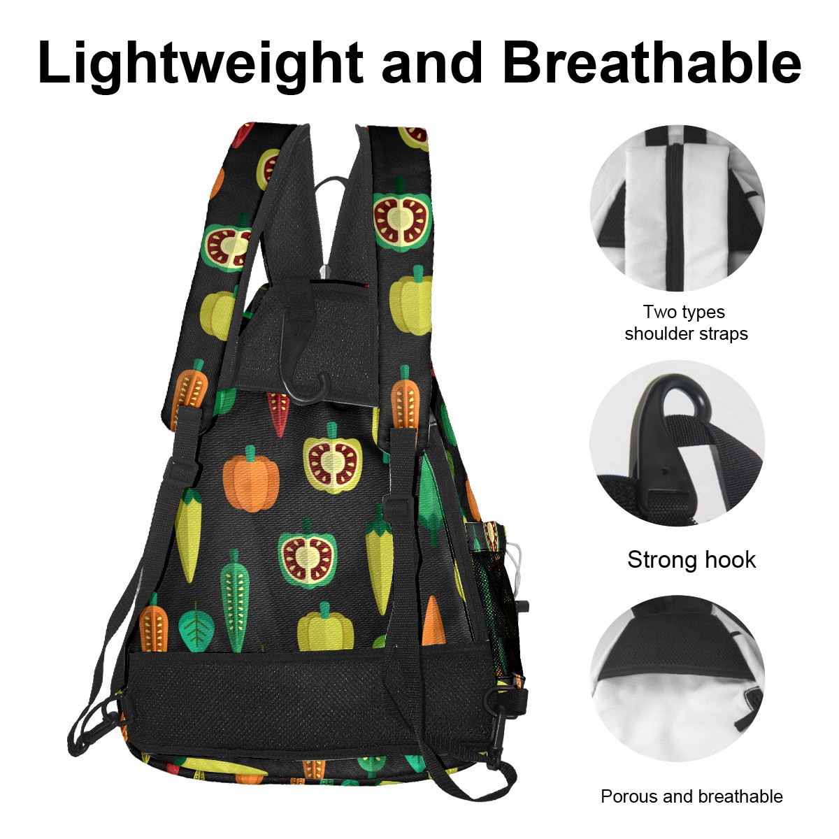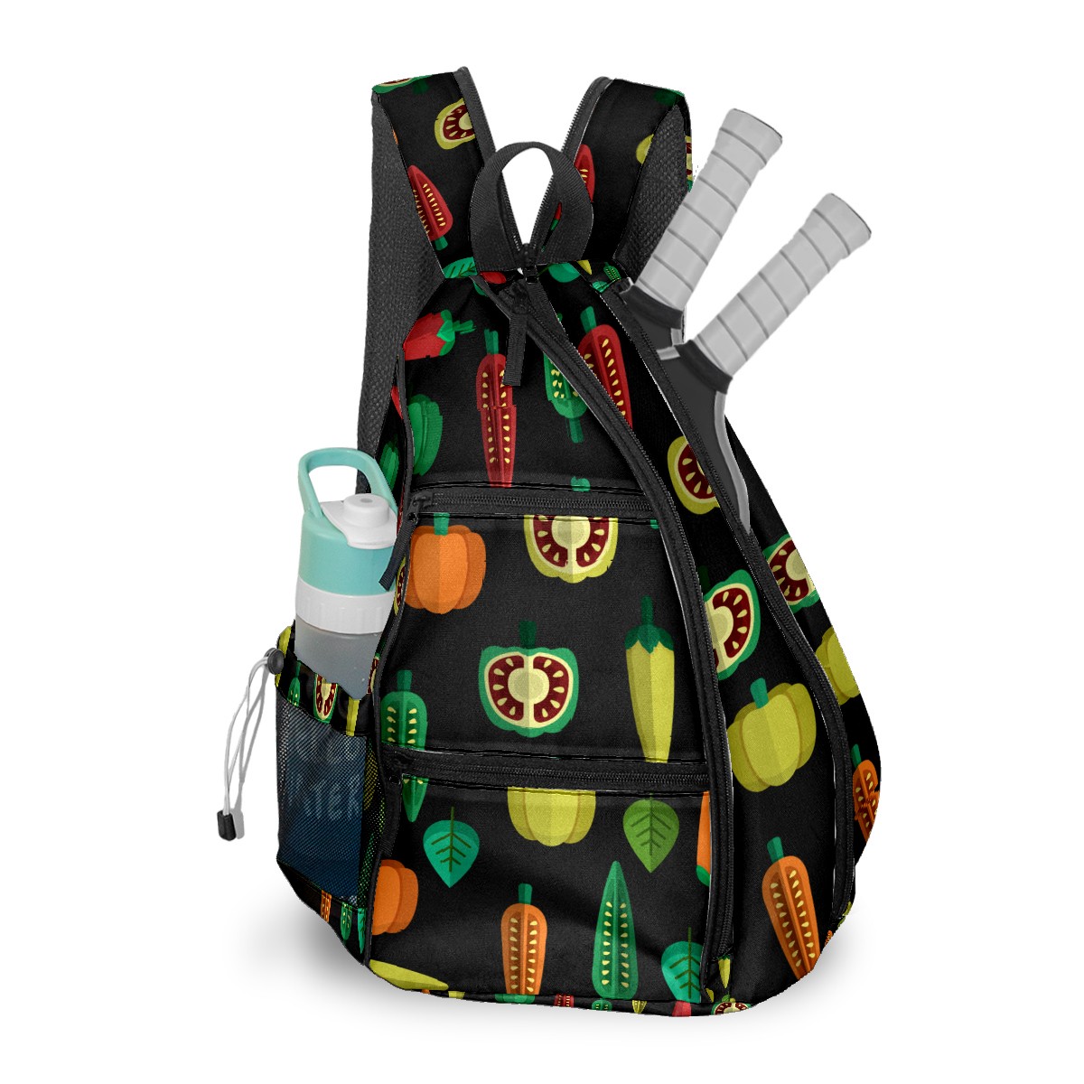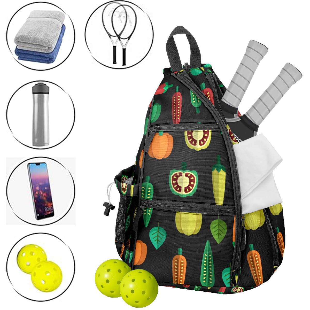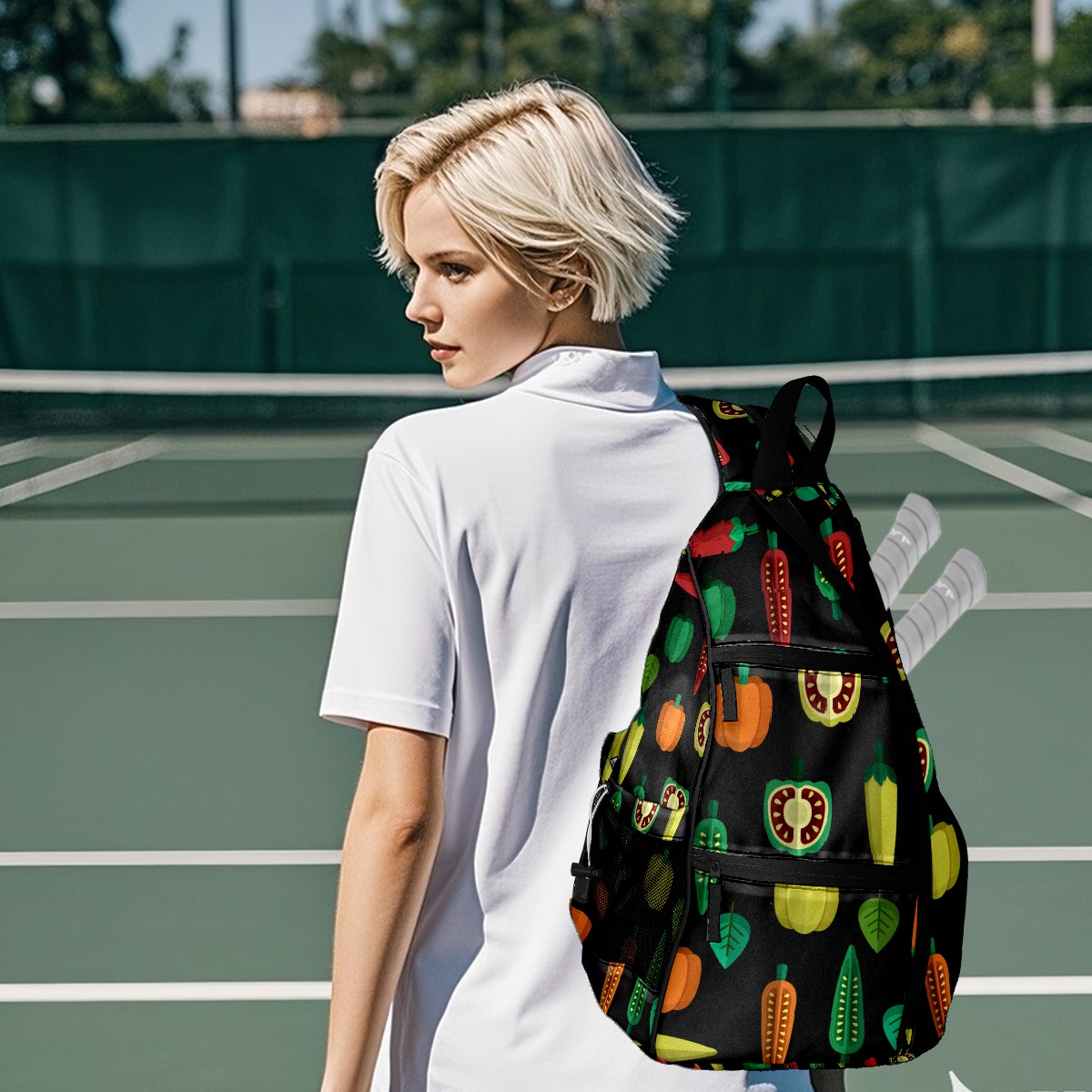 Multifunctional Pickleball Bag,Large Capacity Sports Pickleball Racket Bag, Water Bottle Holder and Fence Hook,Suitable for Both Men Women -Vegetable Pattern