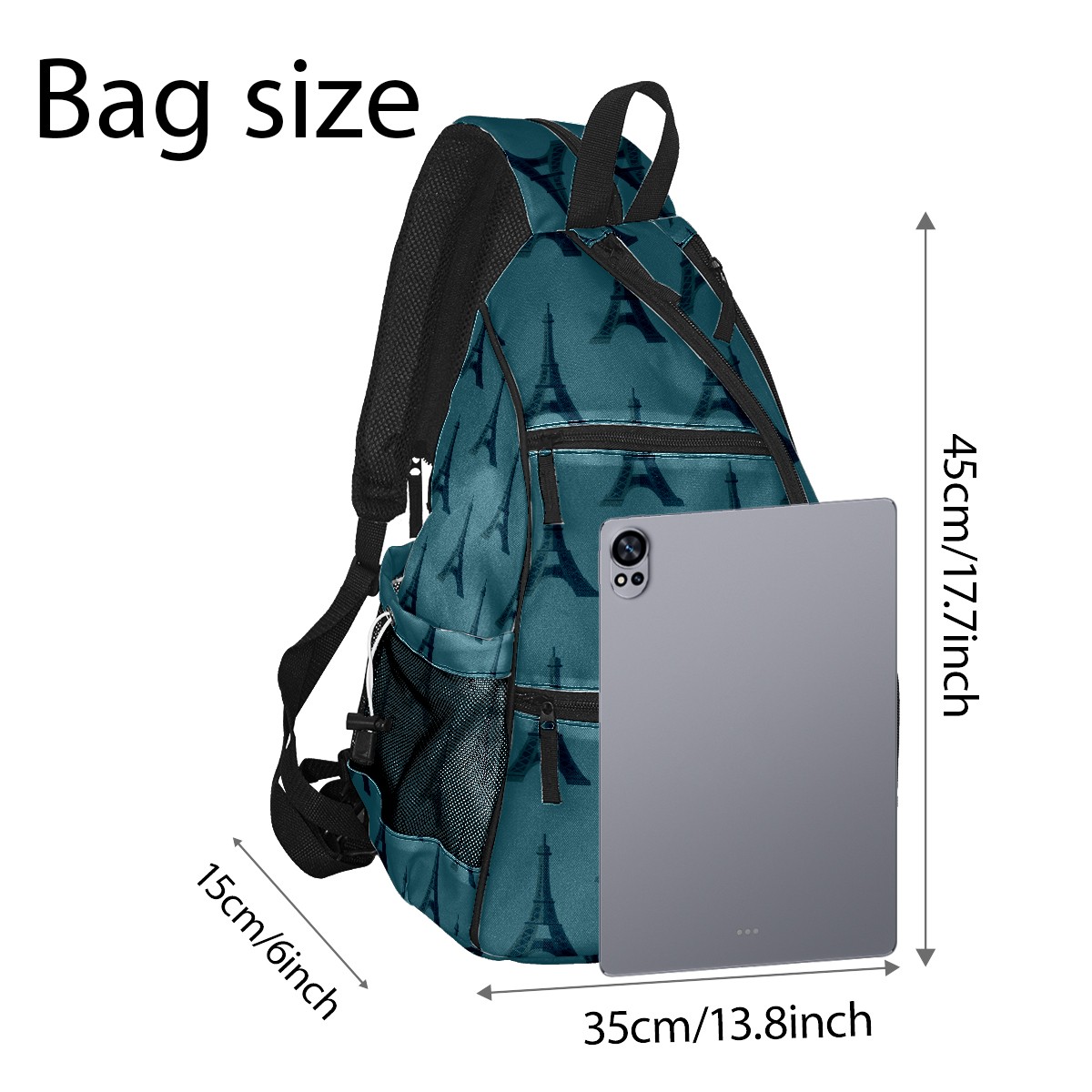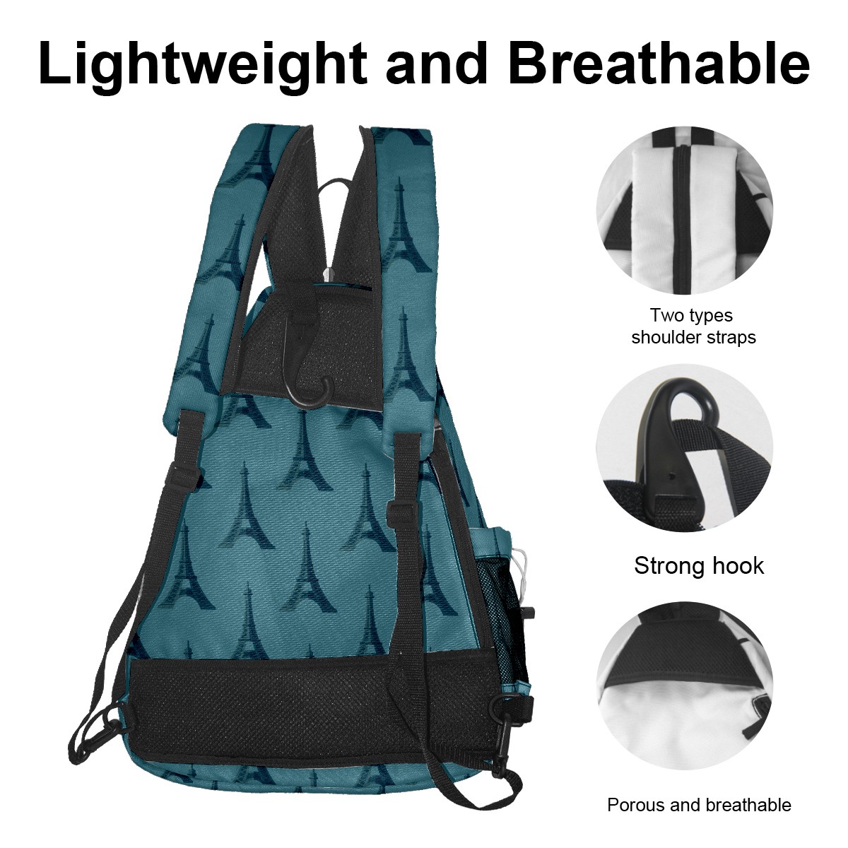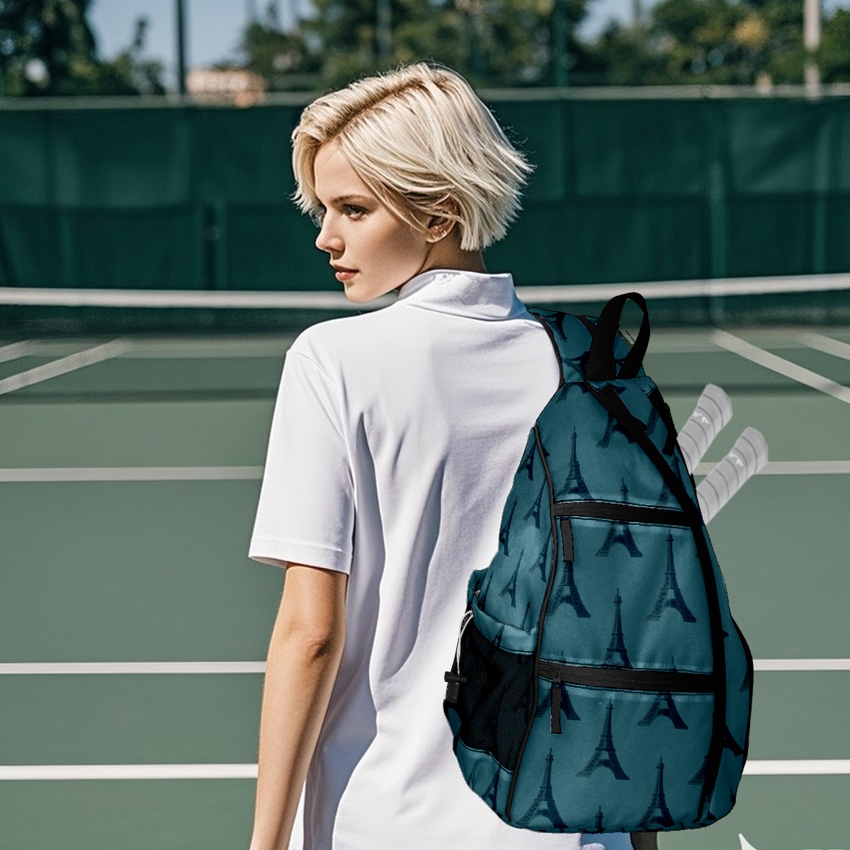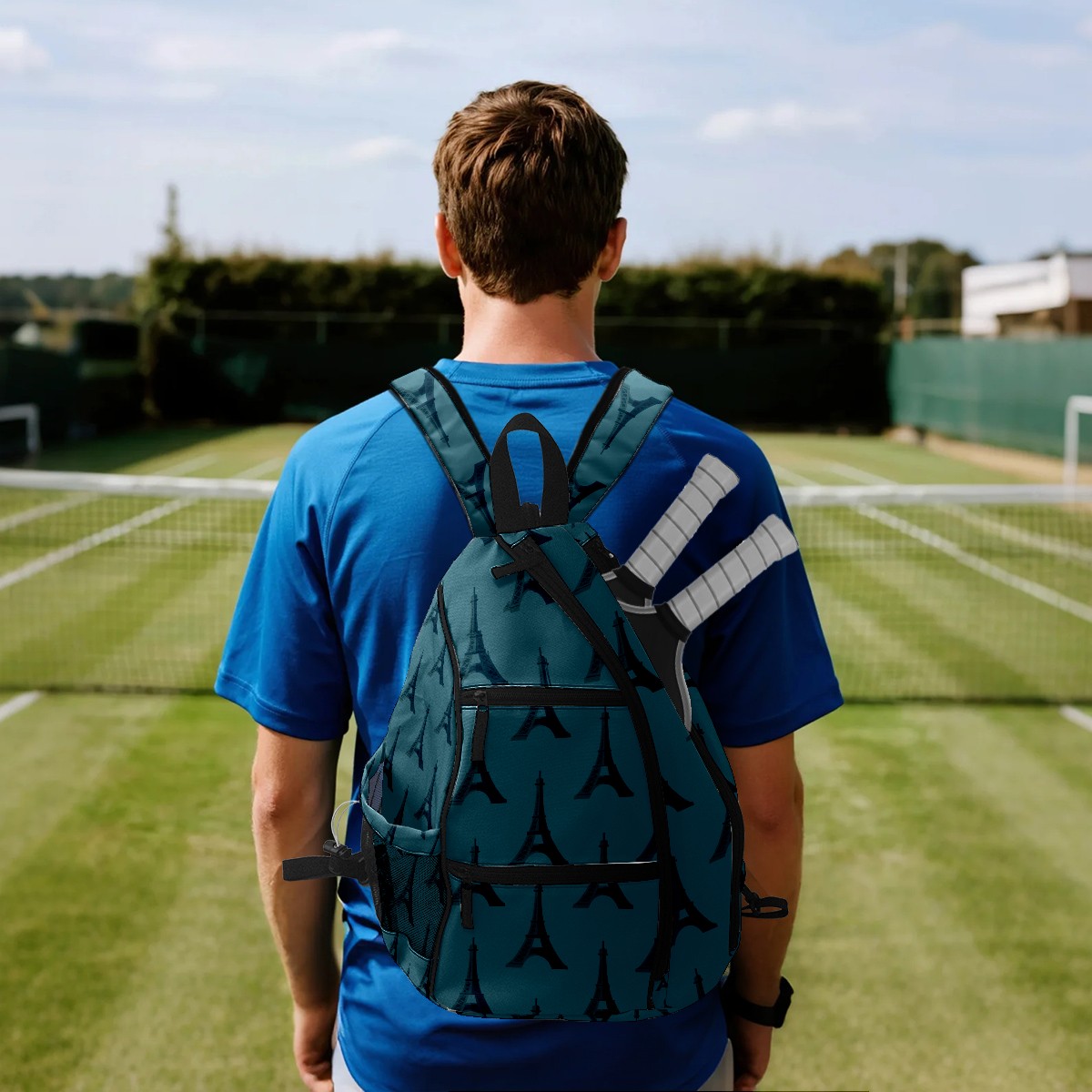 Multifunctional Pickleball Bag,Large Capacity Sports Pickleball Racket Bag, Water Bottle Holder and Fence Hook,Suitable for Both Men Women -Tower On Blue Background
