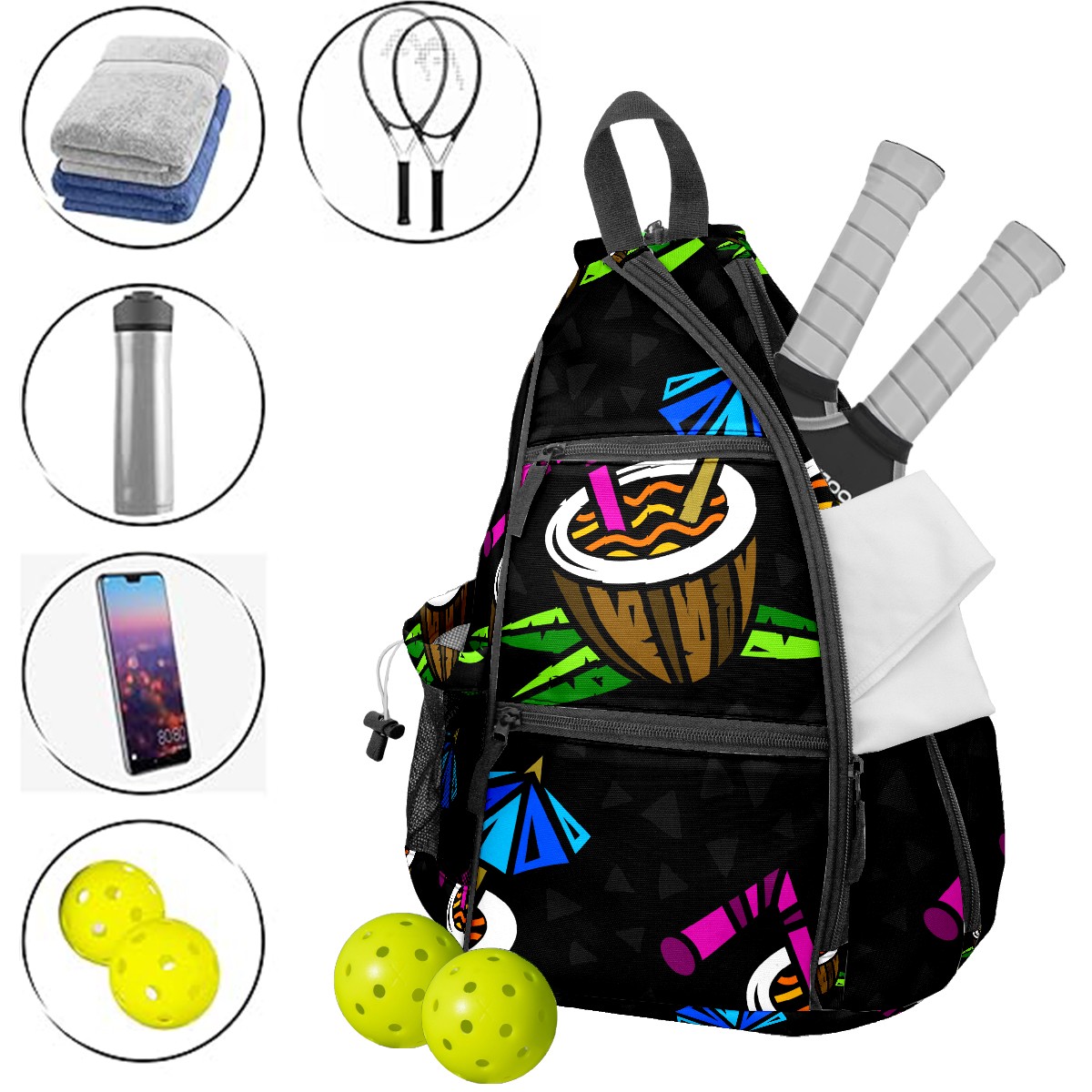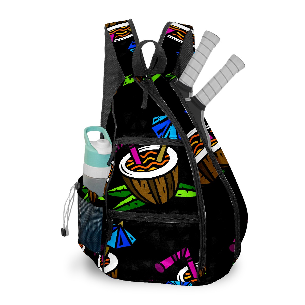 Multifunctional Pickleball Bag,Large Capacity Sports Pickleball Racket Bag, Water Bottle Holder and Fence Hook,Suitable for Both Men Women -Tropical Coconut