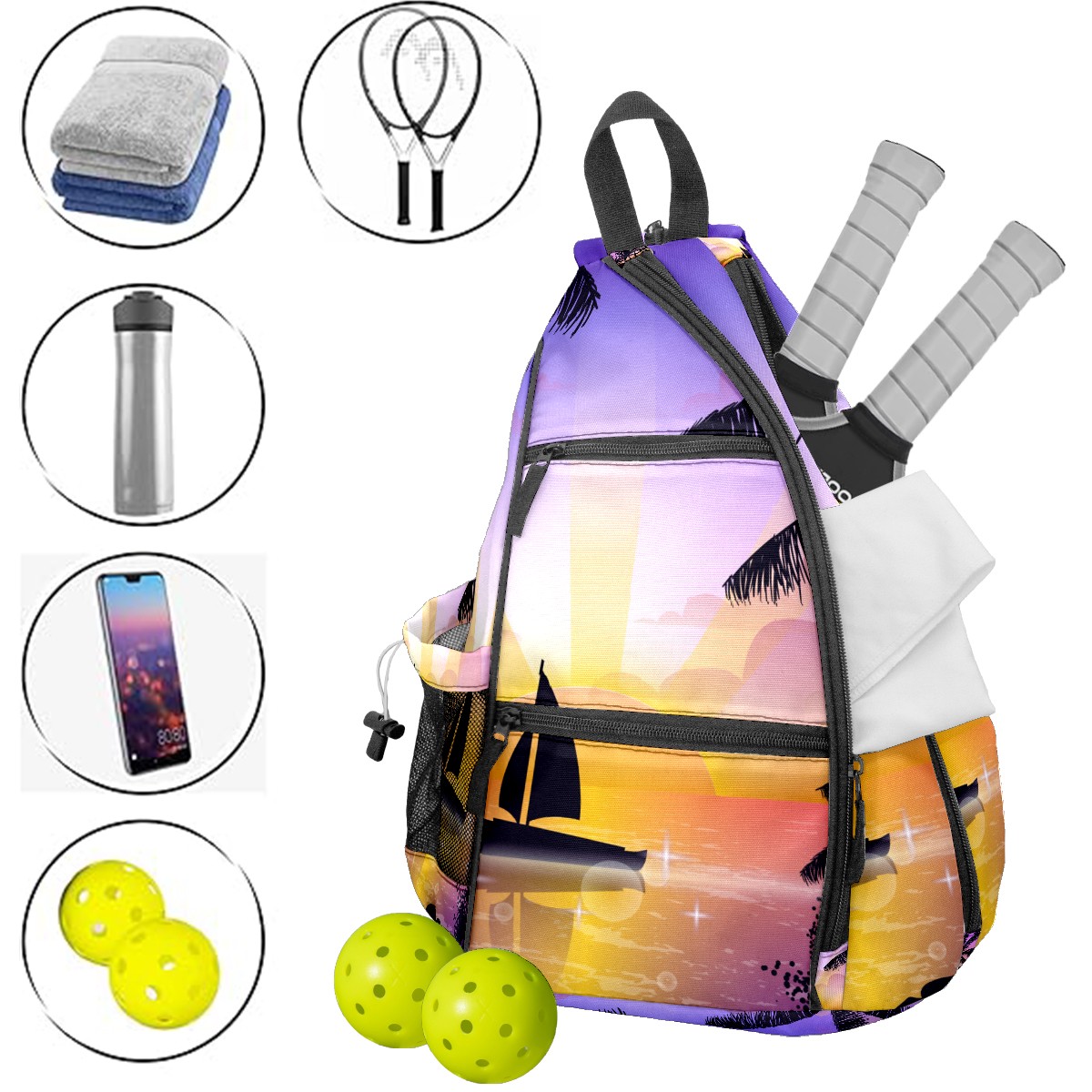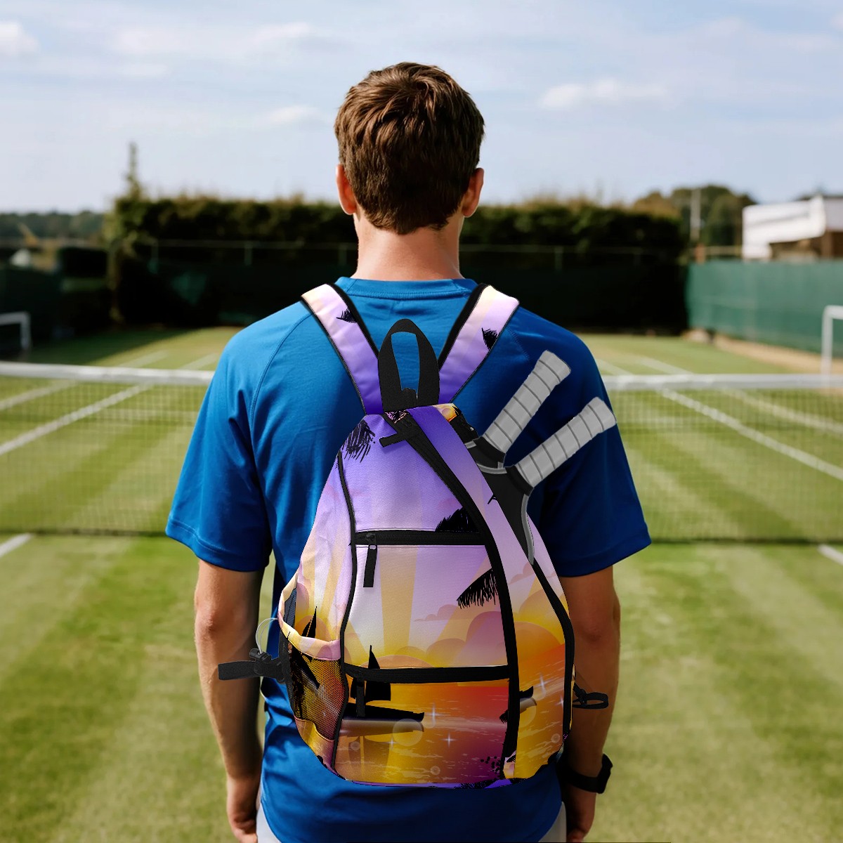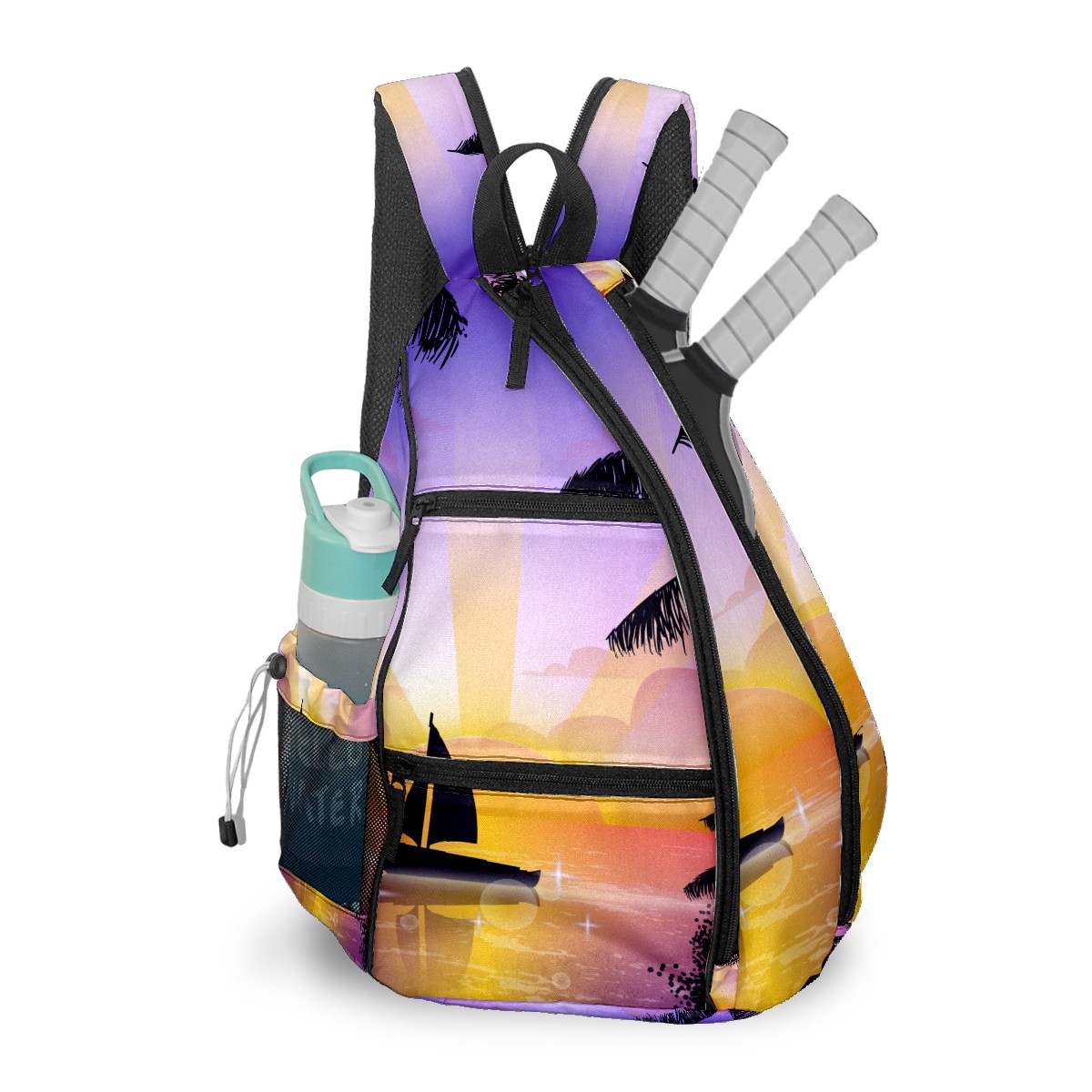 Multifunctional Pickleball Bag,Large Capacity Sports Pickleball Racket Bag, Water Bottle Holder and Fence Hook,Suitable for Both Men Women -Scene Of Tropical Playa