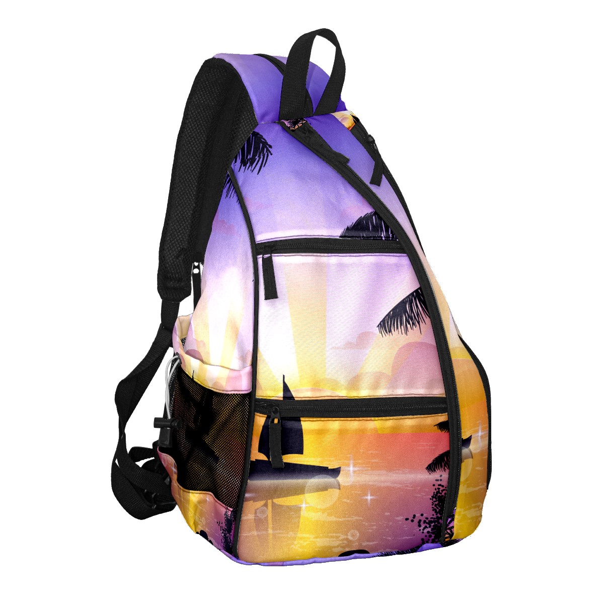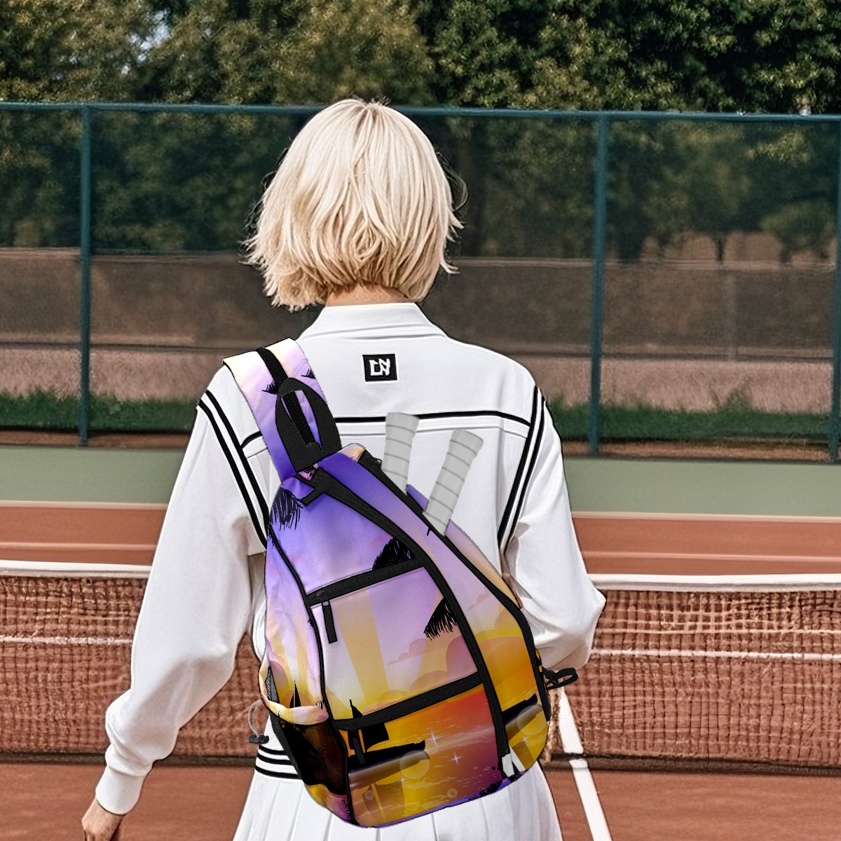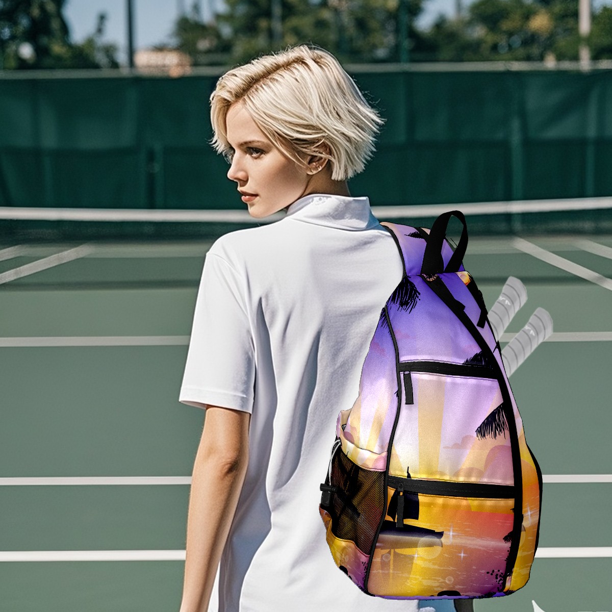 Multifunctional Pickleball Bag,Large Capacity Sports Pickleball Racket Bag, Water Bottle Holder and Fence Hook,Suitable for Both Men Women -Scene Of Tropical Playa