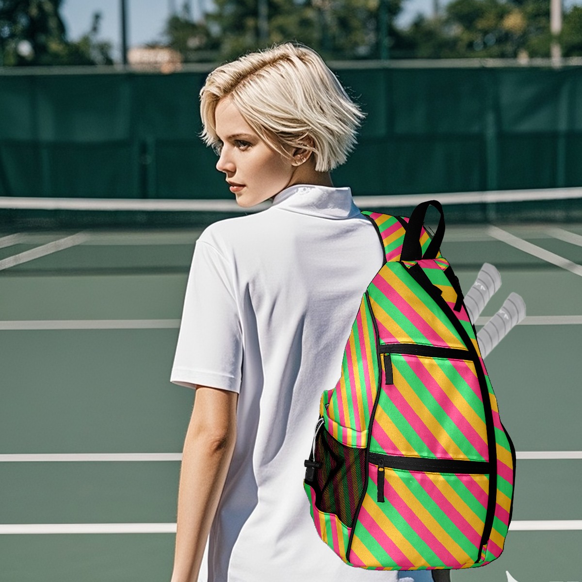 Multifunctional Pickleball Bag,Large Capacity Sports Pickleball Racket Bag, Water Bottle Holder and Fence Hook,Suitable for Both Men Women -Rainbow Stripes
