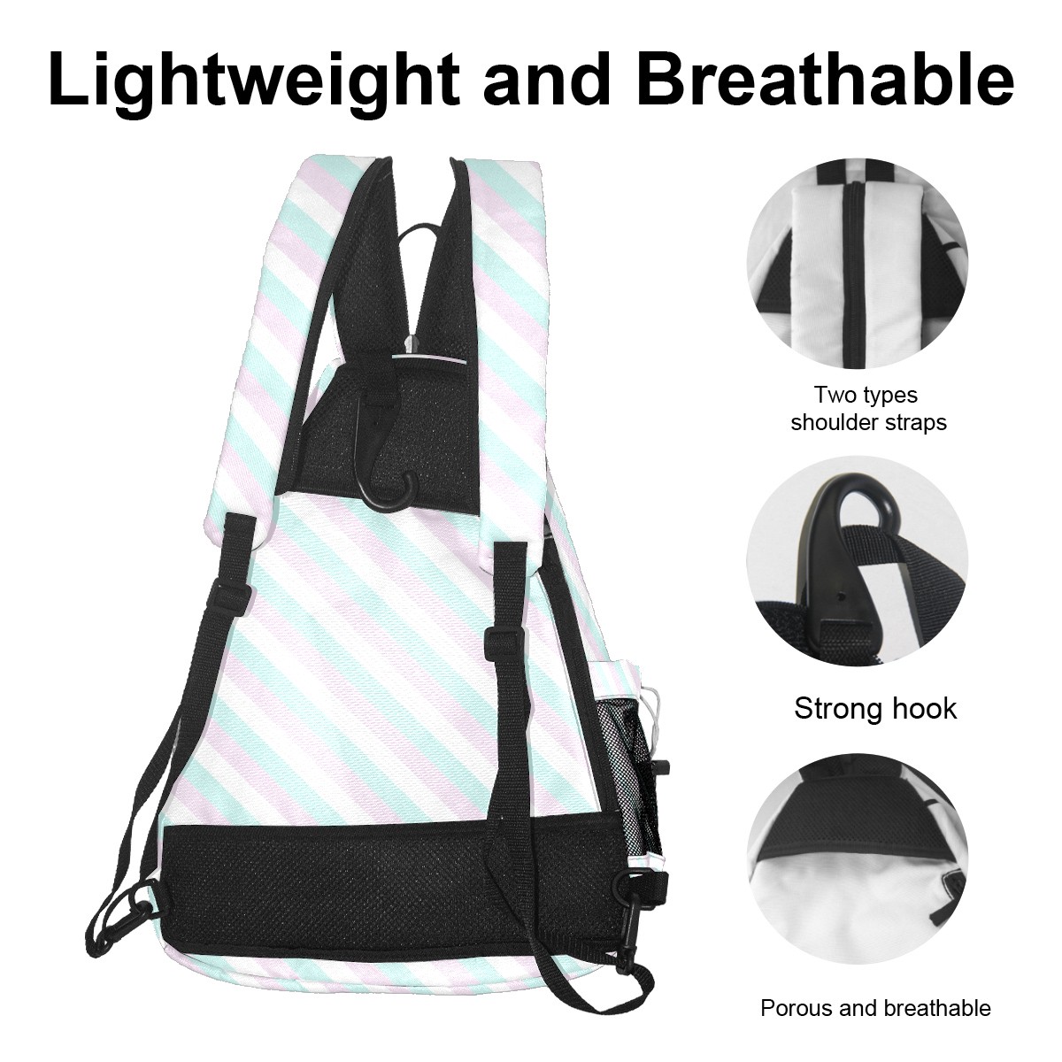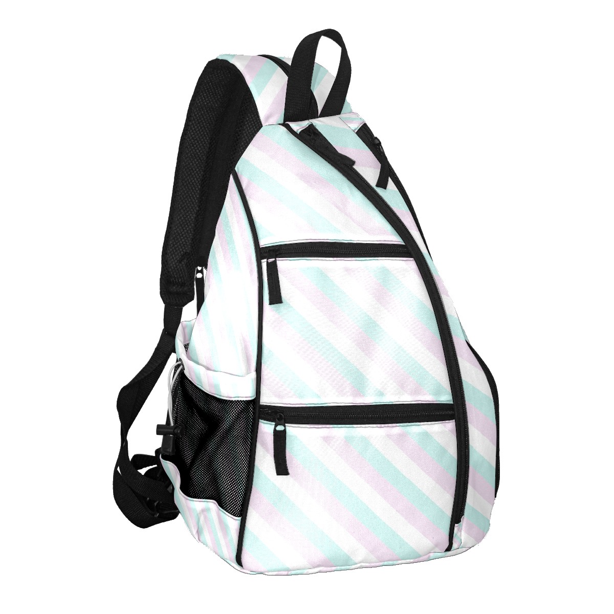 Multifunctional Pickleball Bag,Large Capacity Sports Pickleball Racket Bag, Water Bottle Holder and Fence Hook,Suitable for Both Men Women -Pink Blue Stripes