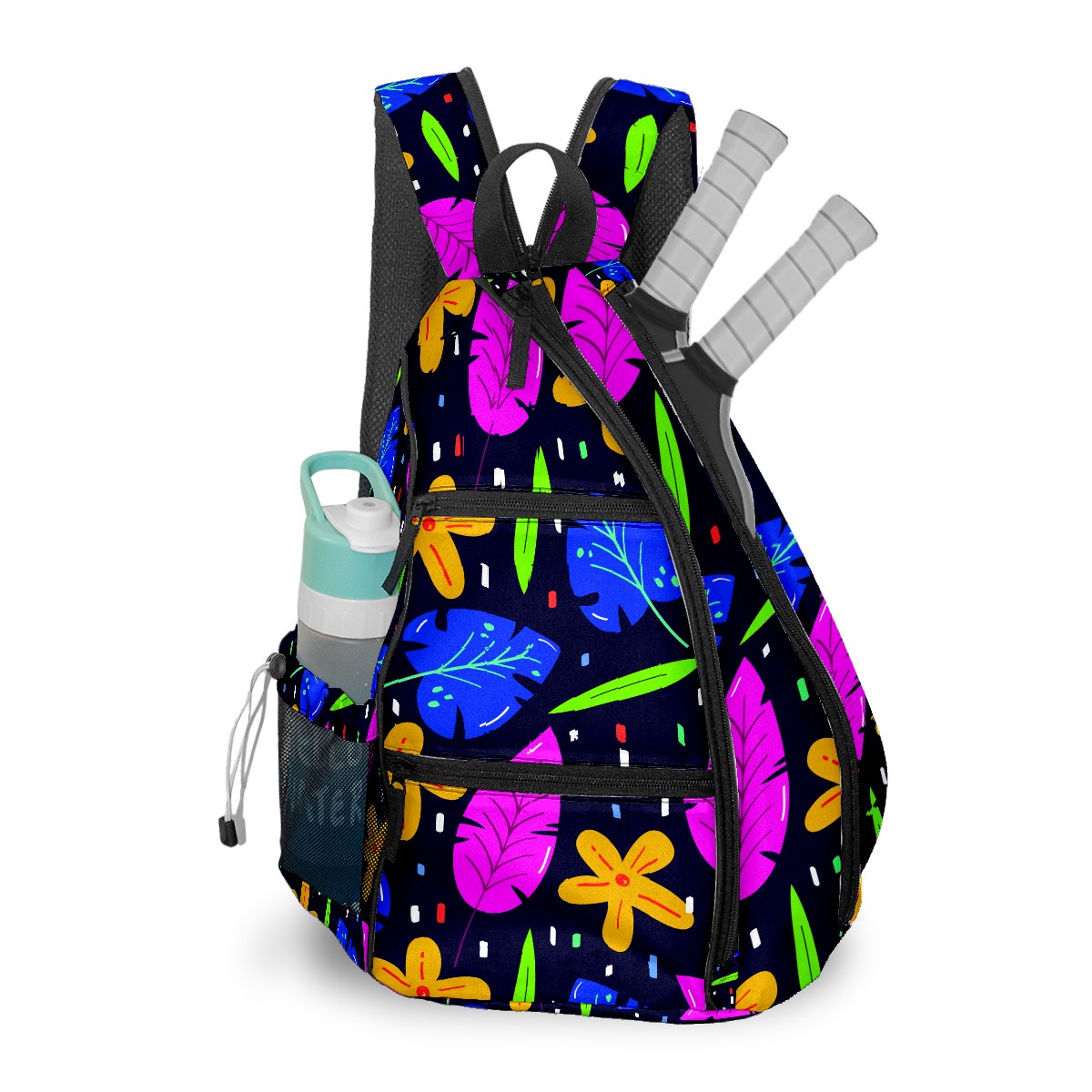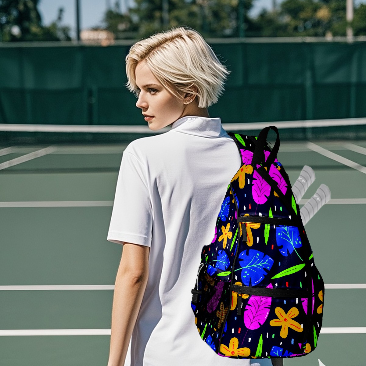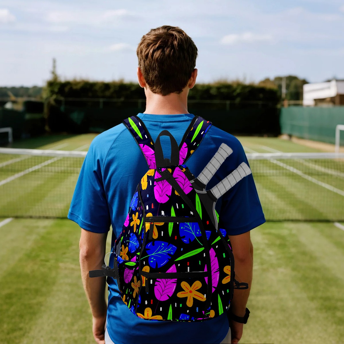Multifunctional Pickleball Bag,Large Capacity Sports Pickleball Racket Bag, Water Bottle Holder and Fence Hook,Suitable for Both Men Women -Floral Summer Pattern