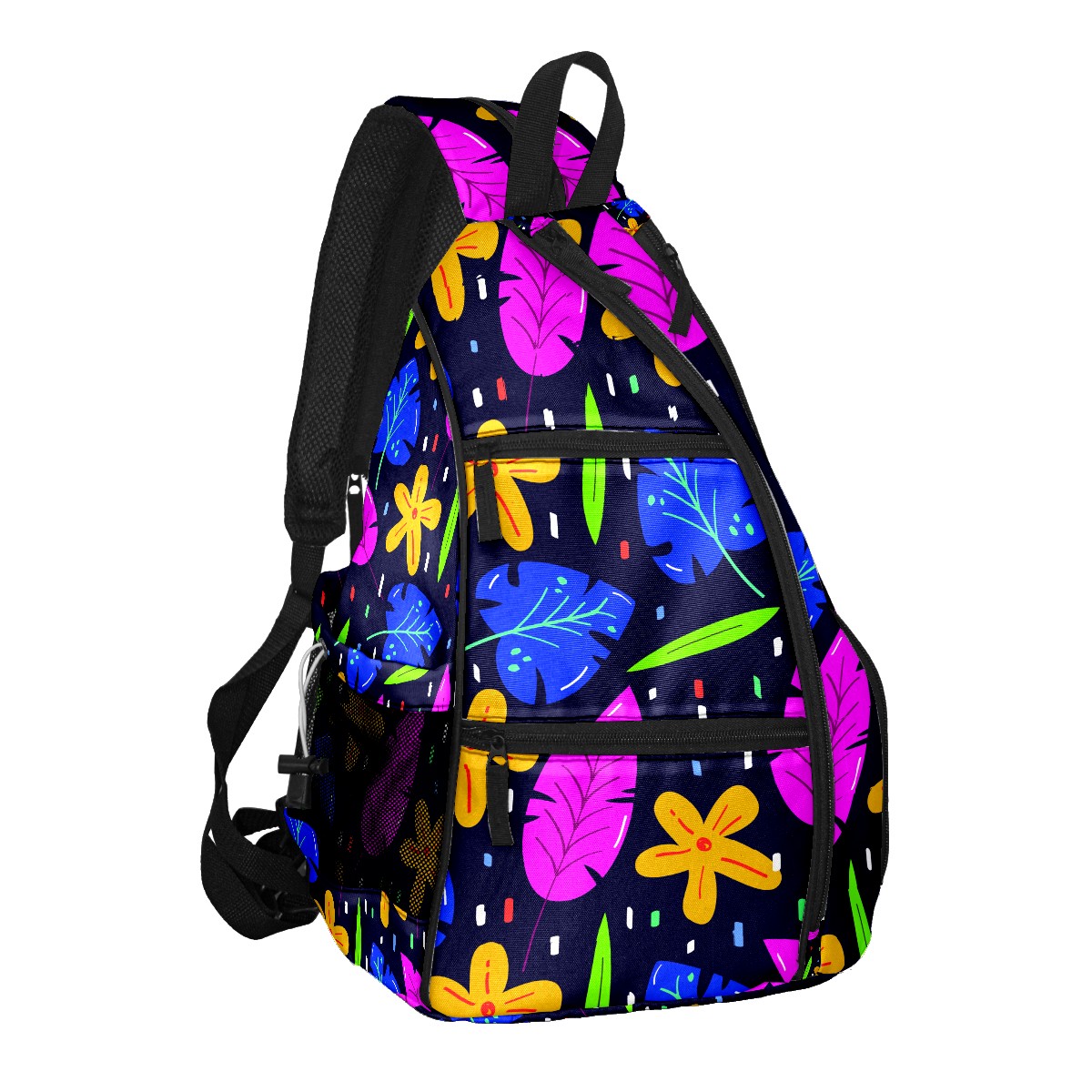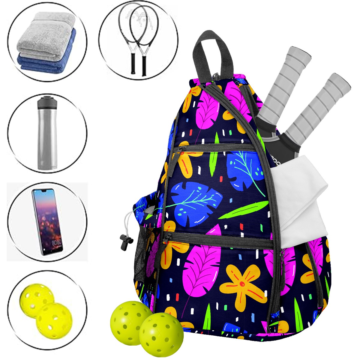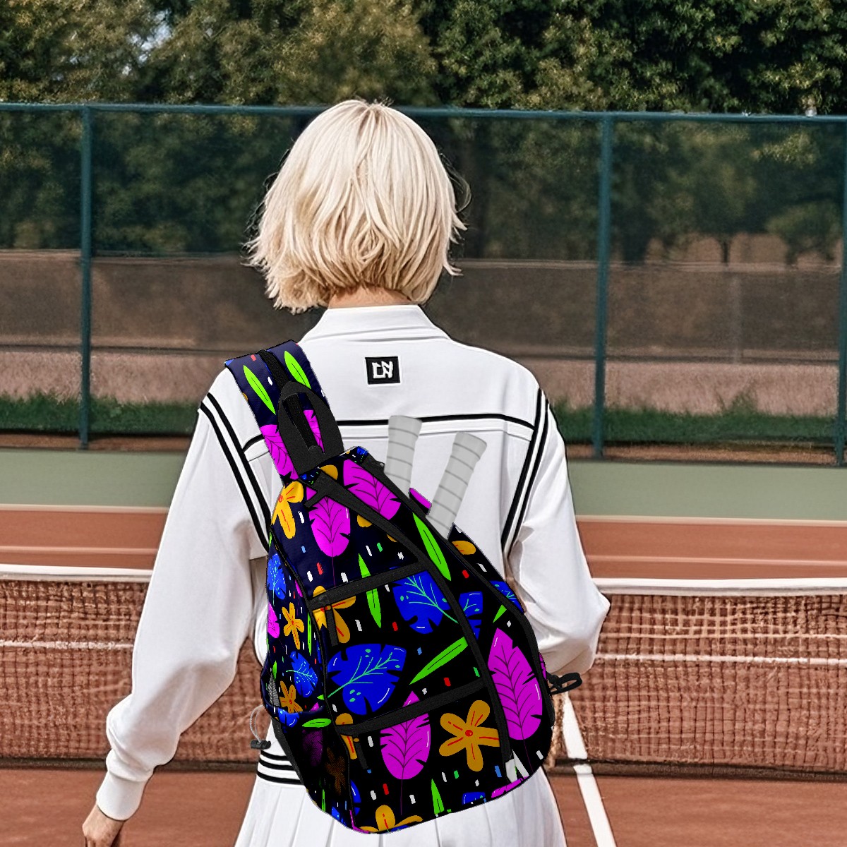 Multifunctional Pickleball Bag,Large Capacity Sports Pickleball Racket Bag, Water Bottle Holder and Fence Hook,Suitable for Both Men Women -Floral Summer Pattern