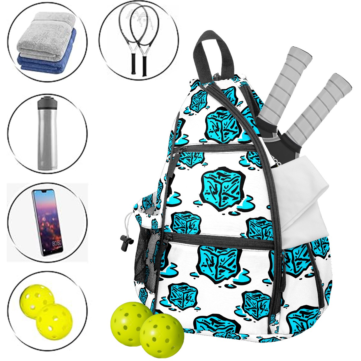 Multifunctional Pickleball Bag,Large Capacity Sports Pickleball Racket Bag, Water Bottle Holder and Fence Hook,Suitable for Both Men Women -Frozen Ice Cubes