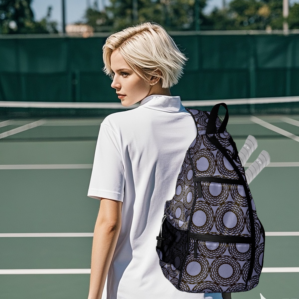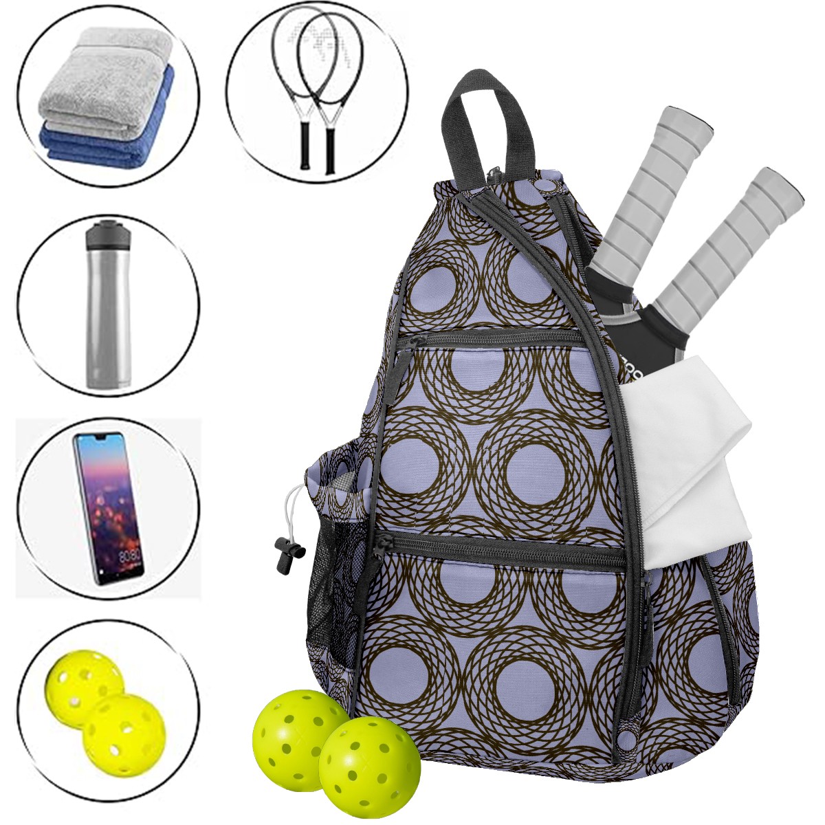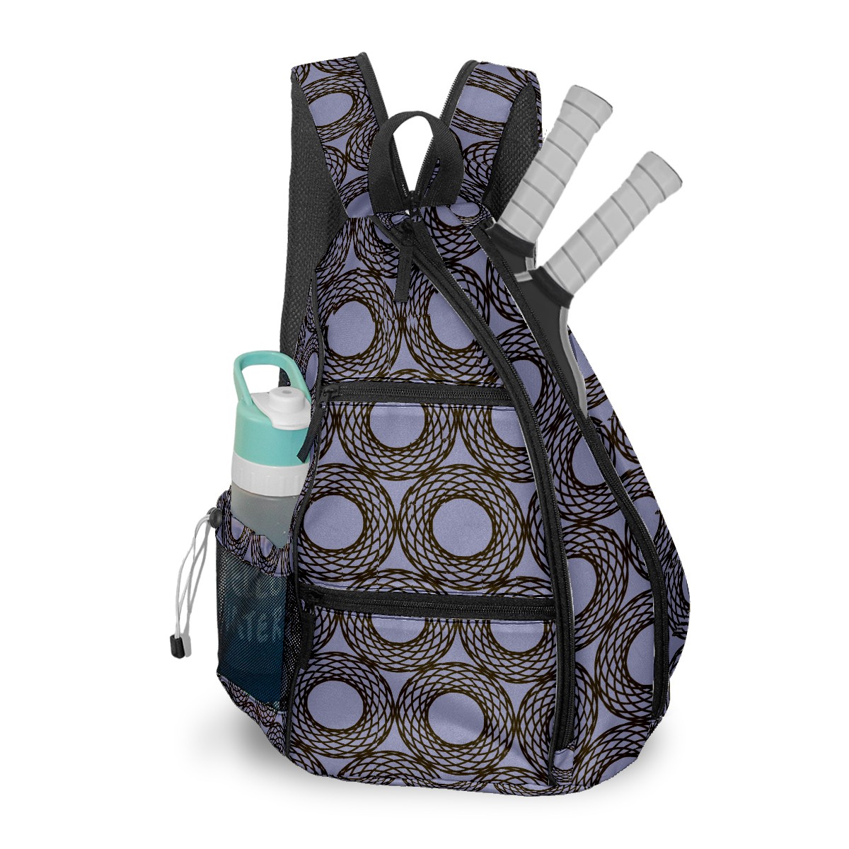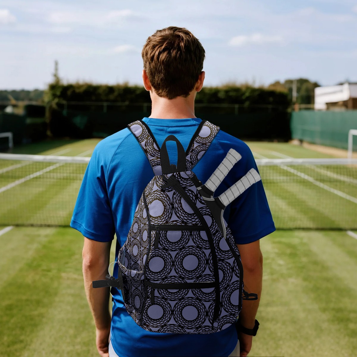 Multifunctional Pickleball Bag,Large Capacity Sports Pickleball Racket Bag, Water Bottle Holder and Fence Hook,Suitable for Both Men Women -Circle On Purple Background