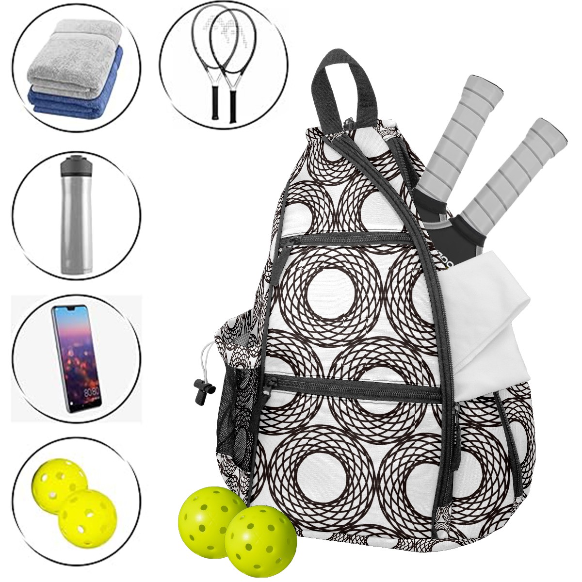Multifunctional Pickleball Bag,Large Capacity Sports Pickleball Racket Bag, Water Bottle Holder and Fence Hook,Suitable for Both Men Women -Circle