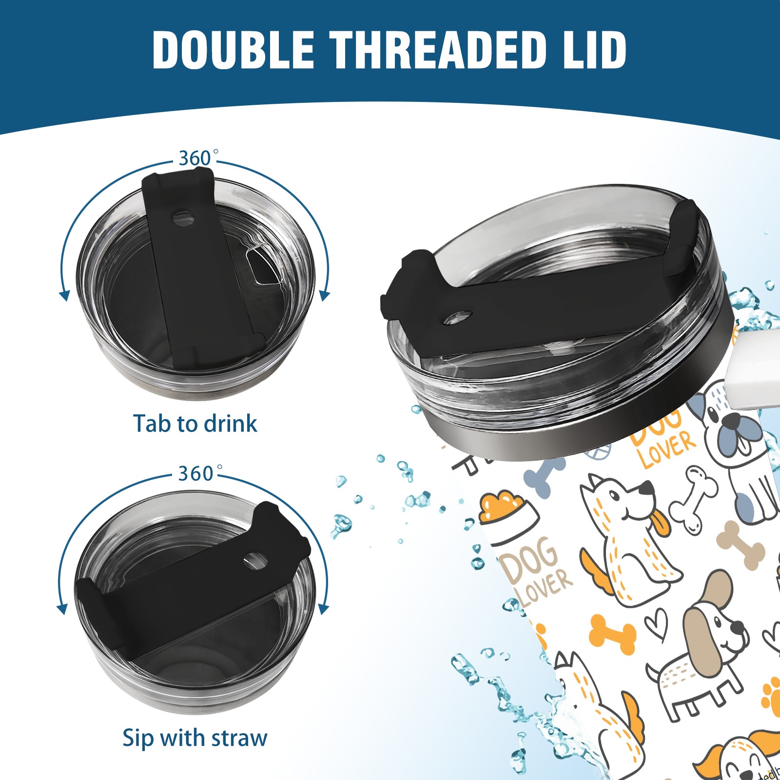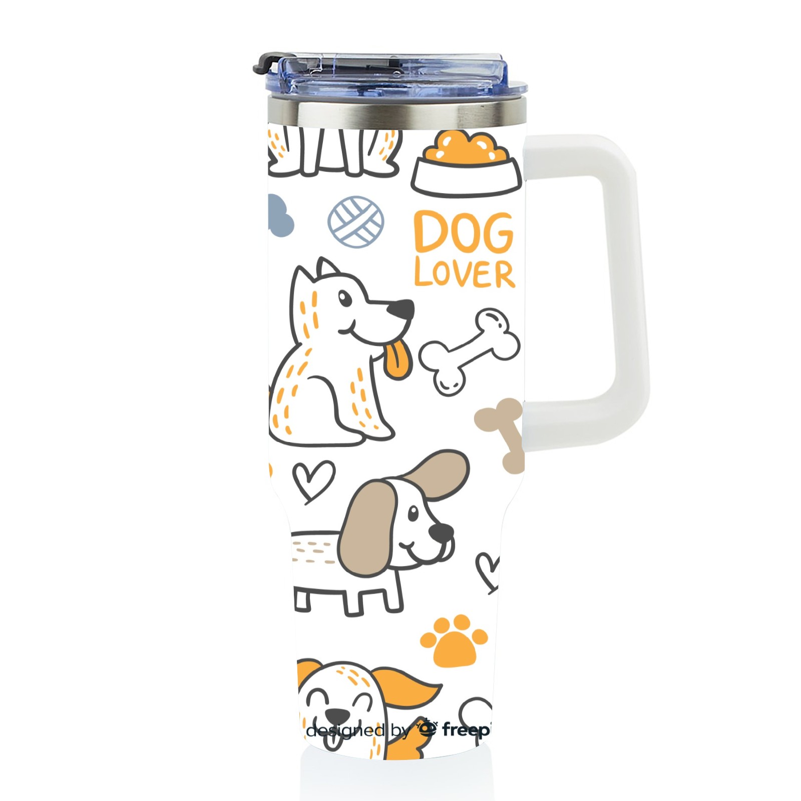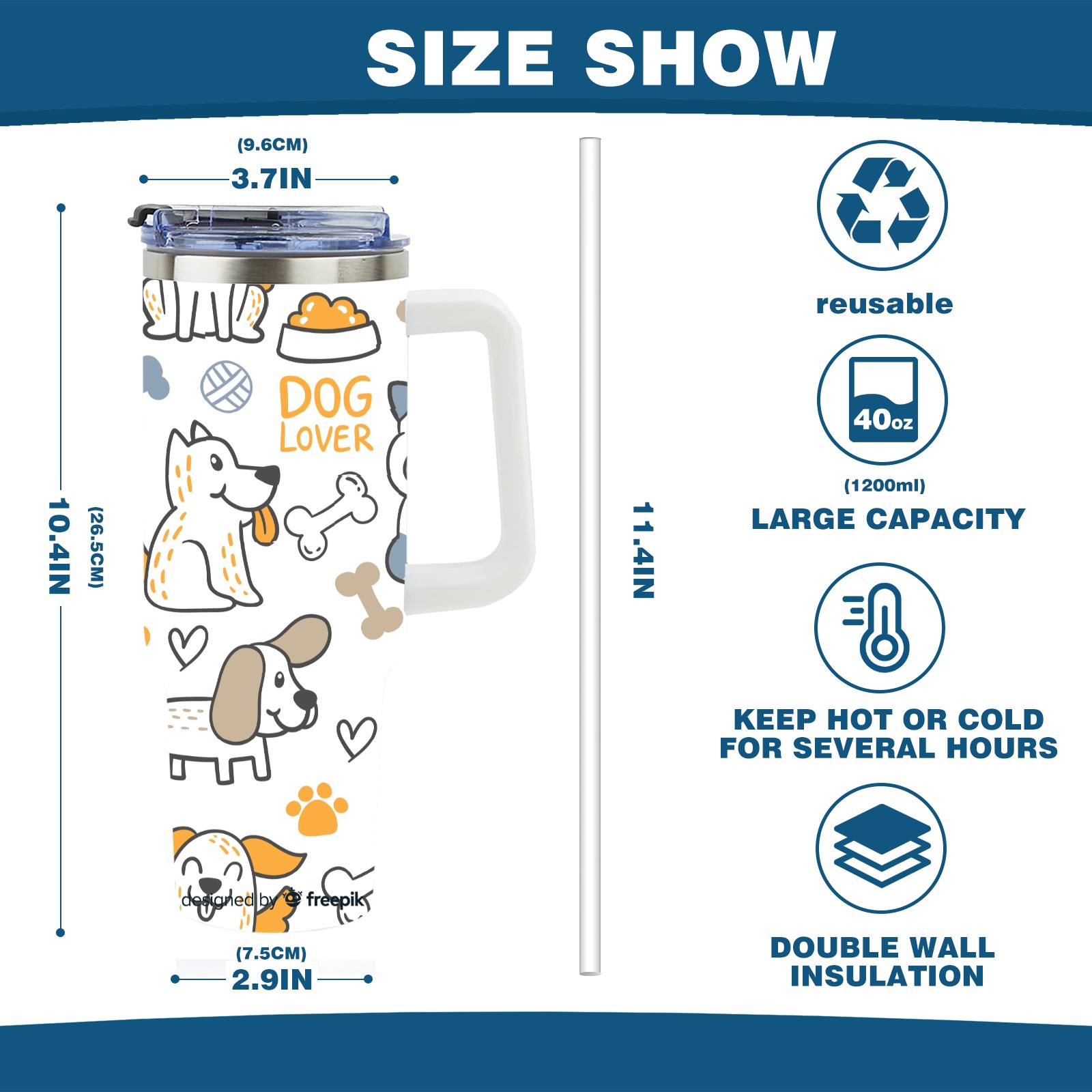 40oz Dogs Print thermos with lid and straw, leak-proof stainless steel, with handle, spill-proof bottle, convenient for travel(blue)