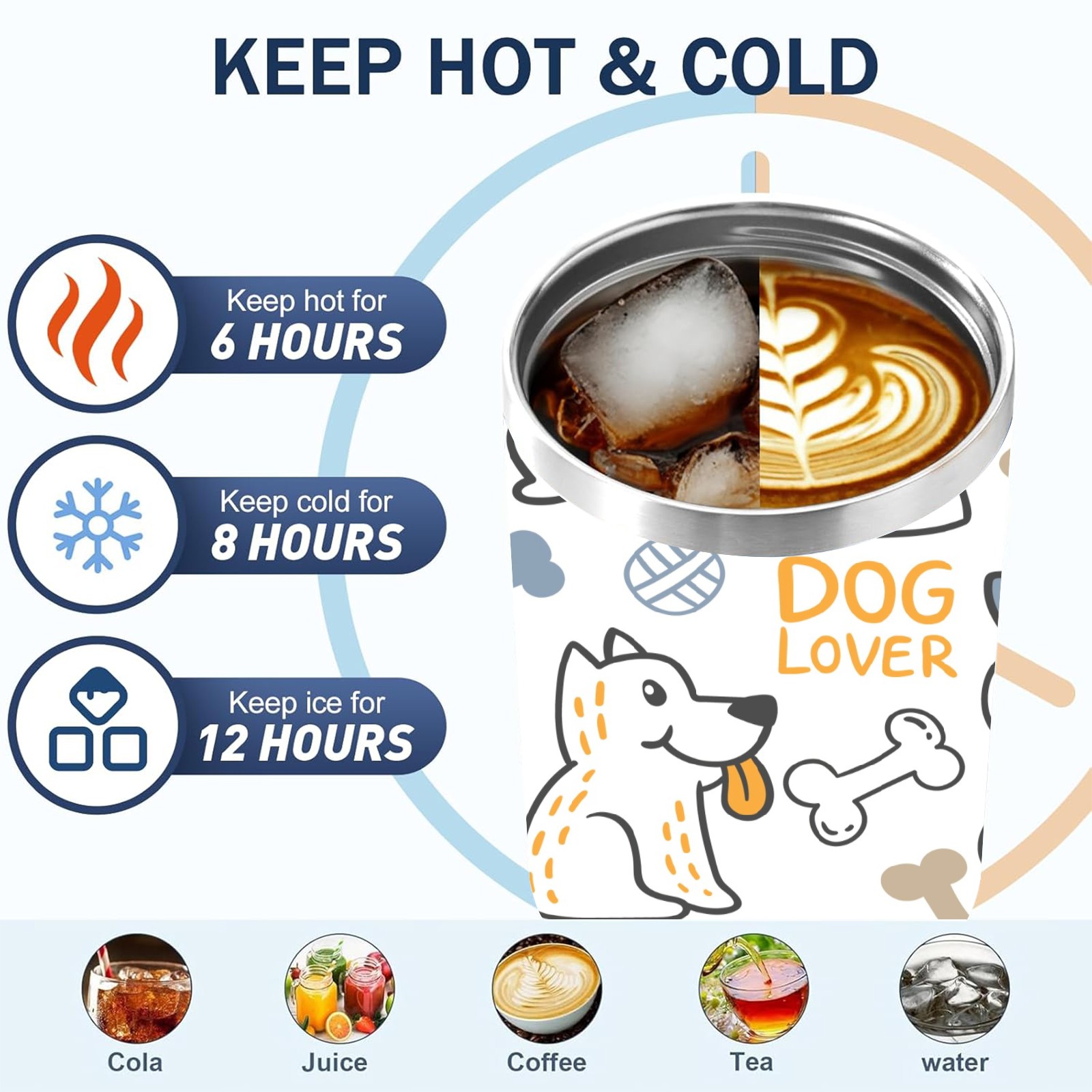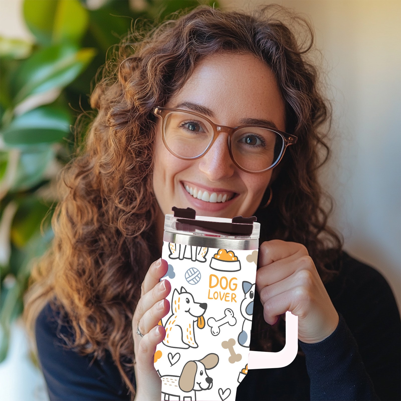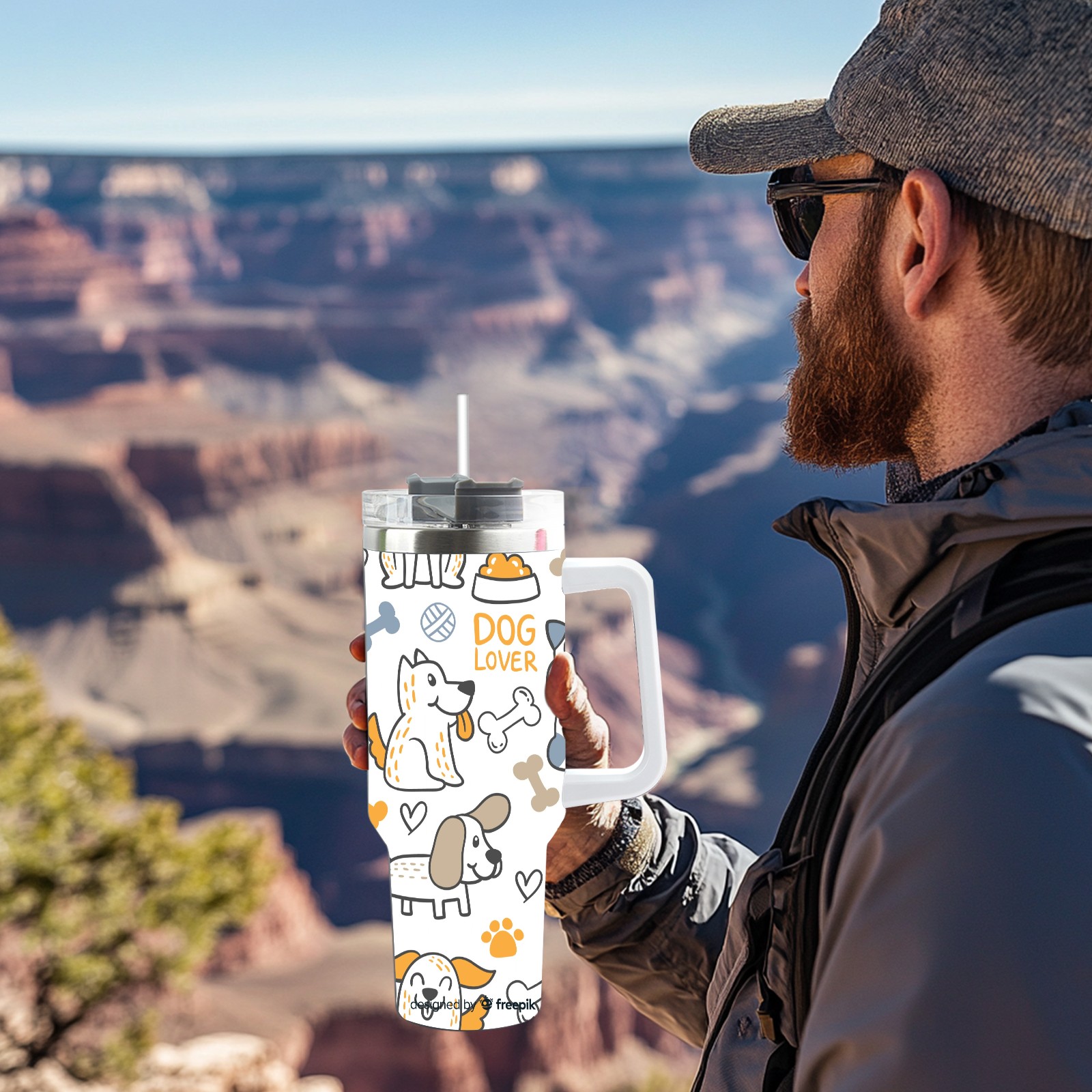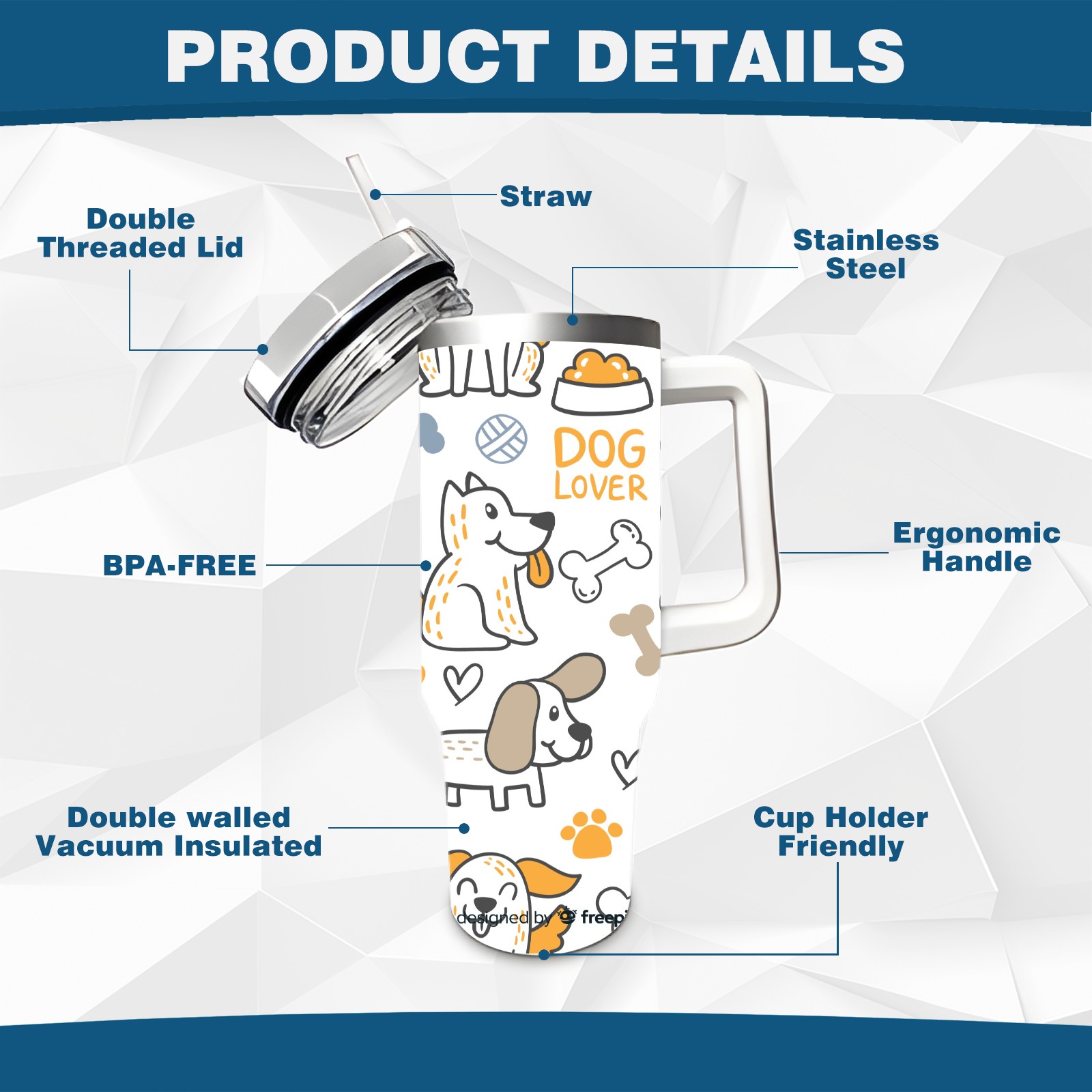 40oz Dogs Print thermos with lid and straw, leak-proof stainless steel, with handle, spill-proof bottle, convenient for travel(blue)