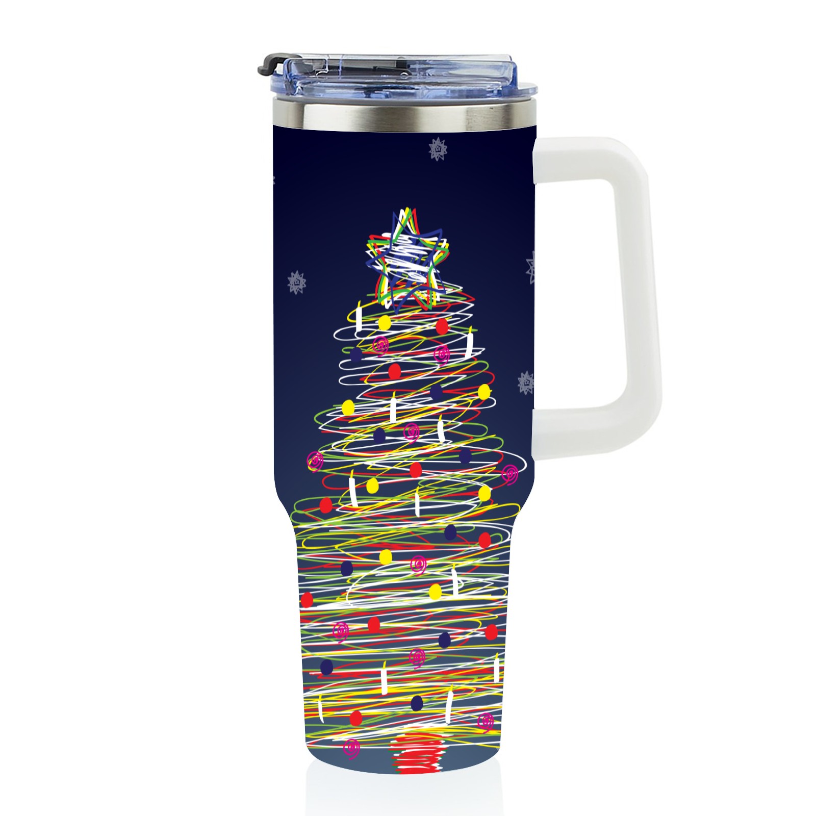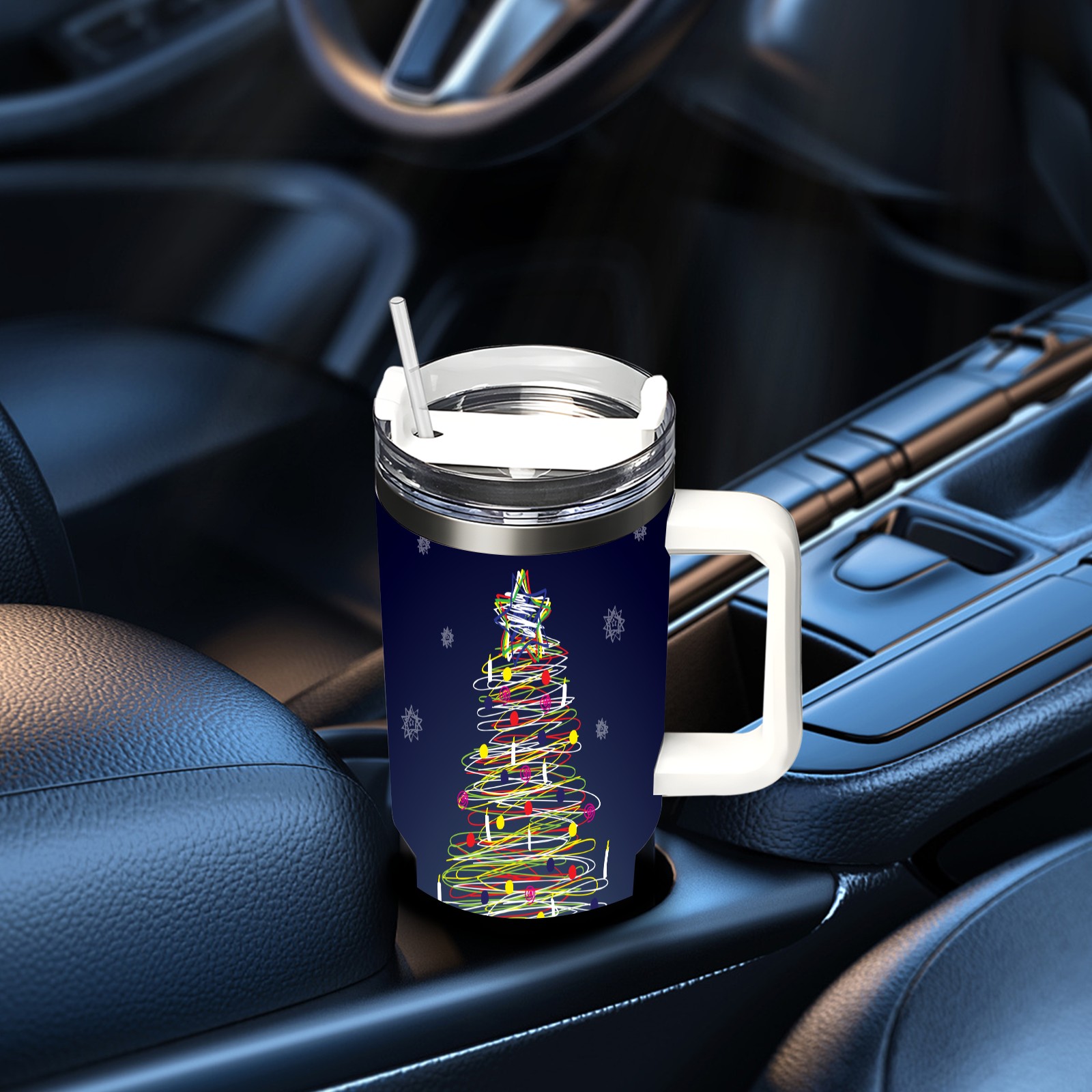 40oz Abstract Christmas Tree thermos with lid and straw, leak-proof stainless steel, with handle, spill-proof bottle, convenient for travel(blue)