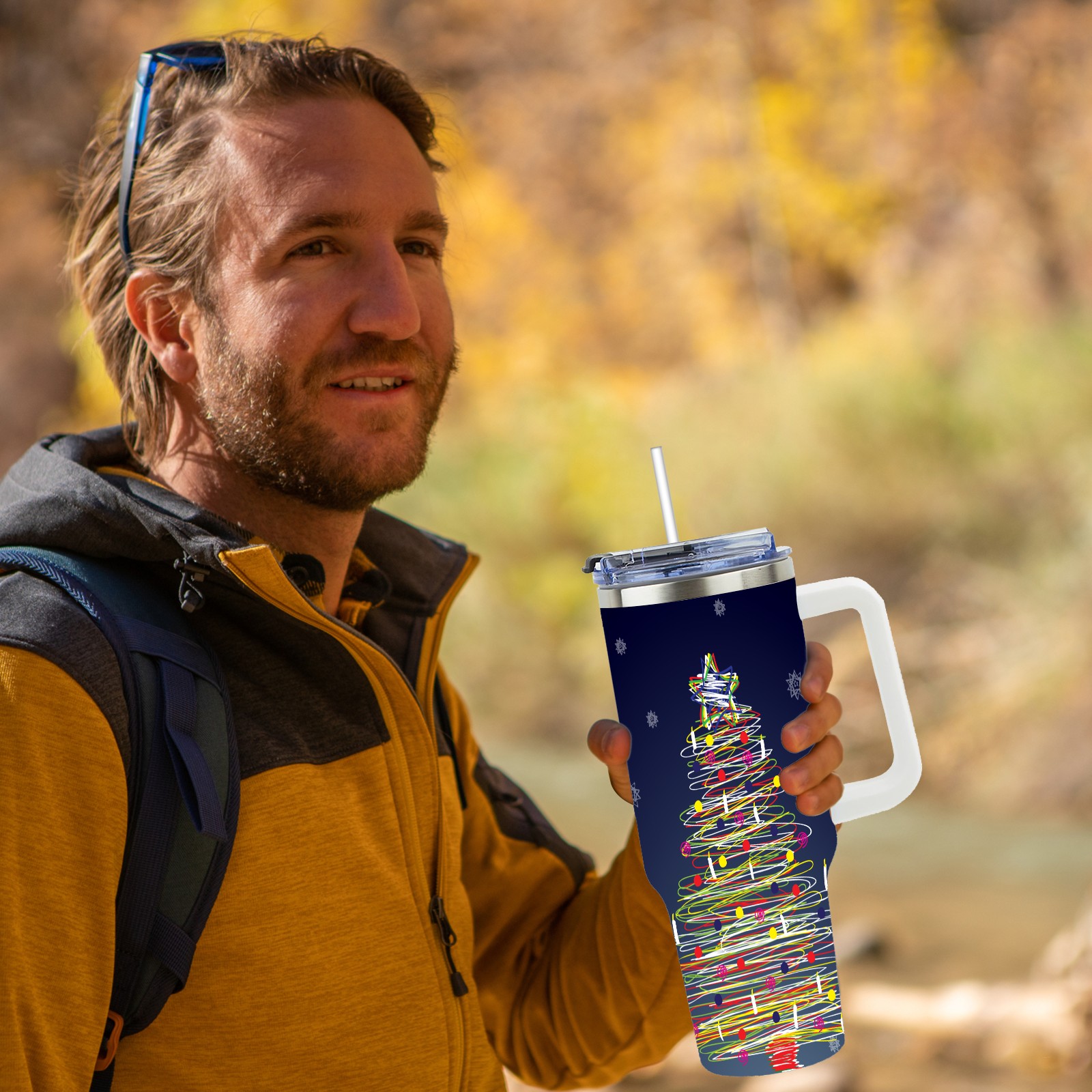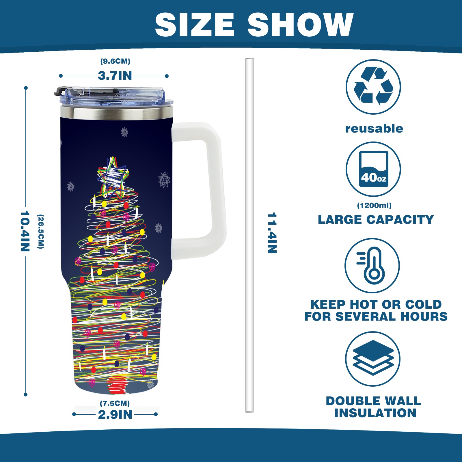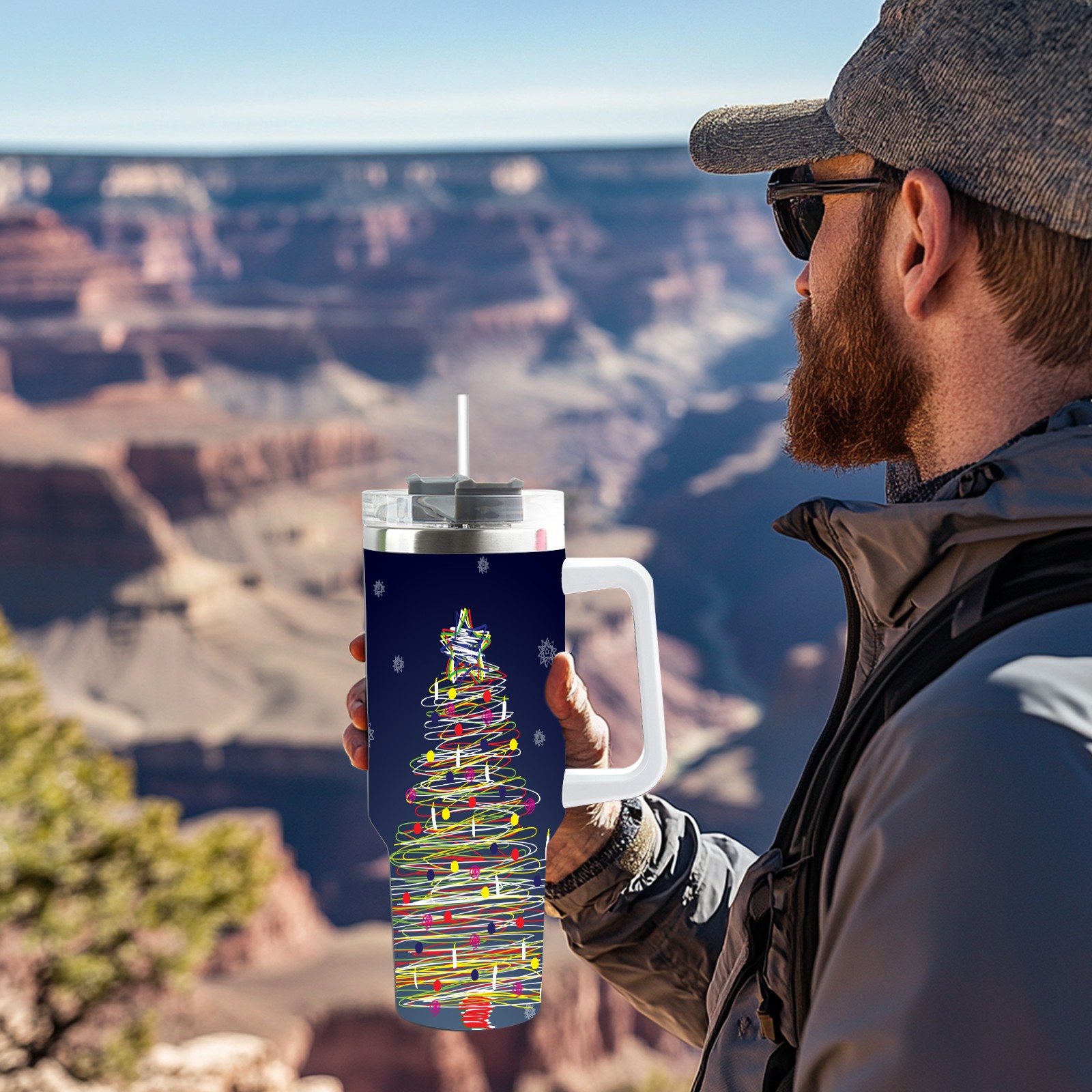 • <p>This multi-functional insulated water bottle features a simple and practical design, suitable for various daily scenarios. The ergonomic handle allows for easy one-handed drinking, and the detachable handle can be adjusted or removed as needed, making it convenient for commuting, exercising, or carrying to meetings. Made of high-quality stainless steel, it is BPA-free and features double-walled vacuum insulation technology that keeps drinks cold for 8 hours and hot for 6 hours, ensuring you can enjoy your beverage at the perfect temperature anytime, anywhere. The 40-ounce Christmas edition comes with a sliding lid, silicone straw, and a non-slip design. Accessories are dishwasher safe, and the narrow bottom and wide mouth design perfectly fits car cup holders. The exclusive flip-top straw lid is environmentally friendly and durable, with a one-touch leak-proof closure and two drinking modes: sip and gulp. A dust cover provides effective protection. This bottle is suitable for travel, office work, sports, camping, and other occasions, making it a thoughtful gift for friends and family.</p>