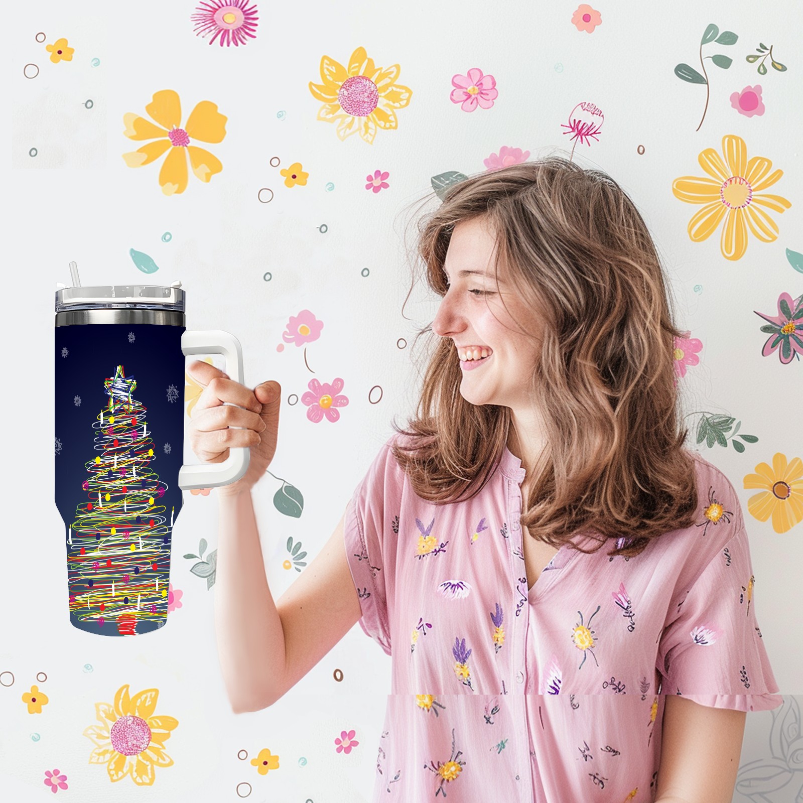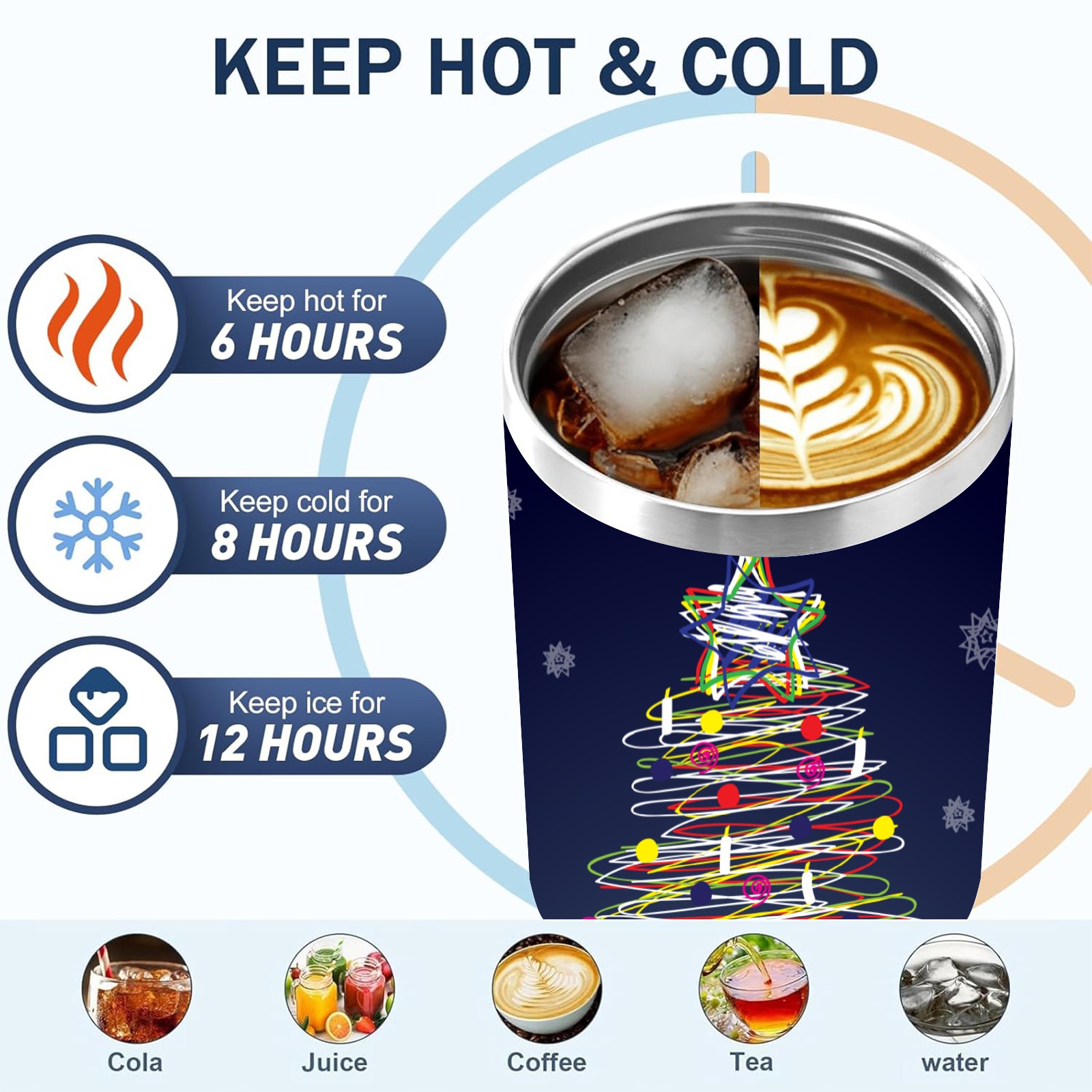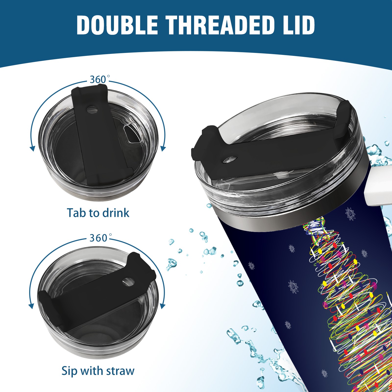 • <p>This multi-functional insulated water bottle features a simple and practical design, suitable for various daily scenarios. The ergonomic handle allows for easy one-handed drinking, and the detachable handle can be adjusted or removed as needed, making it convenient for commuting, exercising, or carrying to meetings. Made of high-quality stainless steel, it is BPA-free and features double-walled vacuum insulation technology that keeps drinks cold for 8 hours and hot for 6 hours, ensuring you can enjoy your beverage at the perfect temperature anytime, anywhere. The 40-ounce Christmas edition comes with a sliding lid, silicone straw, and a non-slip design. Accessories are dishwasher safe, and the narrow bottom and wide mouth design perfectly fits car cup holders. The exclusive flip-top straw lid is environmentally friendly and durable, with a one-touch leak-proof closure and two drinking modes: sip and gulp. A dust cover provides effective protection. This bottle is suitable for travel, office work, sports, camping, and other occasions, making it a thoughtful gift for friends and family.</p>