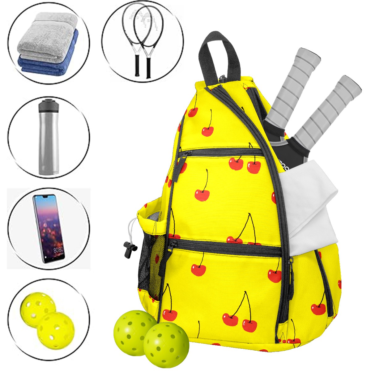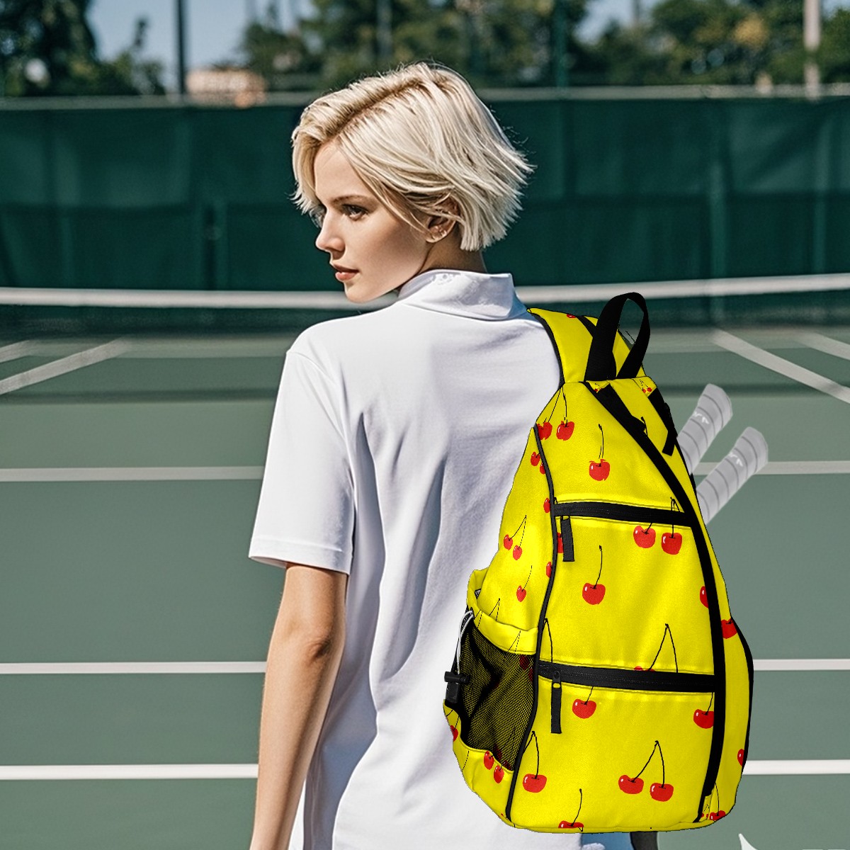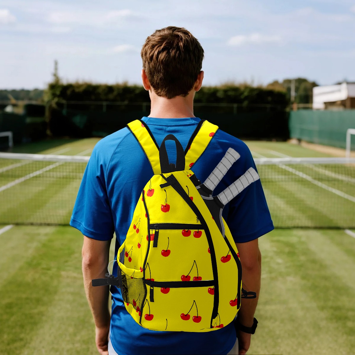 Multifunctional Pickleball Bag,Large Capacity Sports Pickleball Racket Bag, Water Bottle Holder and Fence Hook,Suitable for Both Men Women -Cherry On Yellow Background