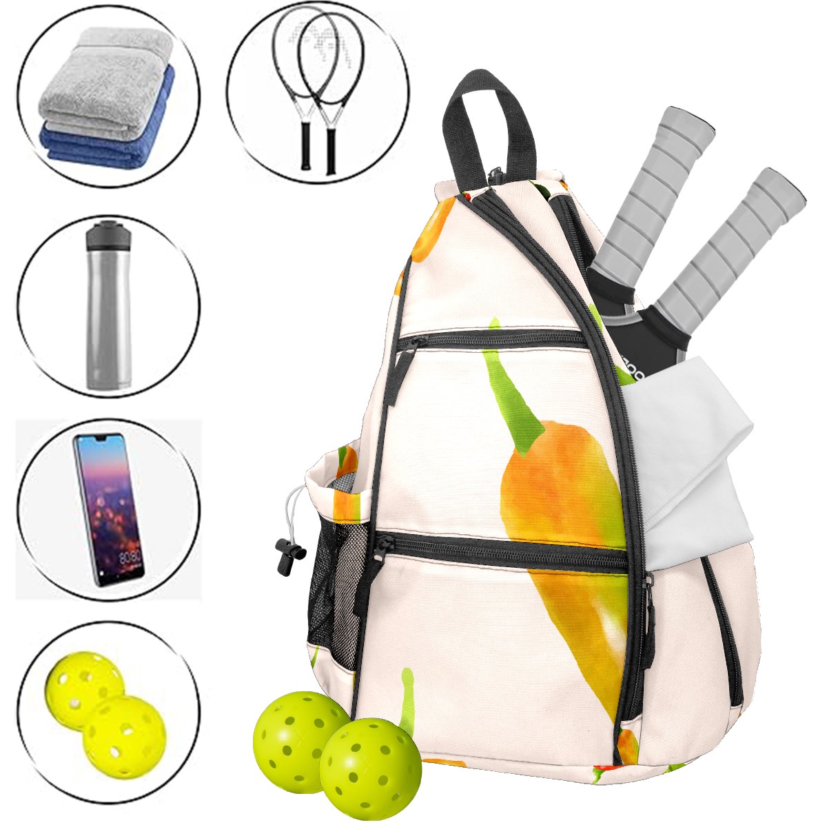 Multifunctional Pickleball Bag,Large Capacity Sports Pickleball Racket Bag, Water Bottle Holder and Fence Hook,Suitable for Both Men Women -Chili