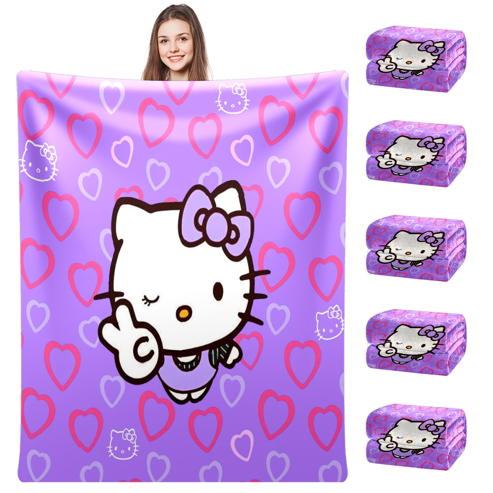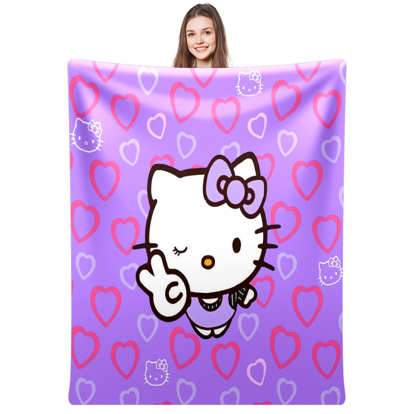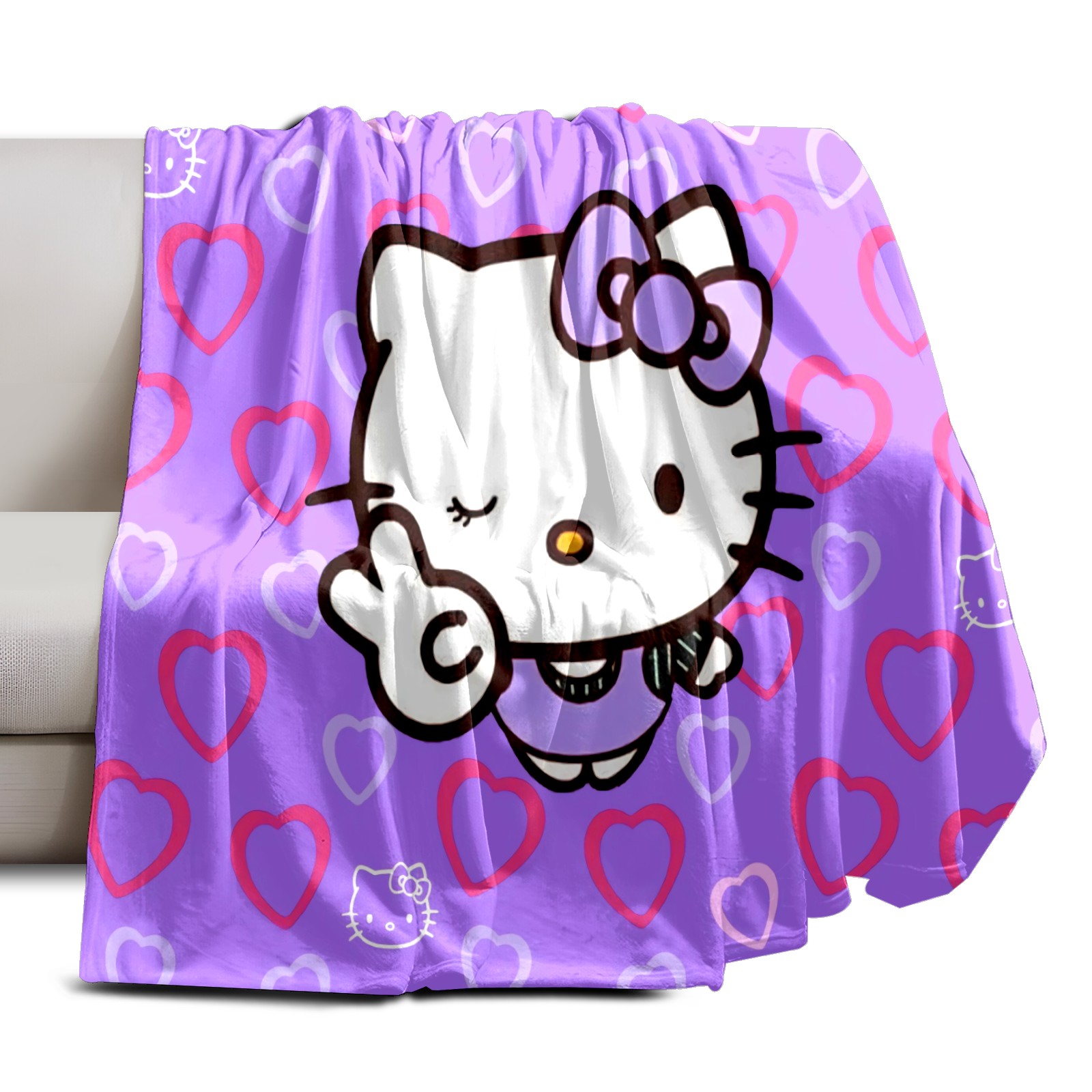 Flannel Blanket, Ultra-Soft Comfortable Home Decor Rug, The Perfect Comfort Gift for Both Men Women, Suitable for Beds, Sofas, Loungewear, and Travel 30x39in(Hello Kitty Cat Angle Heart)