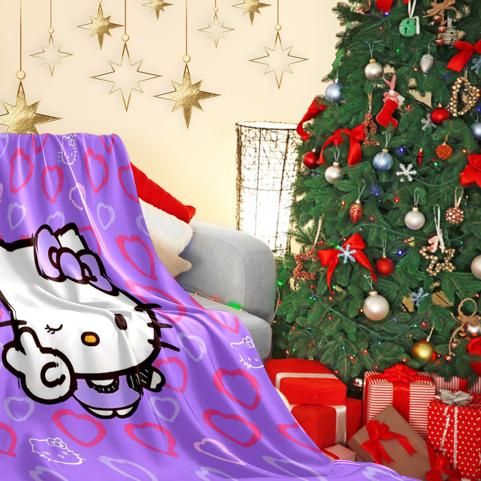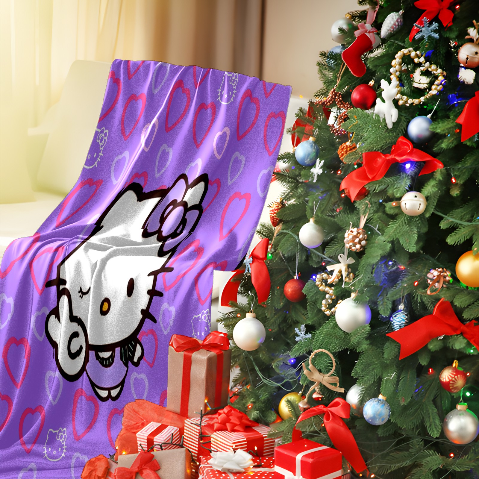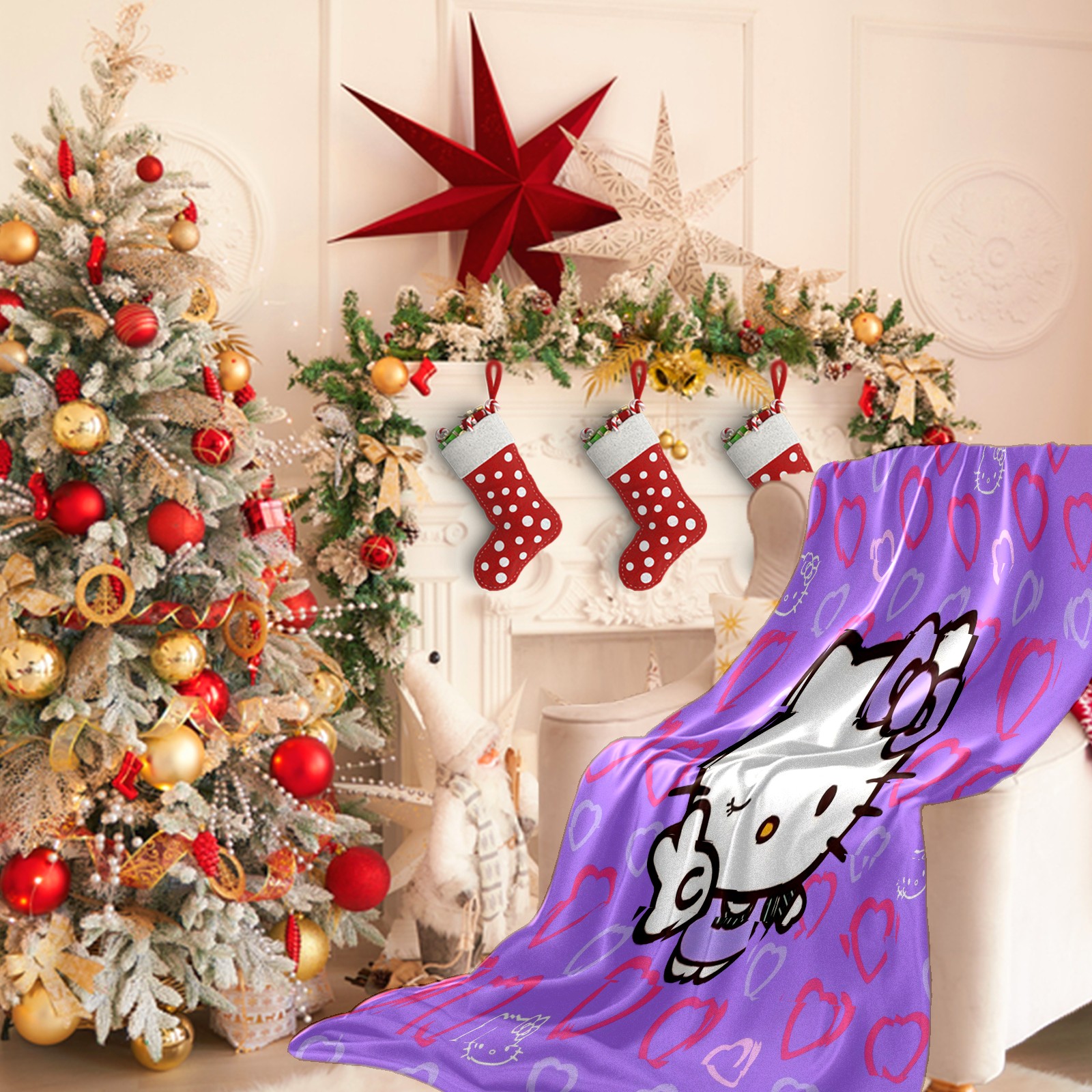 Flannel Blanket, Ultra-Soft Comfortable Home Decor Rug, The Perfect Comfort Gift for Both Men Women, Suitable for Beds, Sofas, Loungewear, and Travel 30x39in(Hello Kitty Cat Angle Heart)