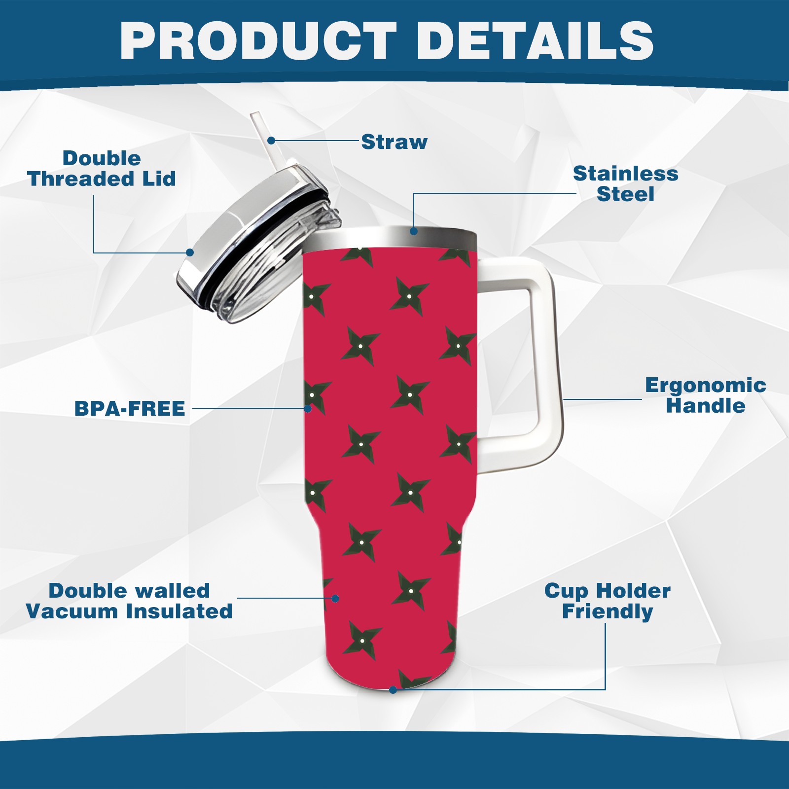 40oz Darts On Red Background thermos with lid and straw, leak-proof stainless steel, with handle, spill-proof bottle, convenient for travel(blue)