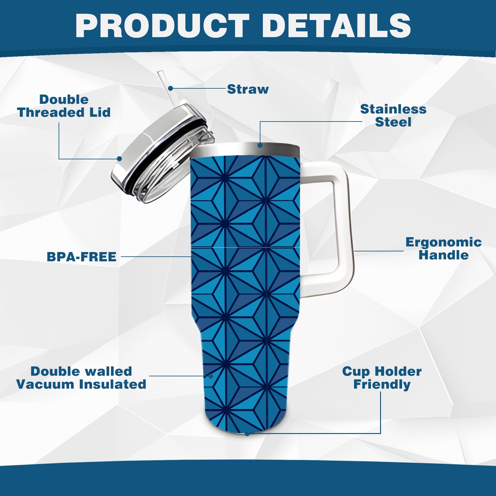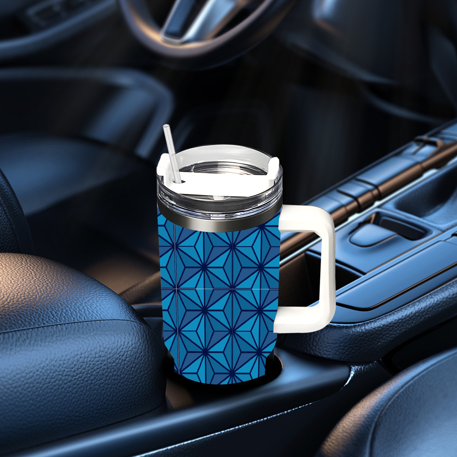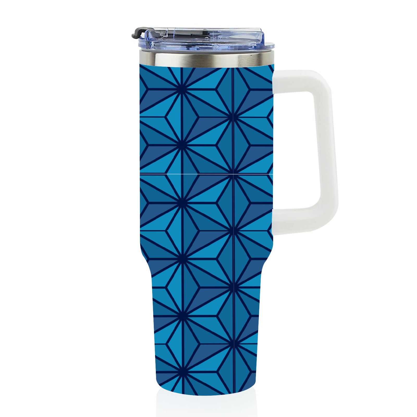 40oz Dark Blue Triangle thermos with lid and straw, leak-proof stainless steel, with handle, spill-proof bottle, convenient for travel(blue)