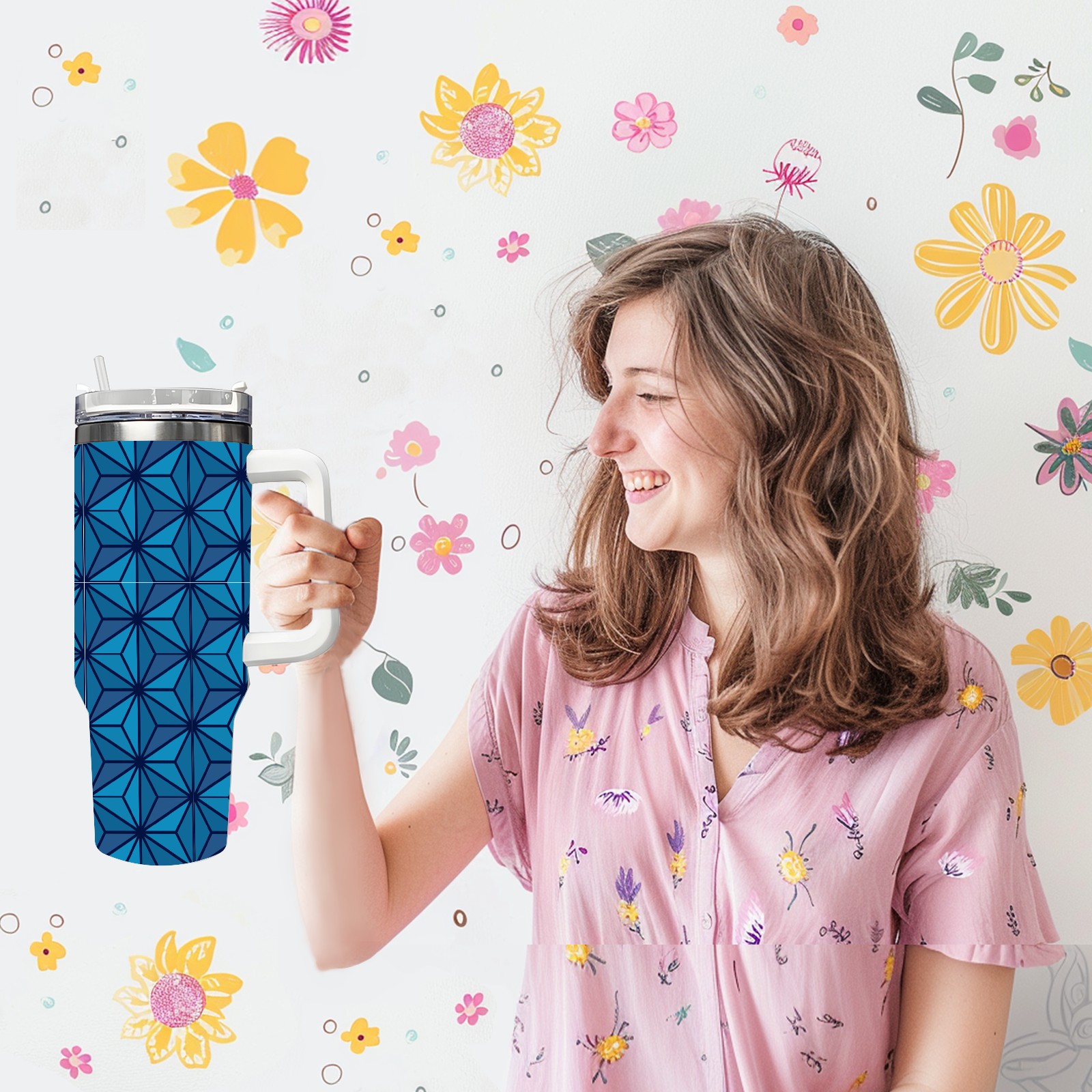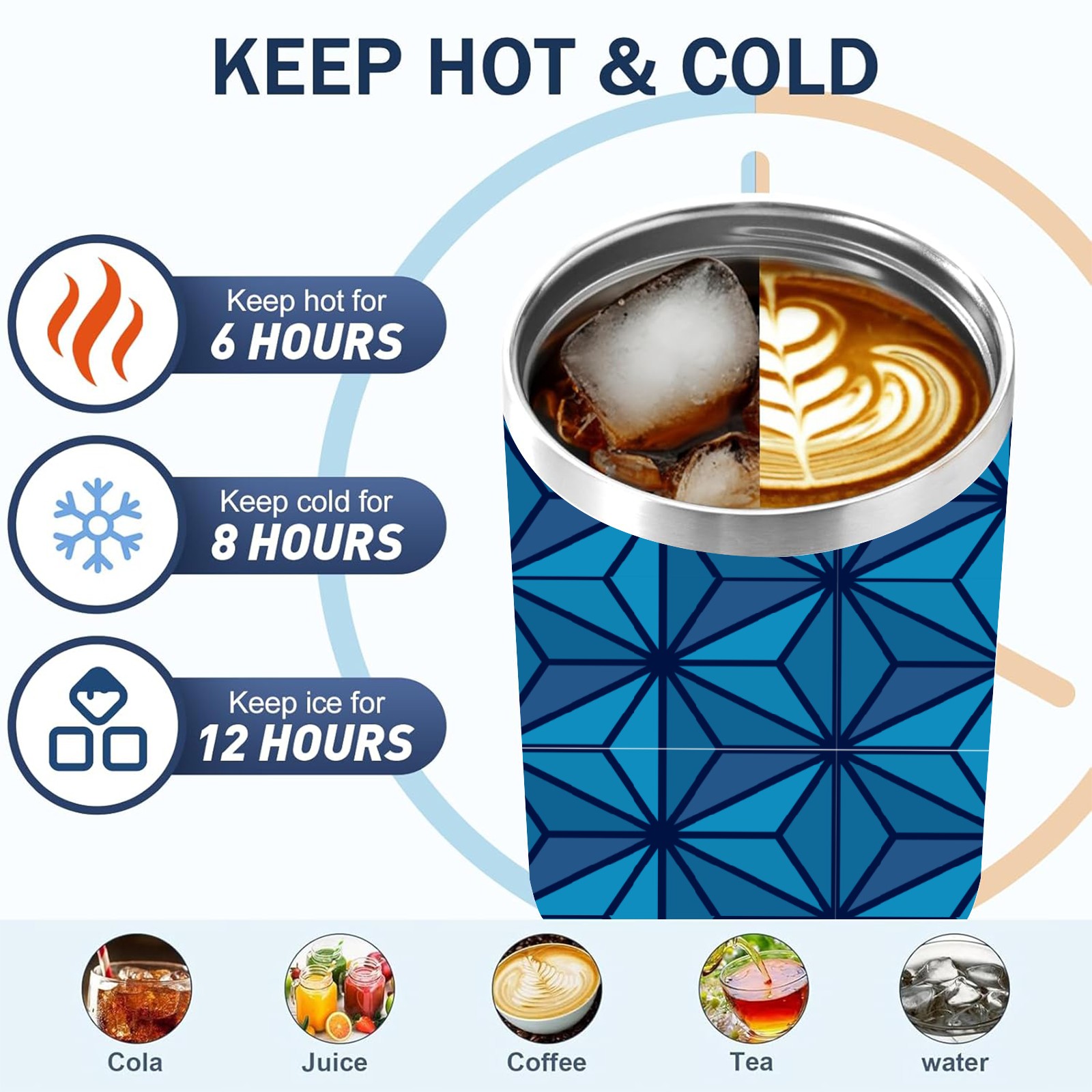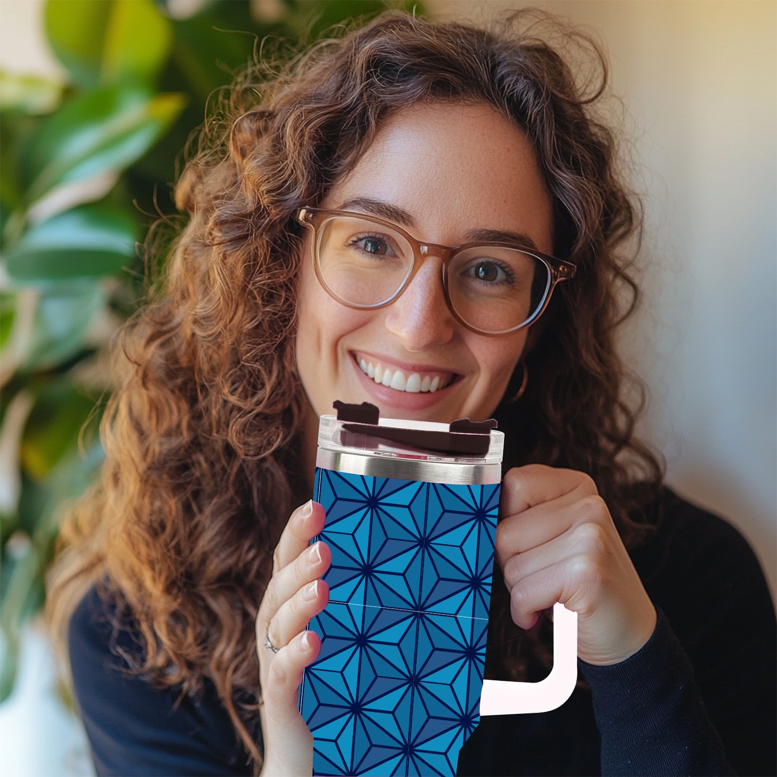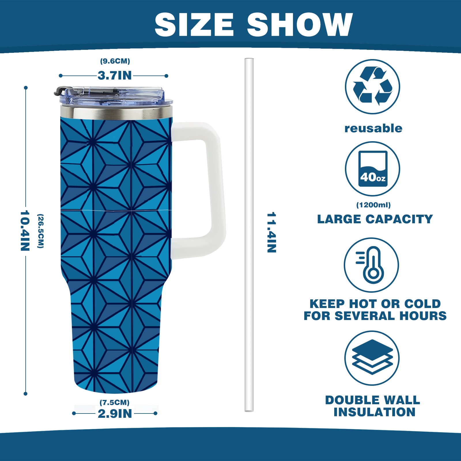 40oz Dark Blue Triangle thermos with lid and straw, leak-proof stainless steel, with handle, spill-proof bottle, convenient for travel(blue)