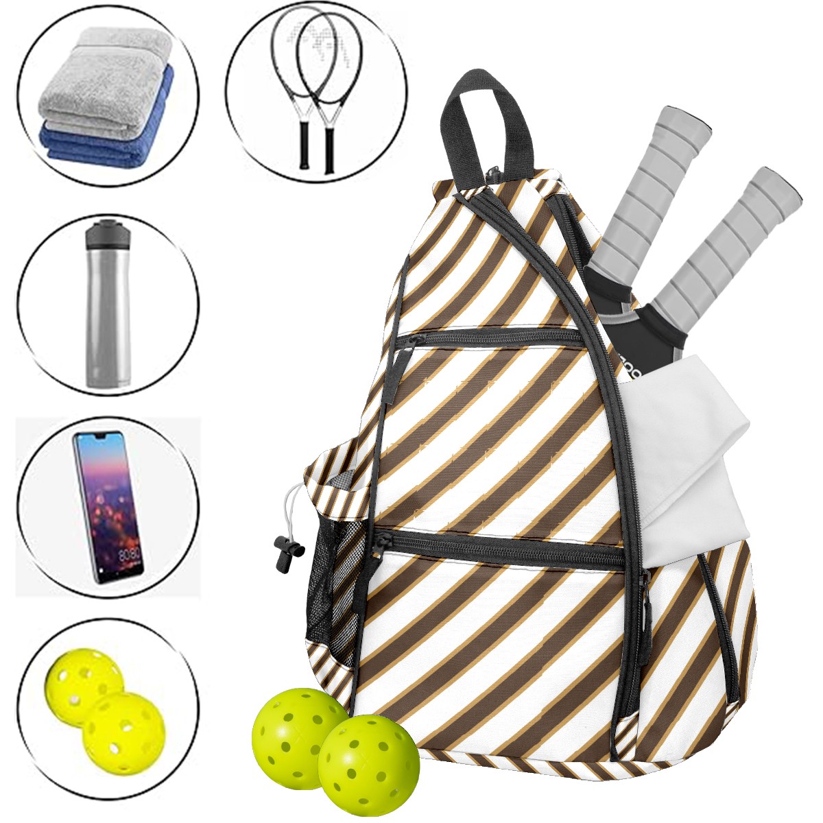 Multifunctional Pickleball Bag,Large Capacity Sports Pickleball Racket Bag, Water Bottle Holder and Fence Hook,Suitable for Both Men Women -Black And White Stripes