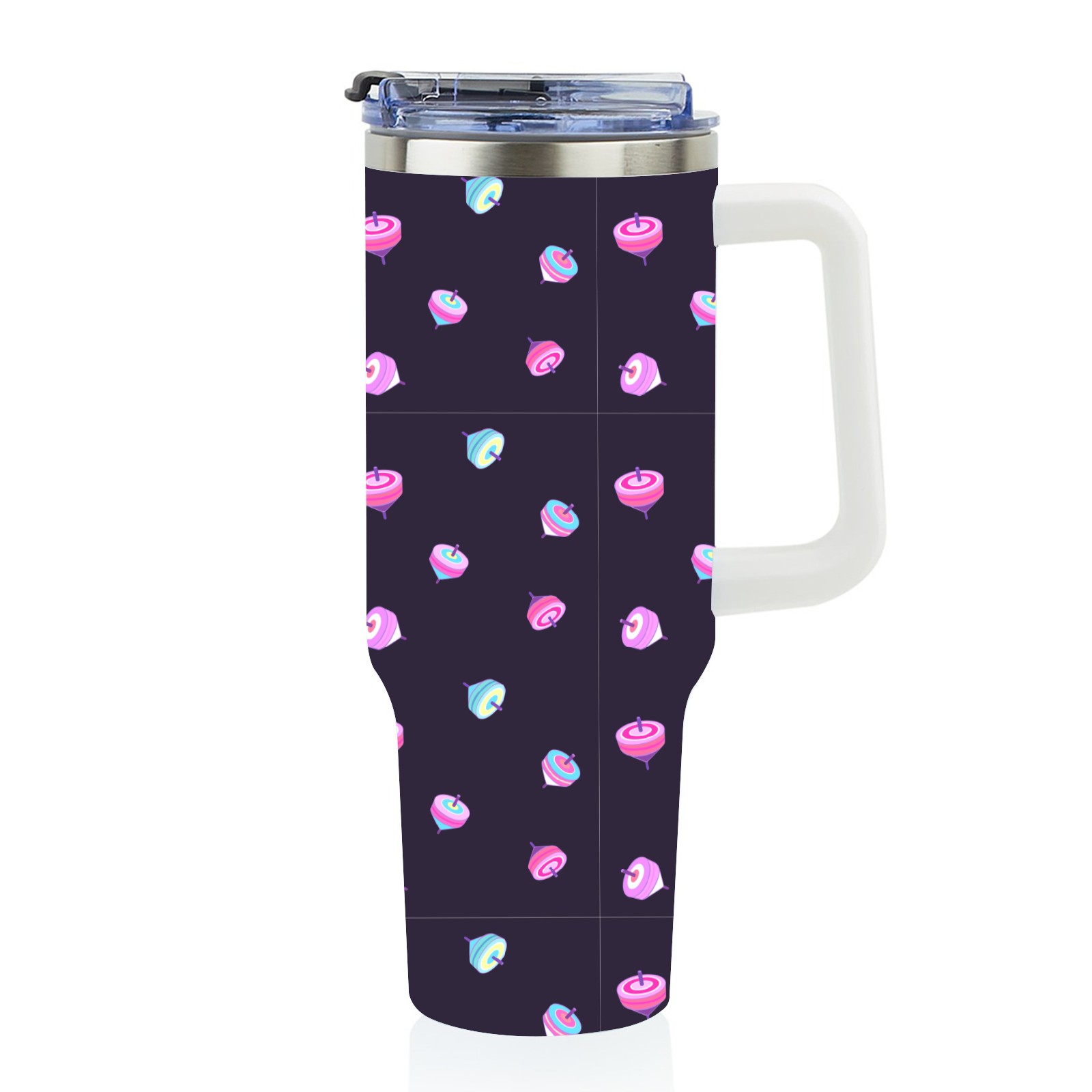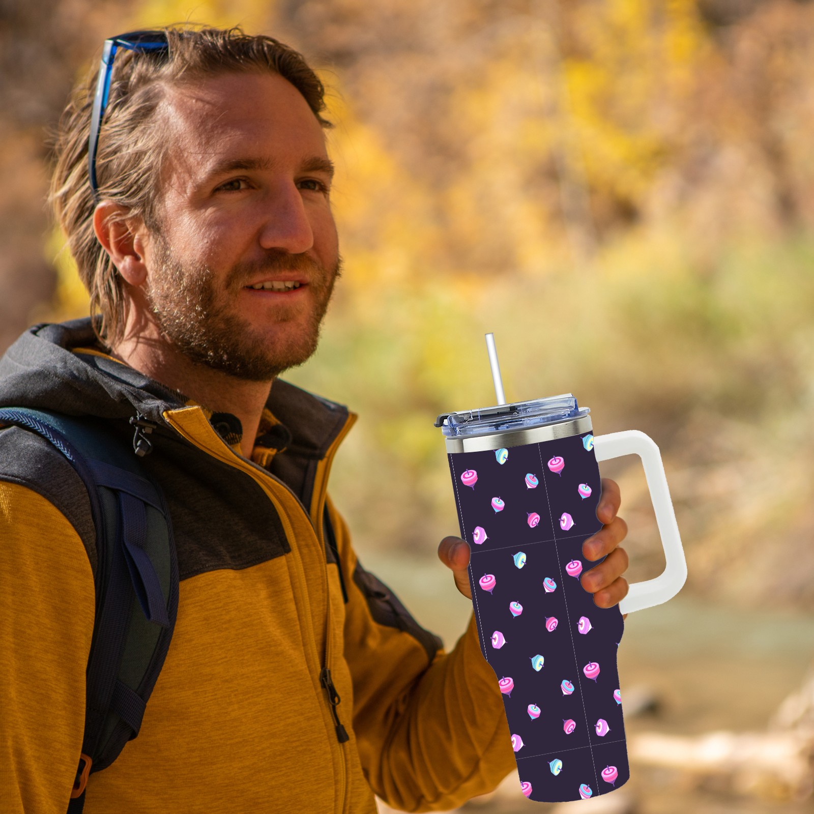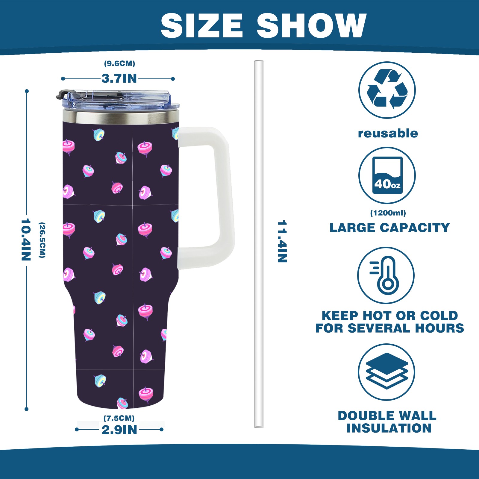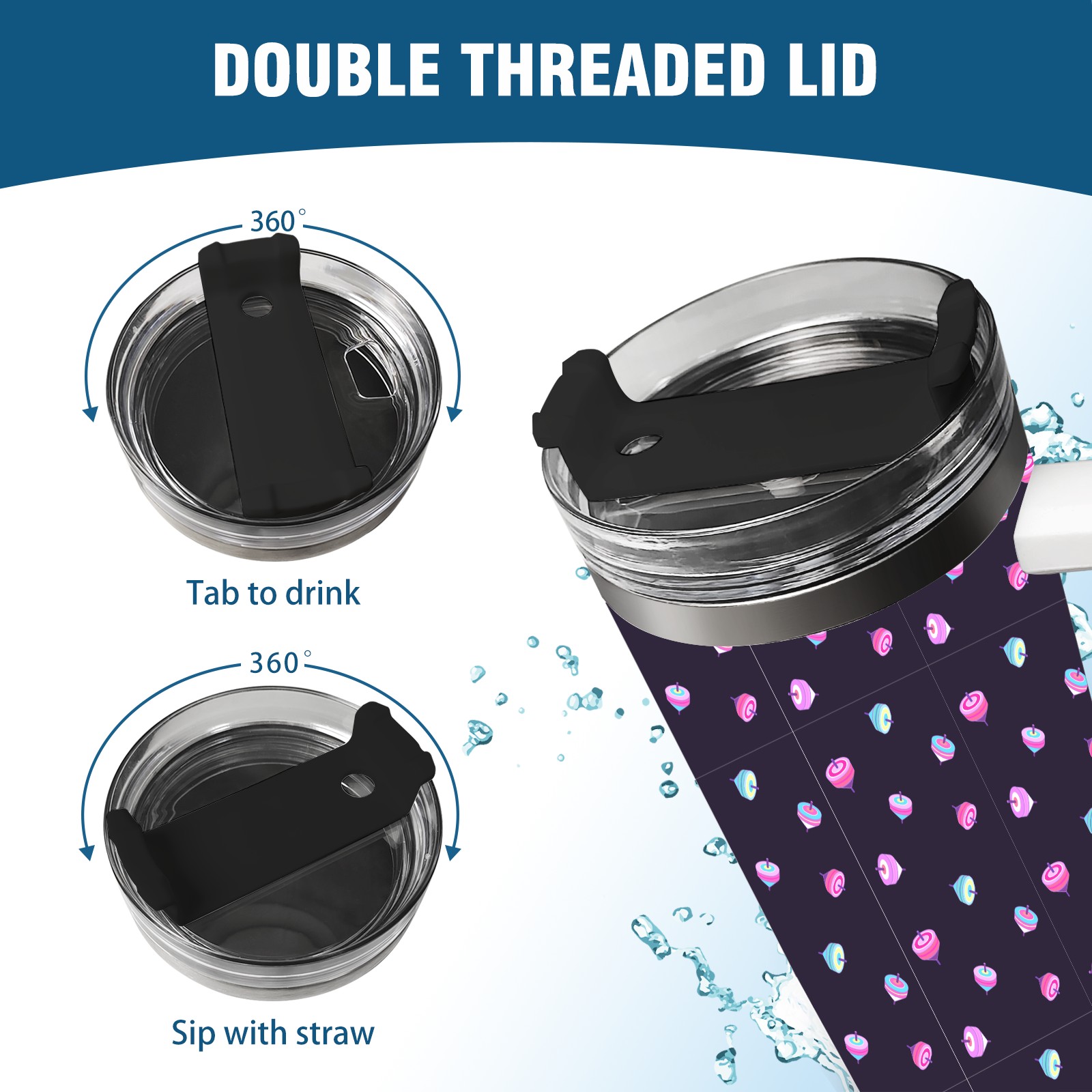 40oz Colorful Top Pattern thermos with lid and straw, leak-proof stainless steel, with handle, spill-proof bottle, convenient for travel(blue)