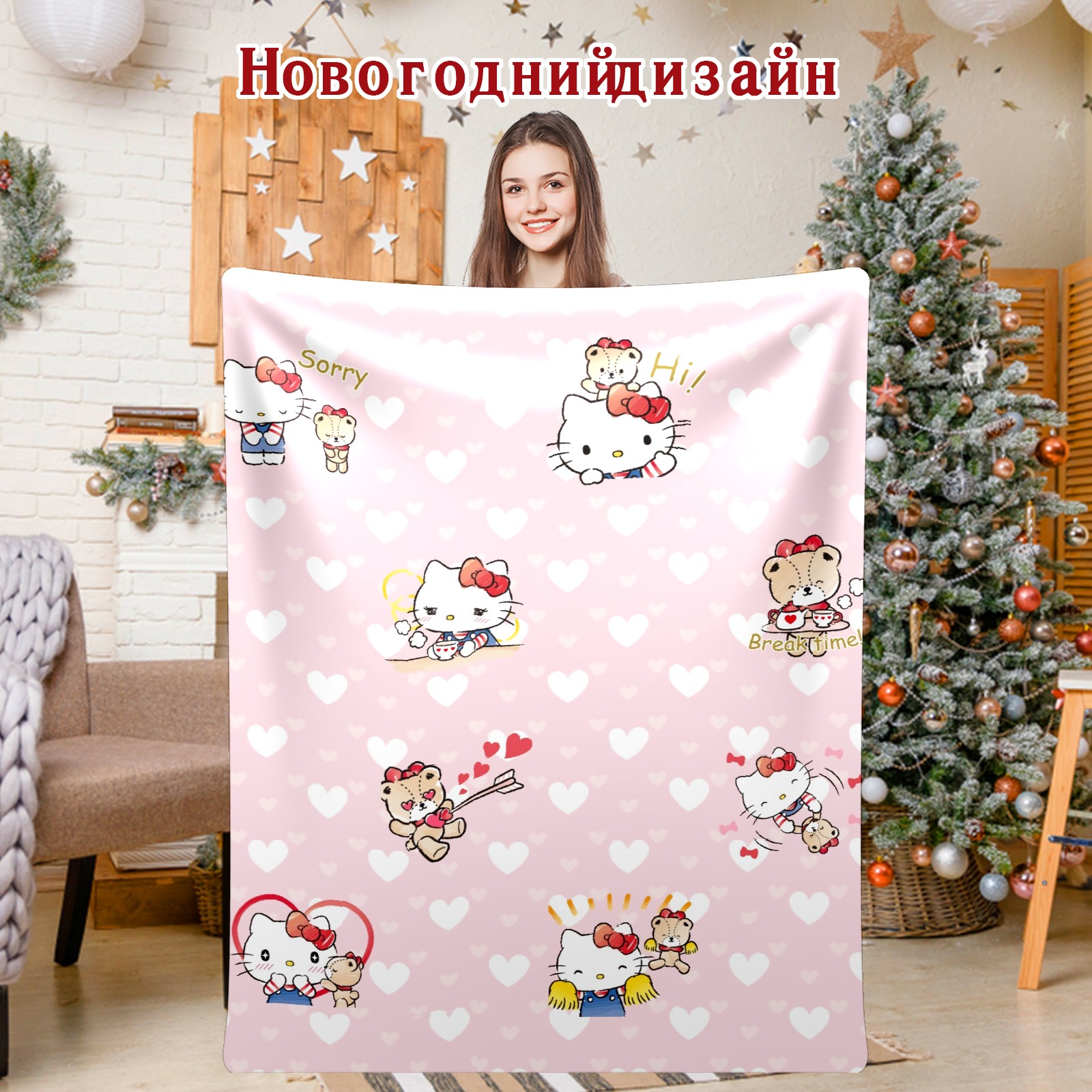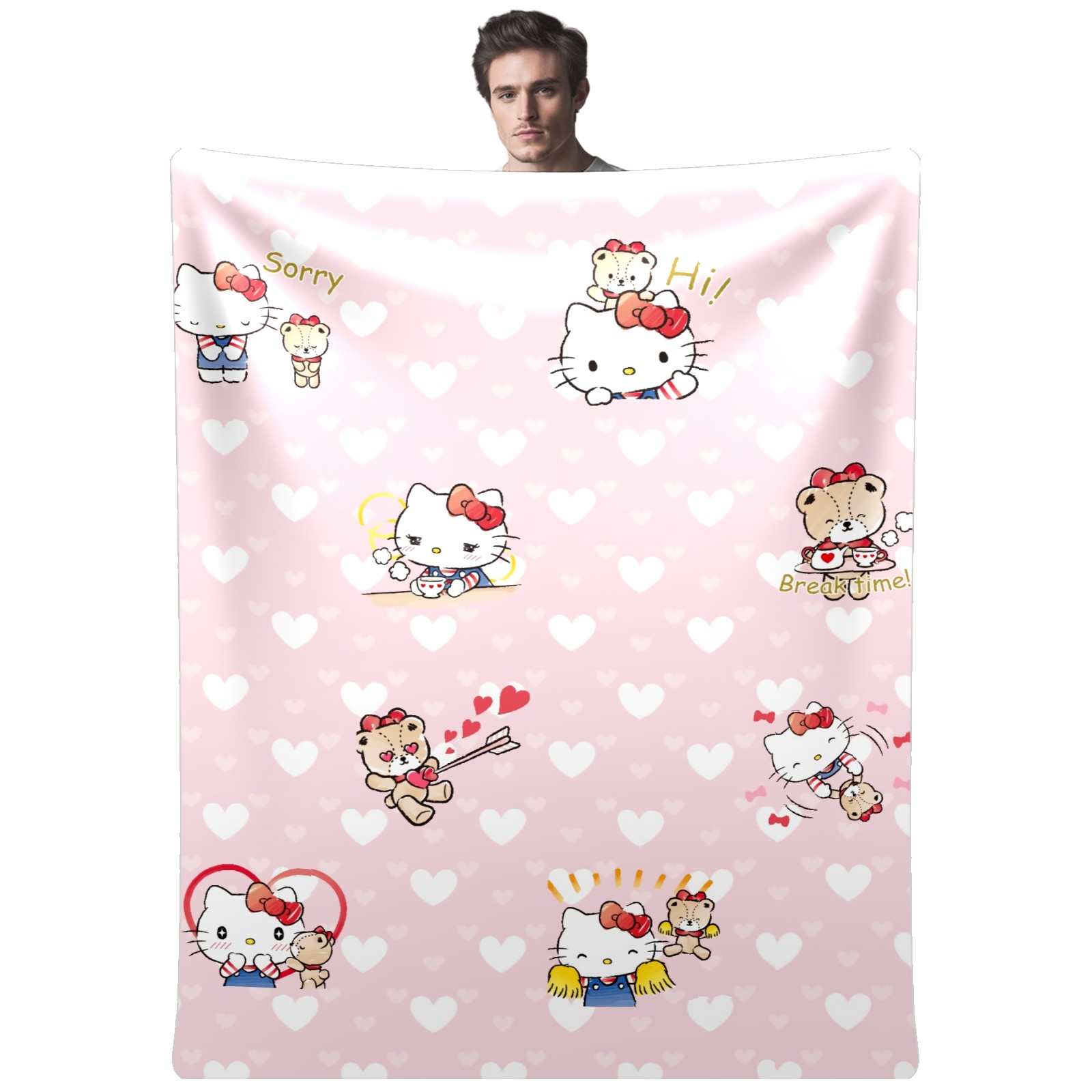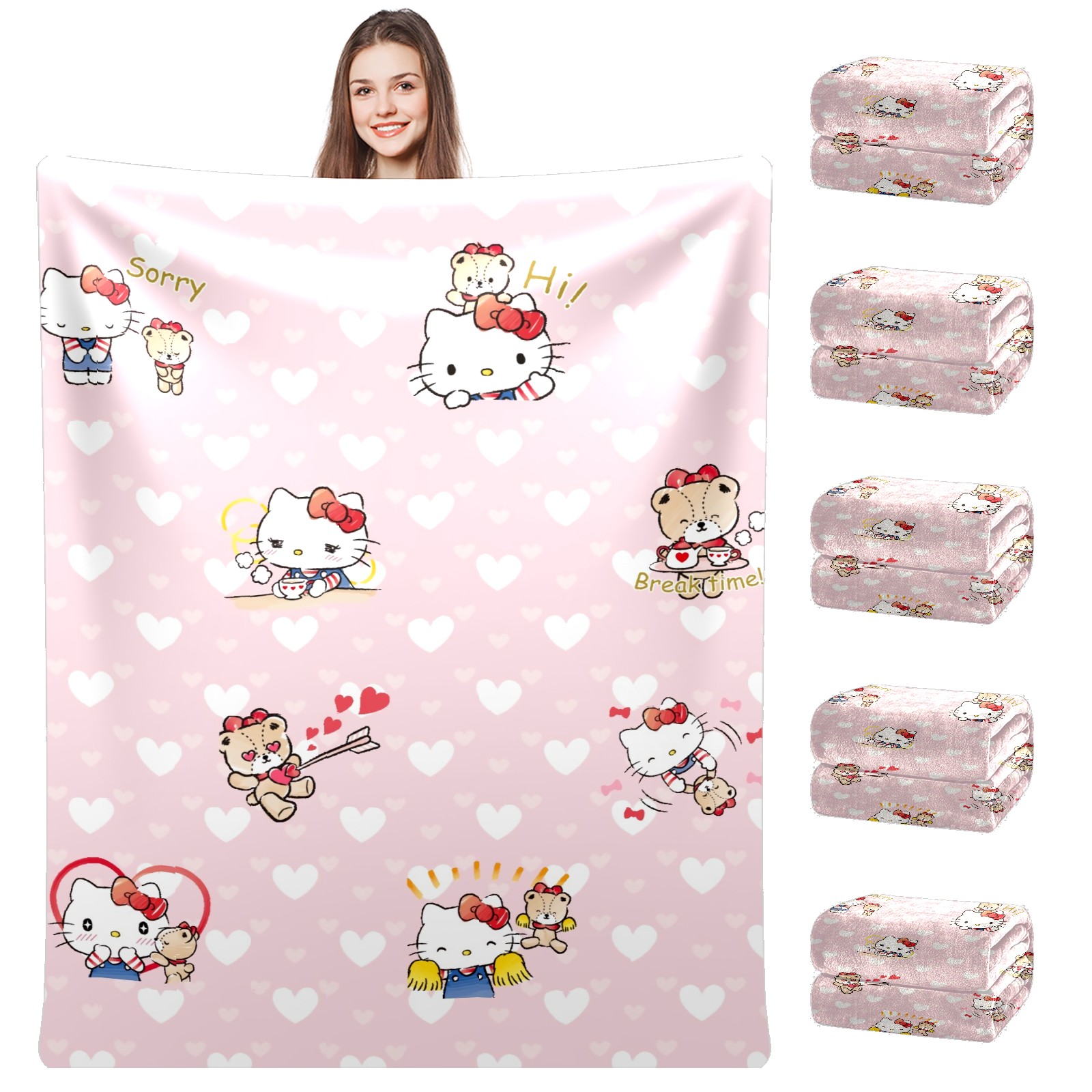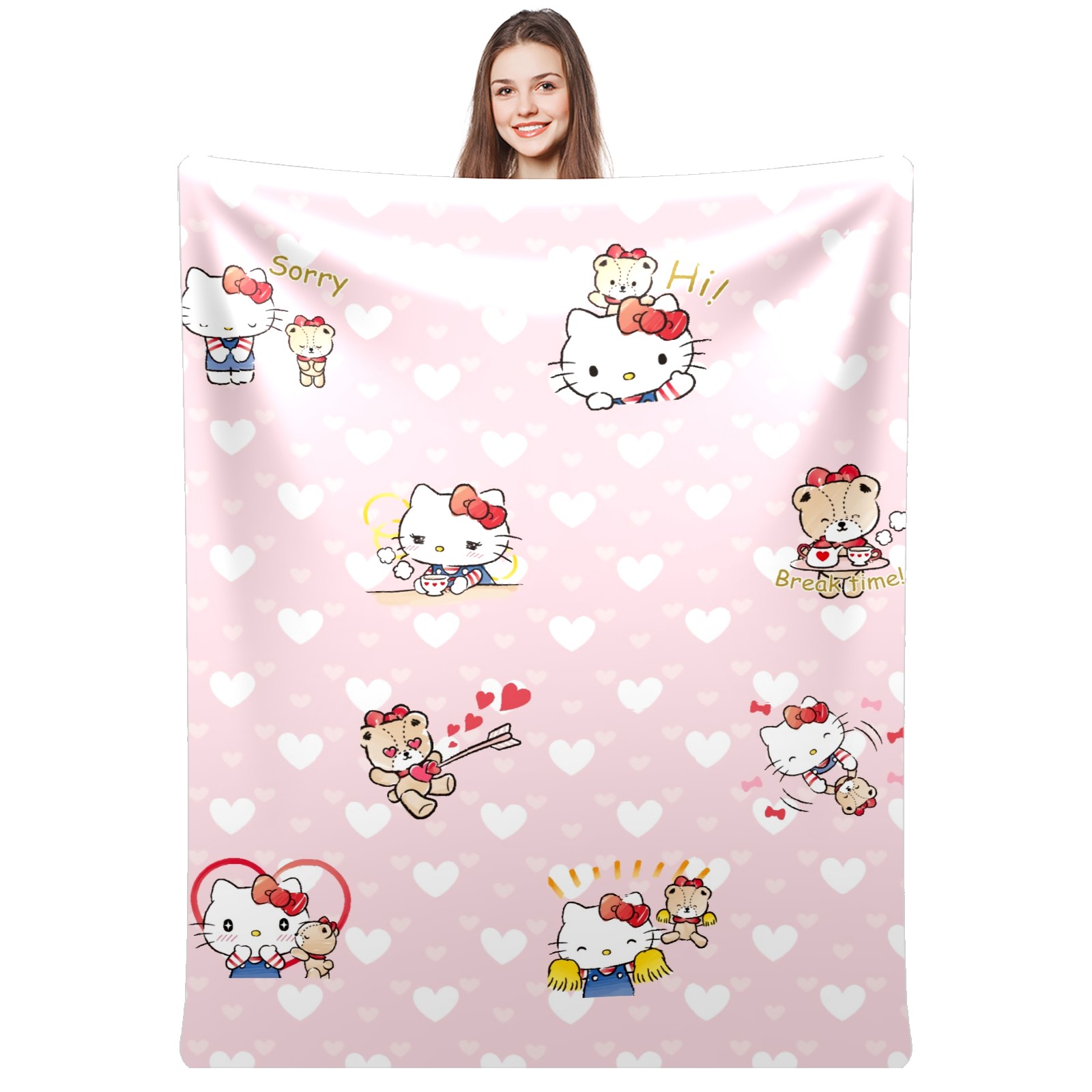 Flannel Blanket, Ultra-Soft Comfortable Home Decor Rug, The Perfect Comfort Gift for Both Men Women, Suitable for Beds, Sofas, Loungewear, and Travel 30x39in(Hello Kitty Cat Sweat Heart)