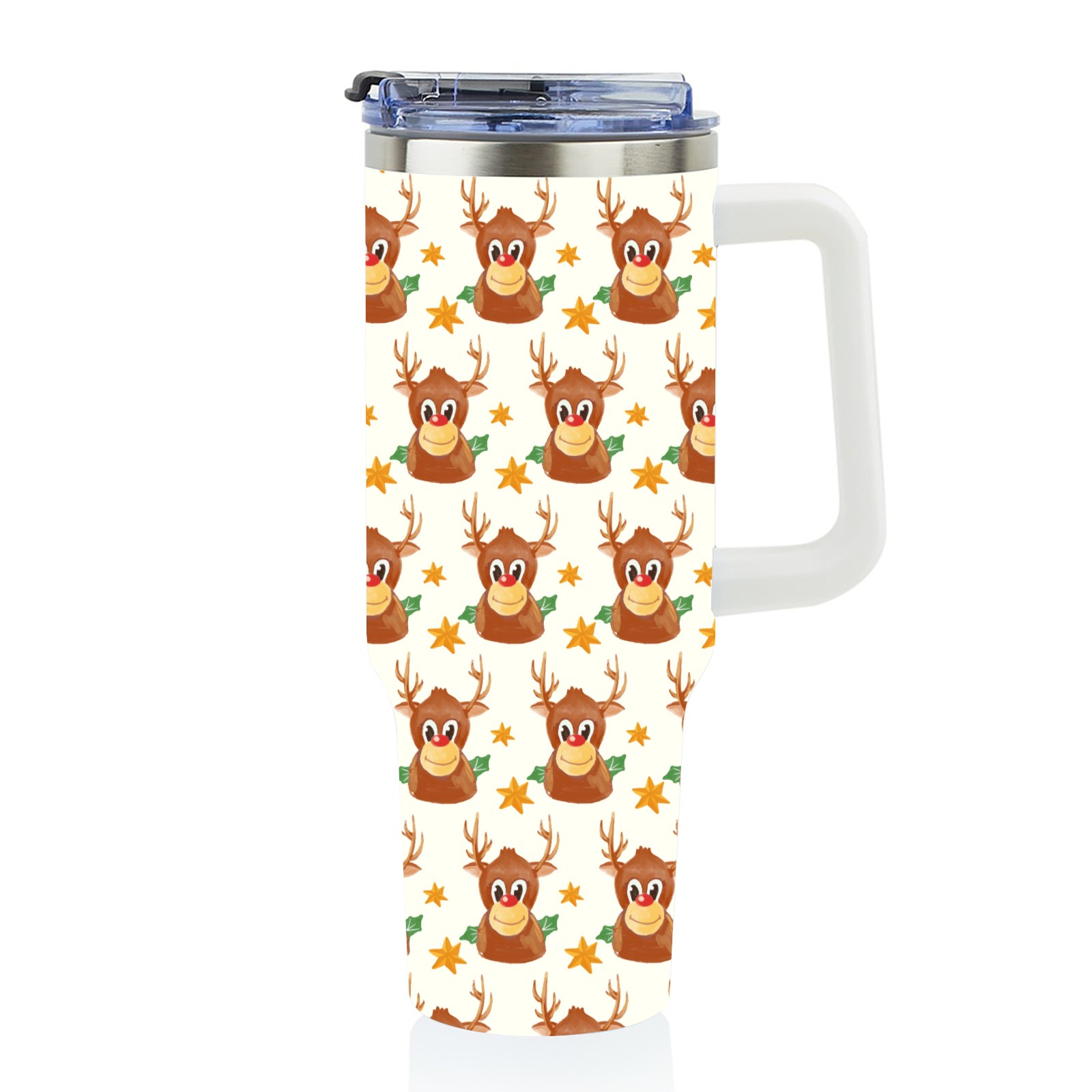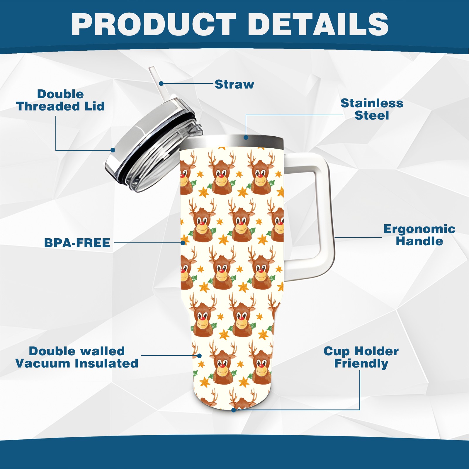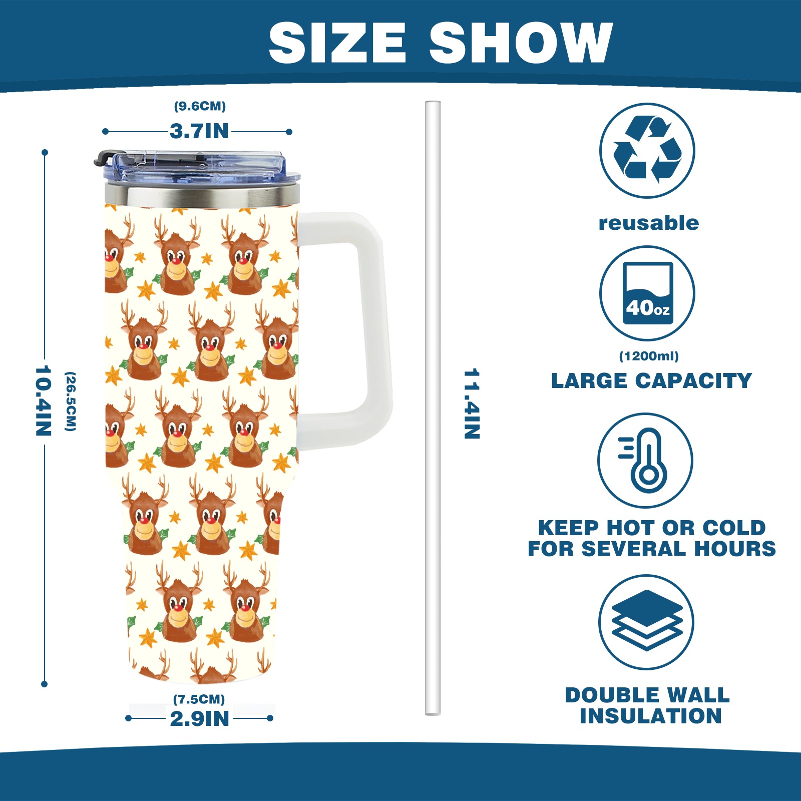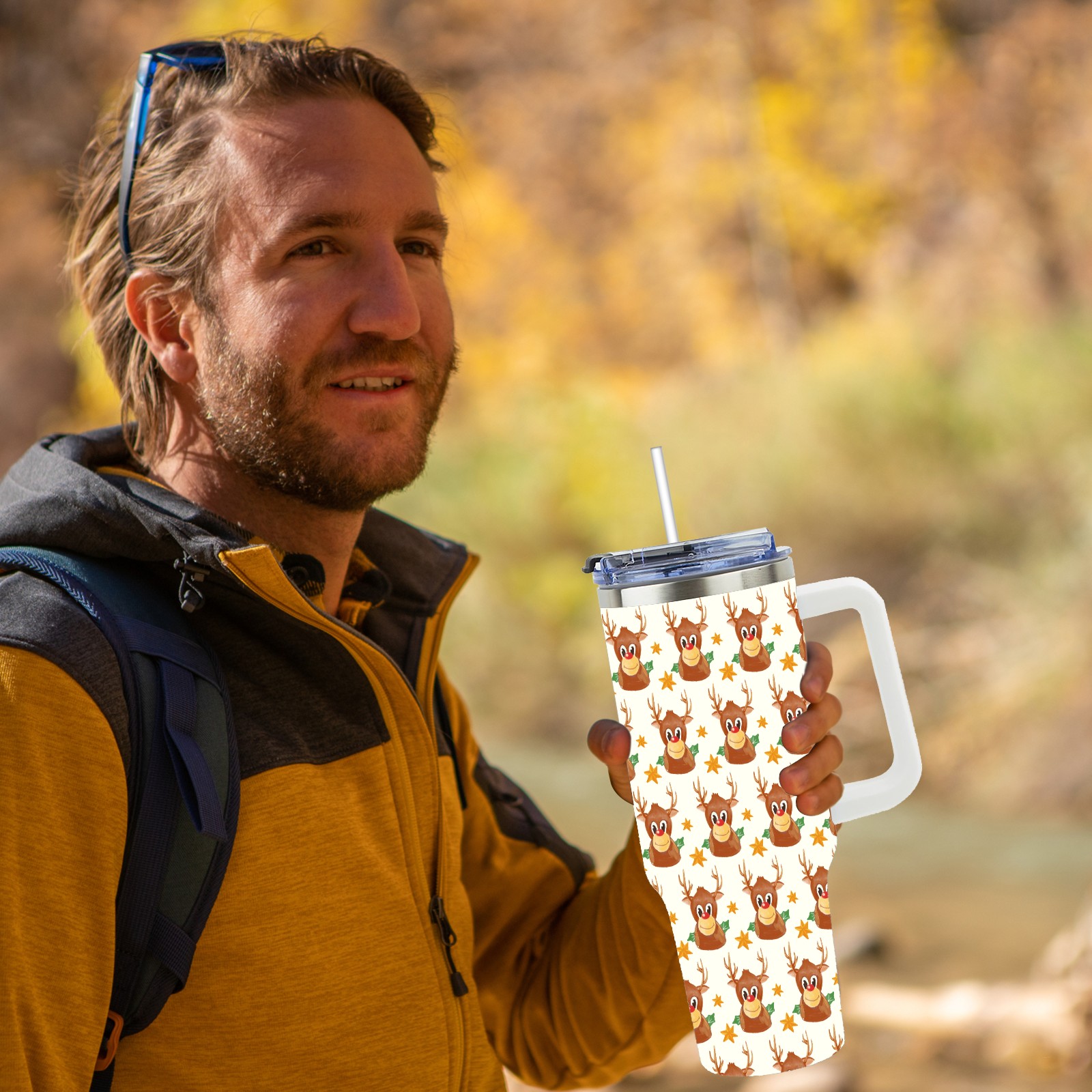 40oz Christmas Elk Pattern thermos with lid and straw, leak-proof stainless steel, with handle, spill-proof bottle, convenient for travel(blue)
